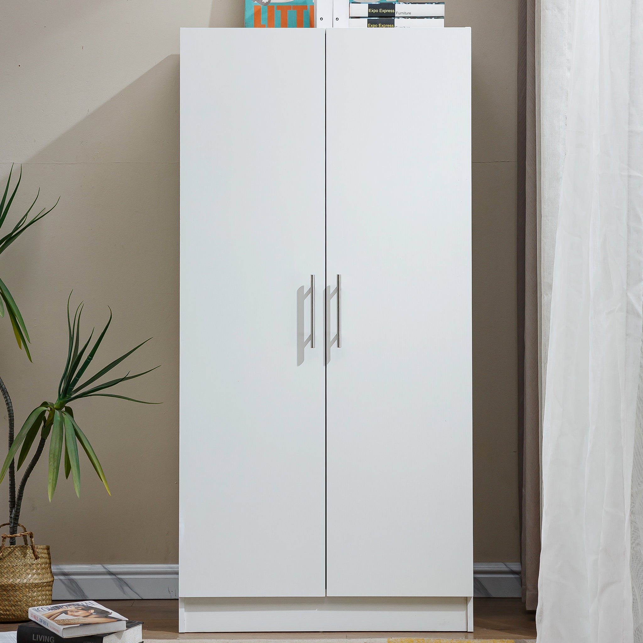 - Space-saving Design: Equipped with a upper shelf for quilt, blanket or large storage boxes, a hanging area which are perfect for storing clothes such as dresses, suits, pants etc. and bottom storage area for shoes or smaller storage boxes, this armoire is designed to make the most of your space, offering ample storage within a compact footprint. Be it as a storage cabinet for the kitchen or a closet for the bedroom, the cabinet seamlessly fits in any room.