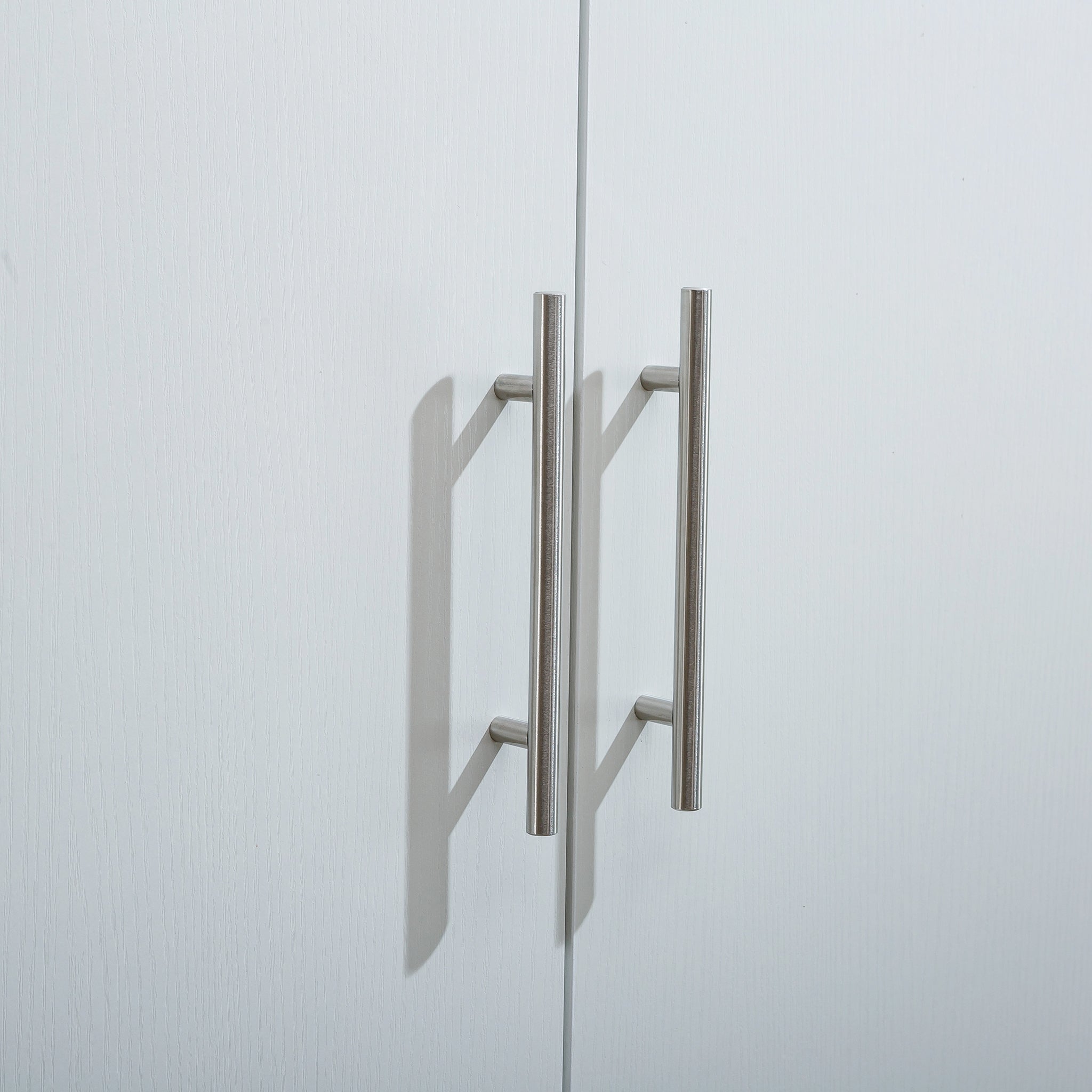 - Premium Material: The wardrobe is made of high-quality MDF board. It is also waterproof, scratch-resistant and consists of durable door hinges and drawer slides. The storage cabinet not only ensures durability but also elevates the aesthetic of any room with its white finish and silver handles. Great as gift for your family, relatives, friends and etc.