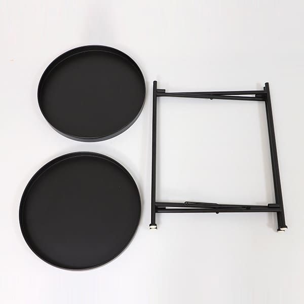 Detachable tray and foldable fram design, lightweight and portable, easy to assemble and saving space; Tray edge protection design to prevent objects from falling, perfect to put food, coffee, tea, atr work, plants, books and etc. Suitable for living room, study room, bedroom, kitchen, patio, lawn, garden and more.