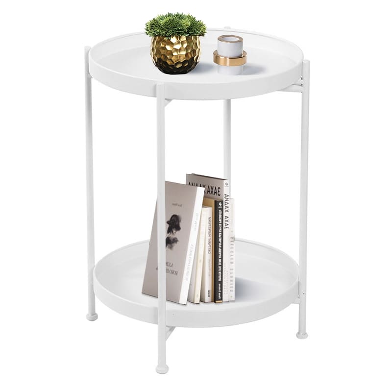 The end table made of high quality metal, the surface is smooth with fine coating. Simple and Space-saving. You can put books, coffees, laptop, photographs, small pot plants on it.