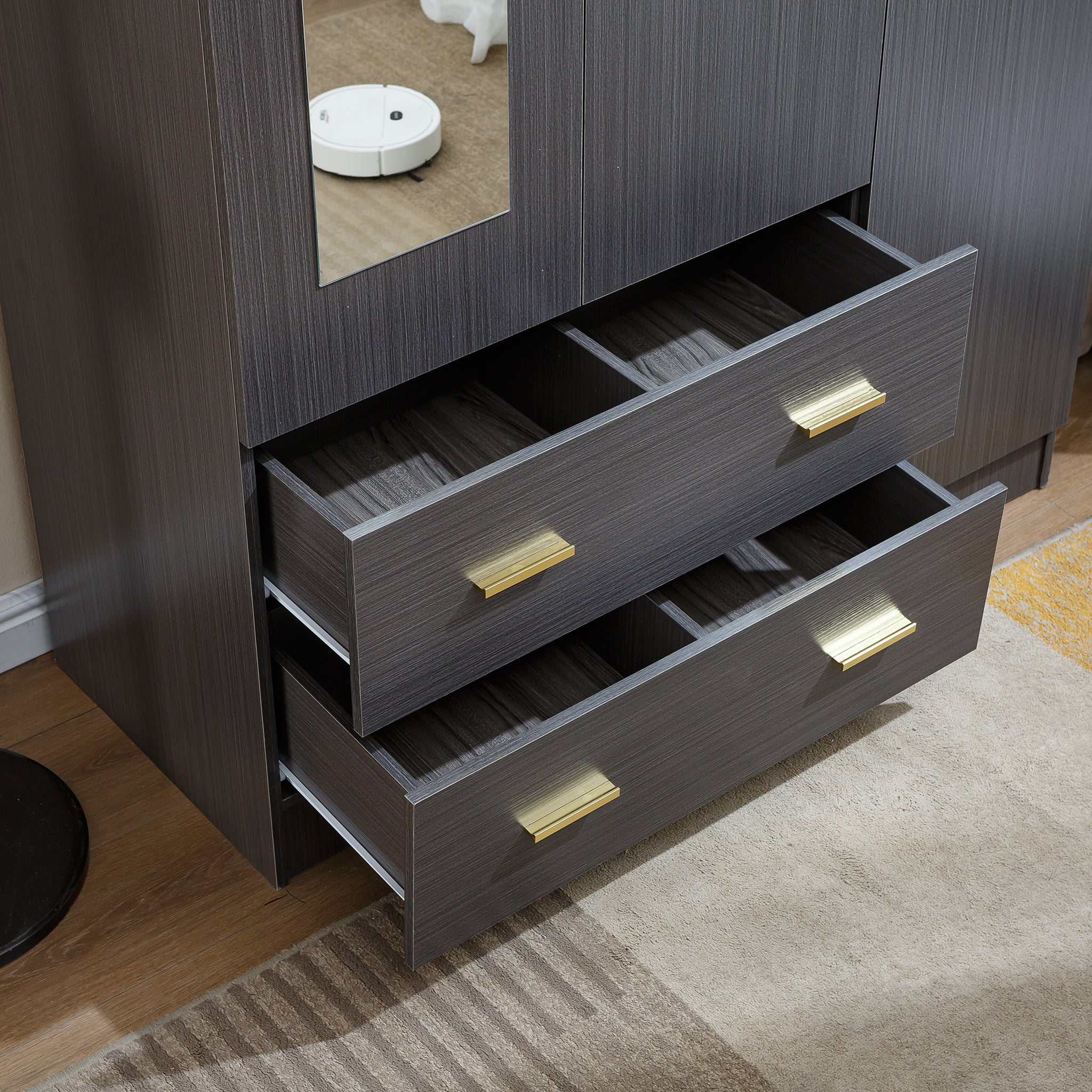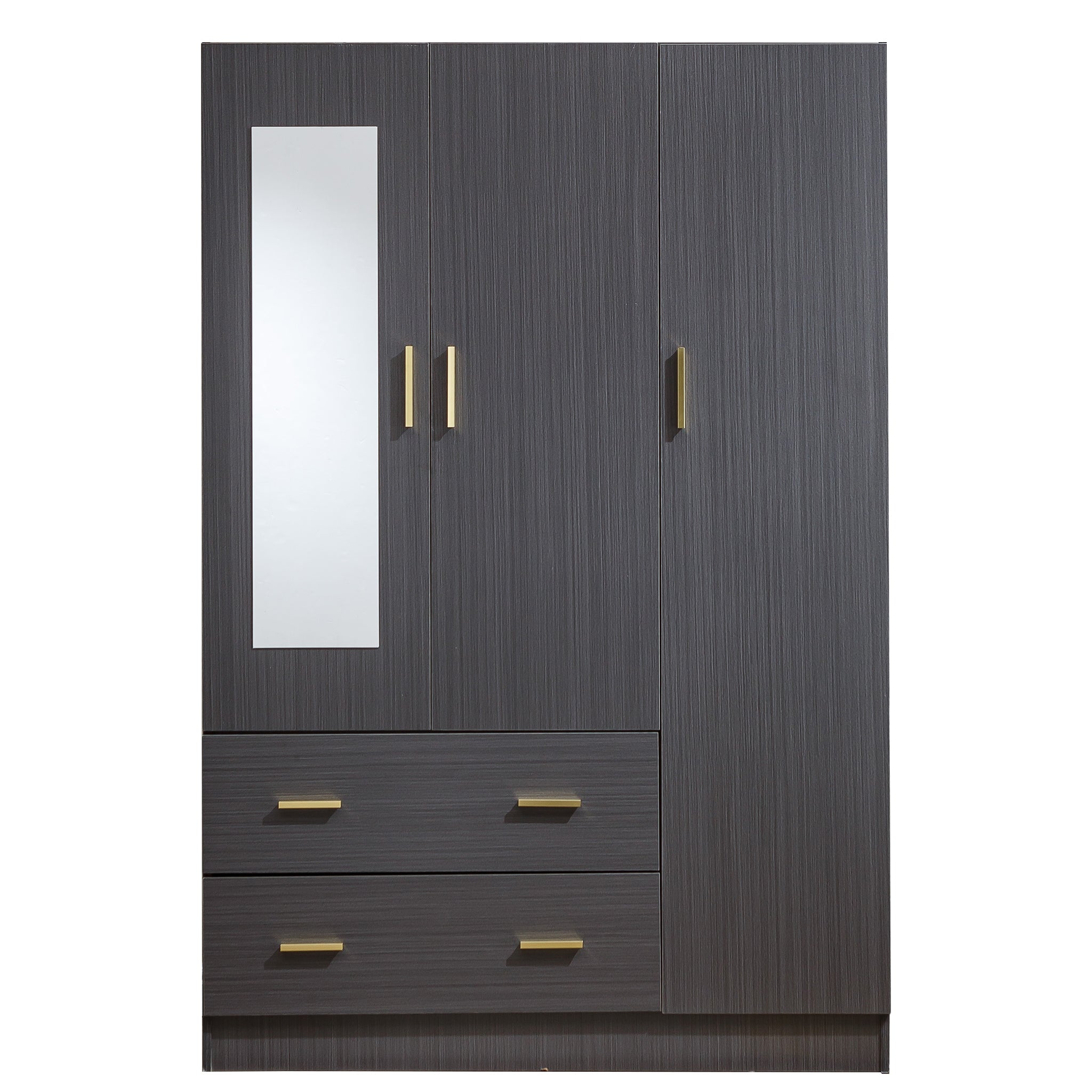 - High Quality: Made of high grade durable MDF board with the smooth surface, easy to maintain and keep clean. Gold metal handles give the wardrobe modern touch but still keeping it nice and simple. The mirror which can help you try on clothes and show your figure at a glance.
