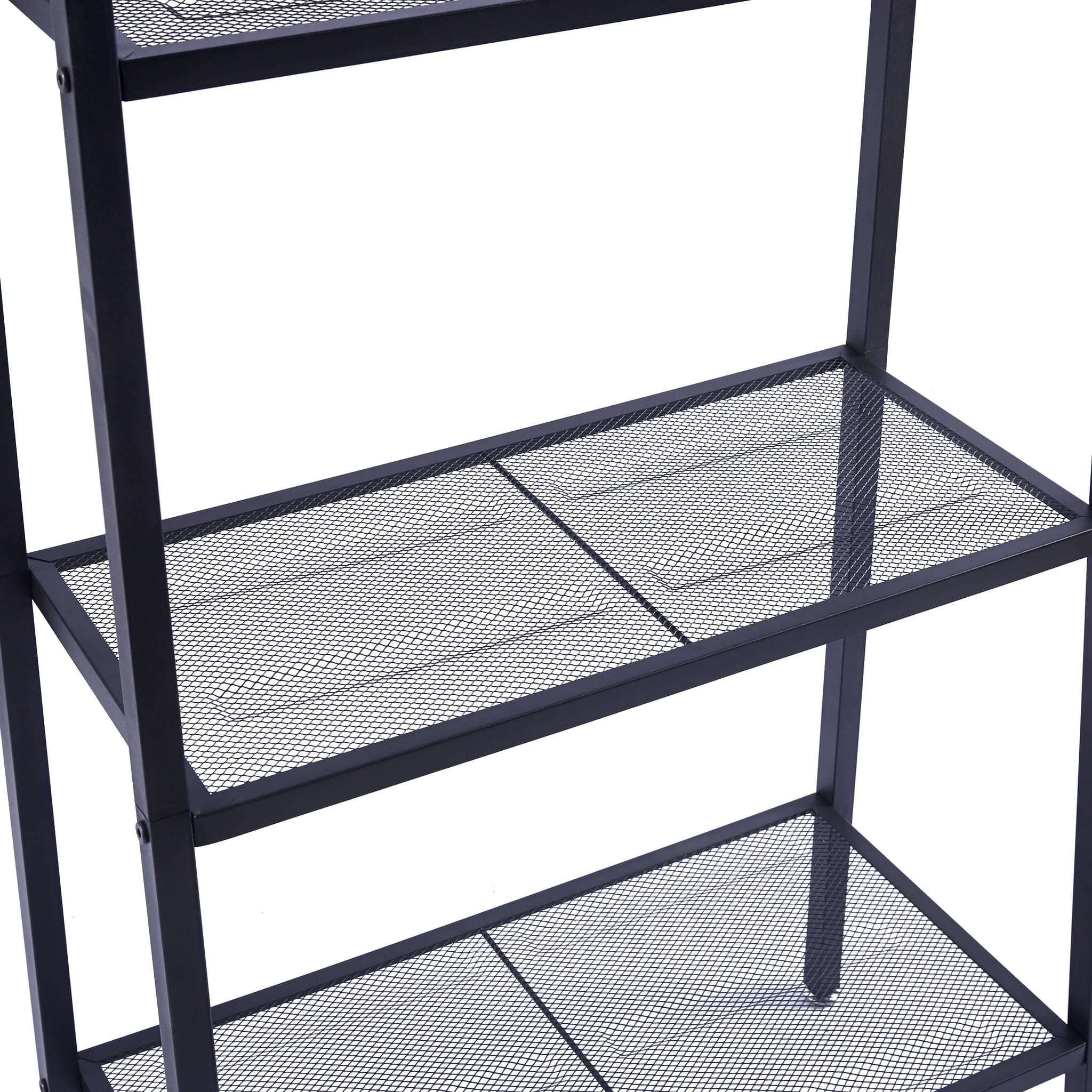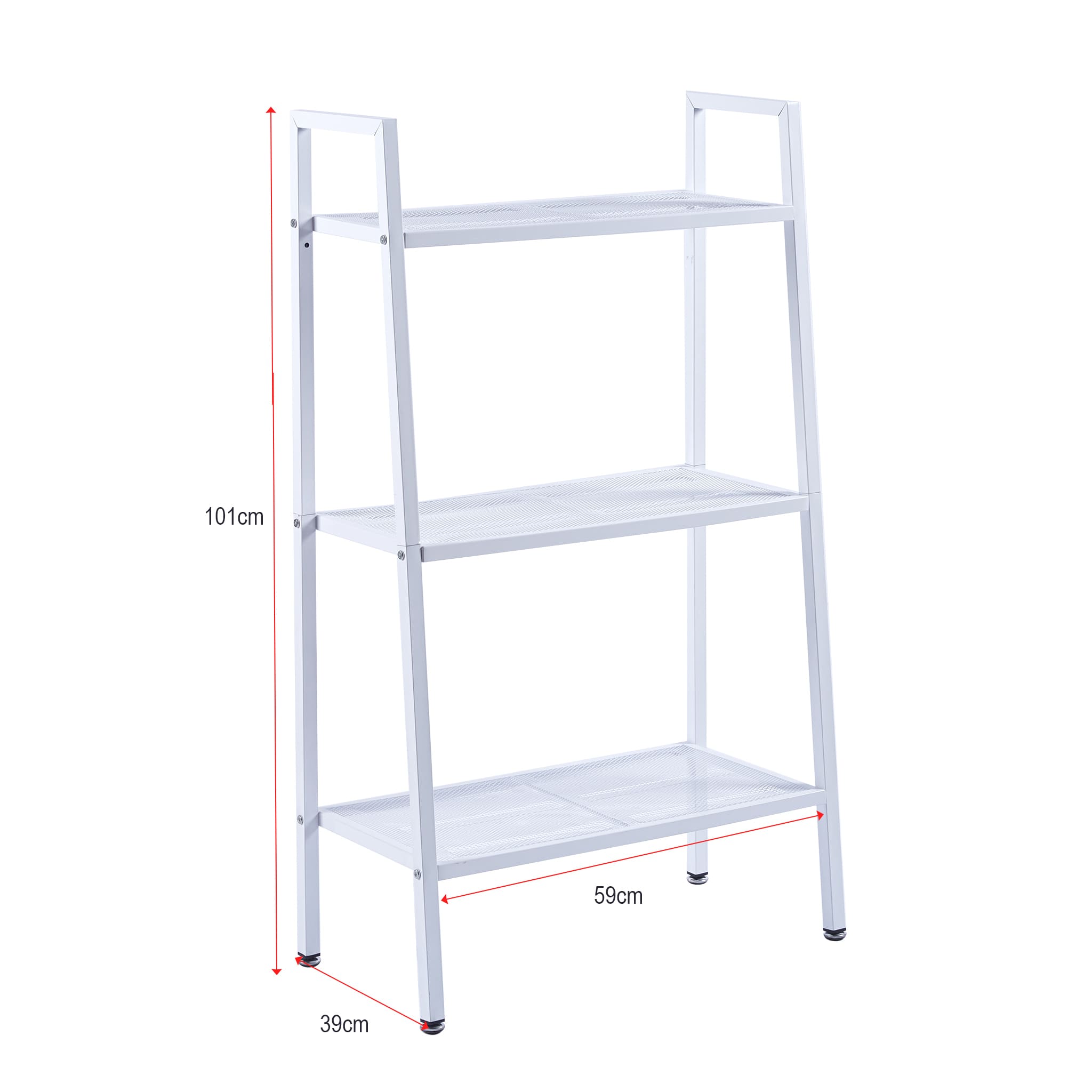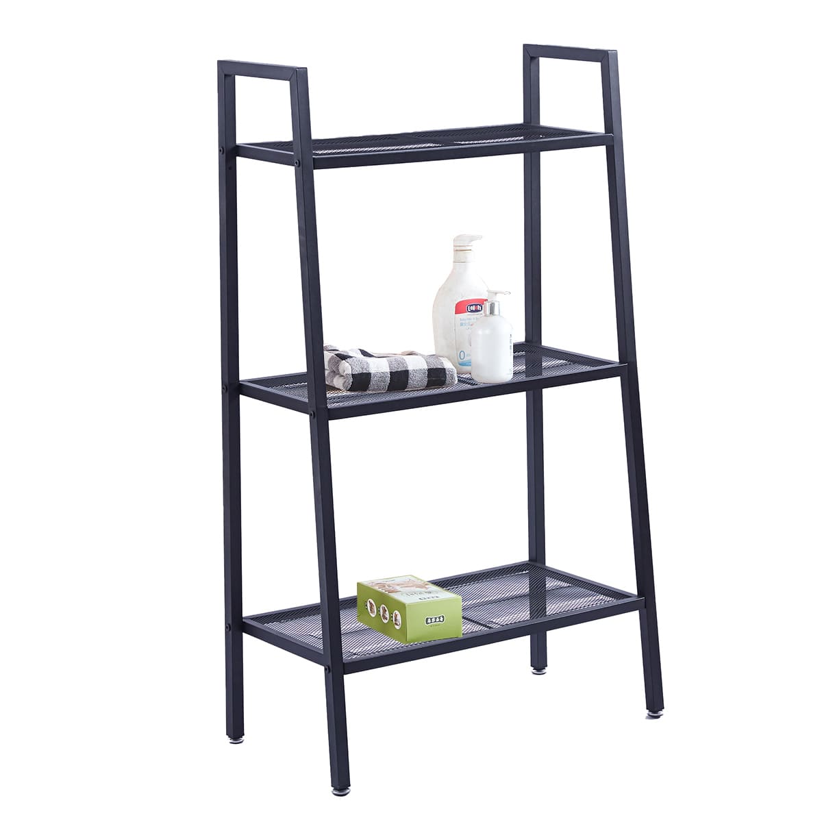 It can also be used as a display or storage shelving unit.The display rack has a compact, ladder design that makes it perfect for any limited space, and 3 mesh shelves that provide ample space for storing your books, magazines, or displaying your photo frames, or other decorative items