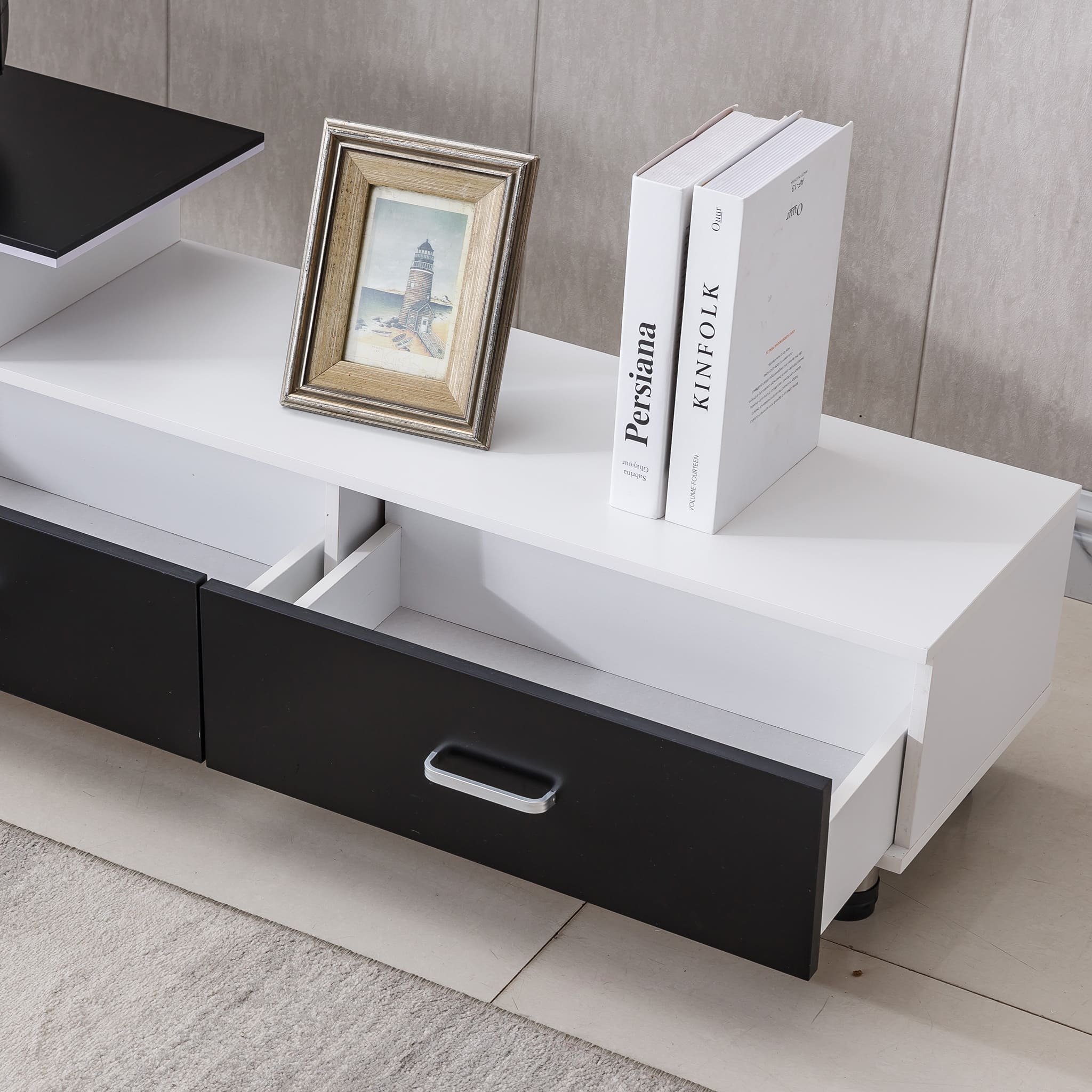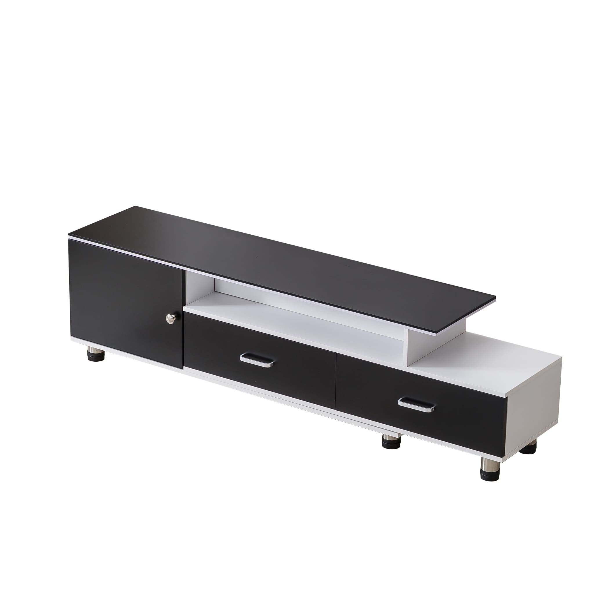 The TV Stand is made of Melamine board, easy to clean. Equipped with drawers, it will provide you with enough space to store your books, DVDs, CDs, etc. Envelope-like pulls make it easy to open or close the drawers, this TV Stand ensures durability and brings elegance to your décor. Inject minimalist charm into your contemporary décor with this TV stand.