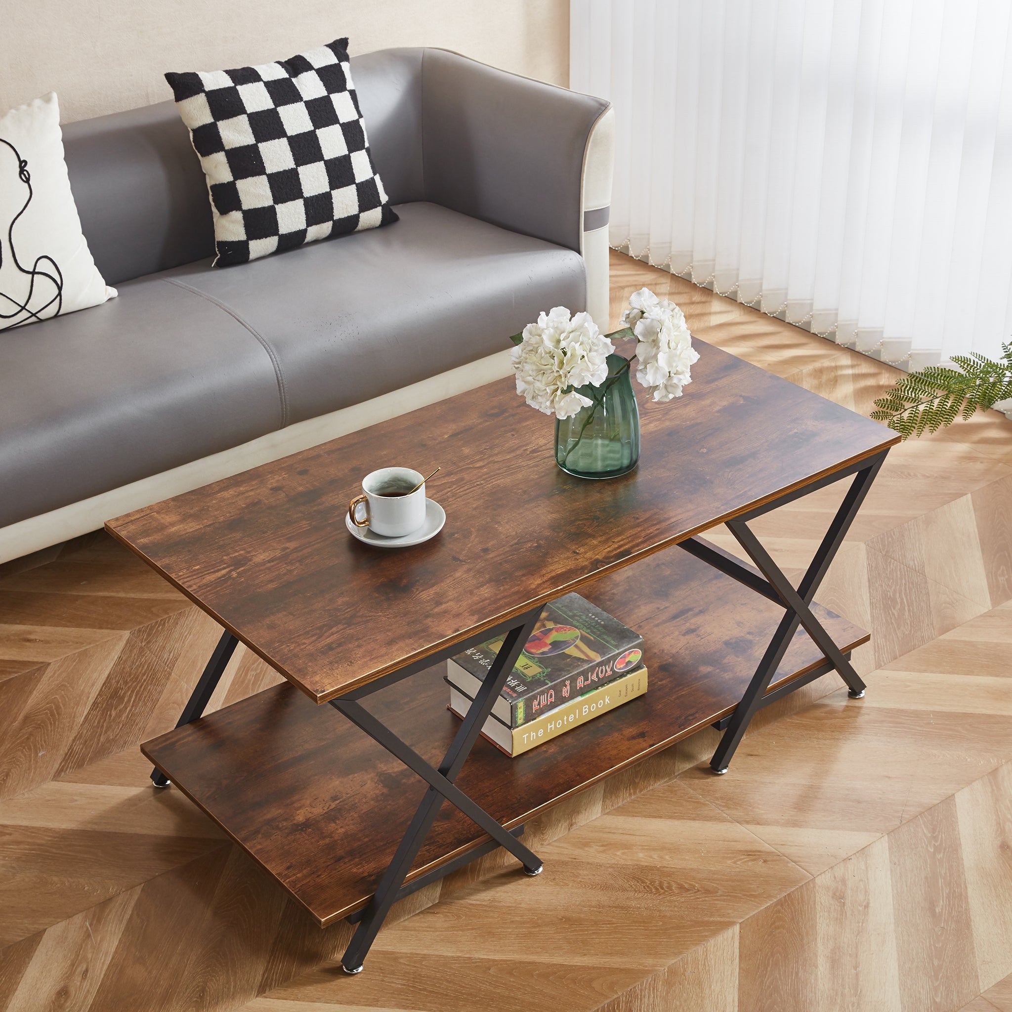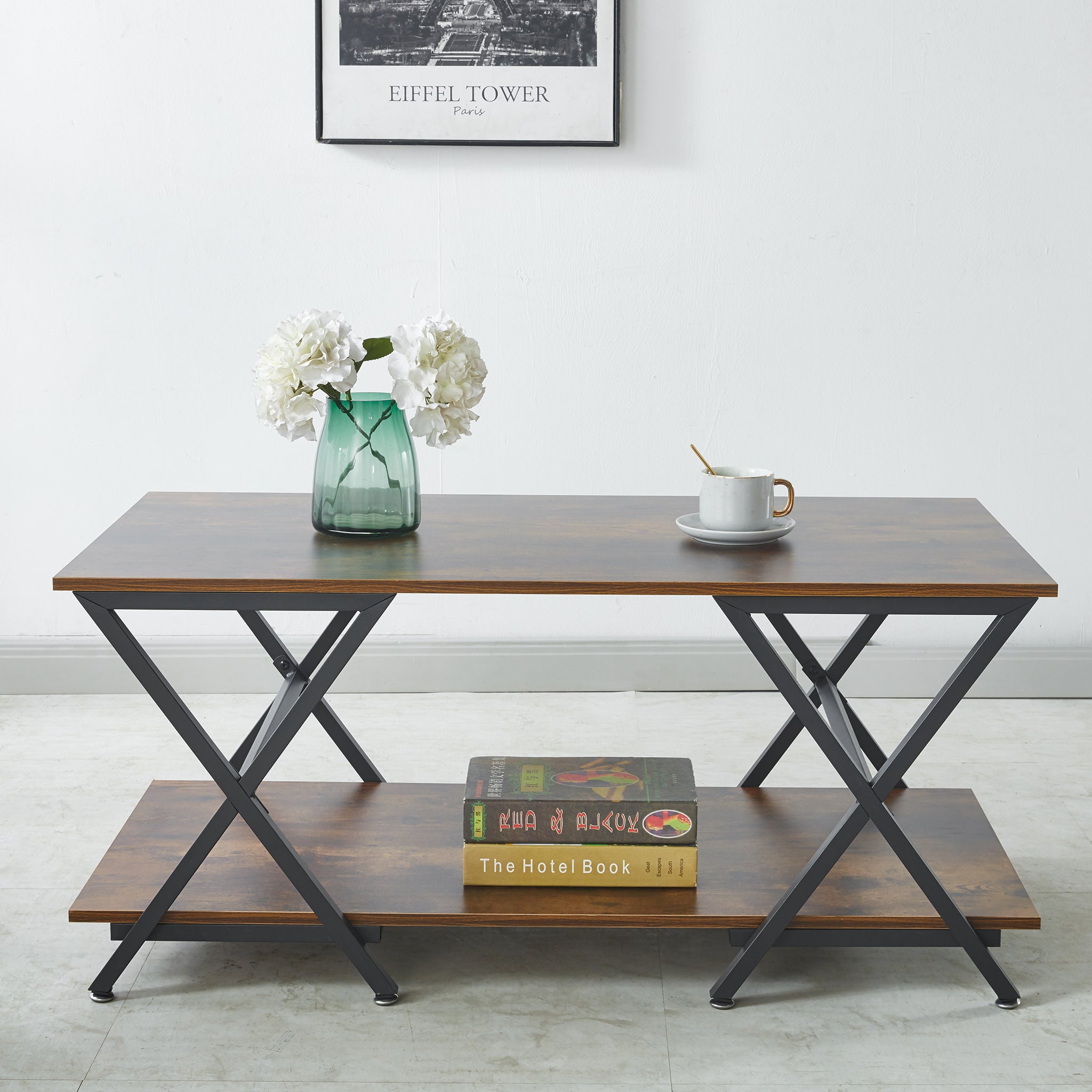 - Sturdy & Durable: Built with premium MDF Board, this coffee table stands on a sturdy metal base. The X-shaped sides not only provide stability but also contribute to the living room table's industrial aesthetic, making it an effortless addition to both farmhouse and modern minimalist interiors.