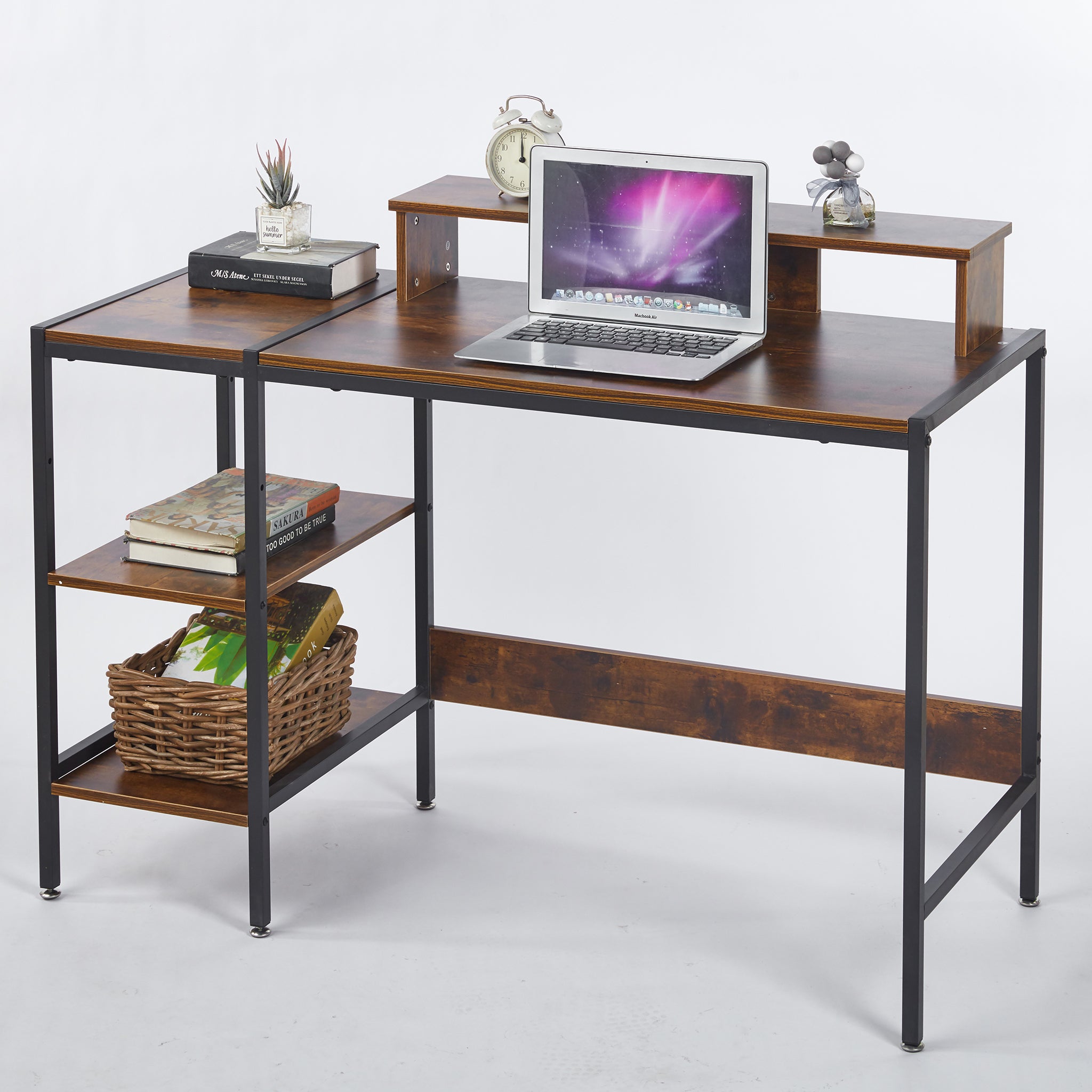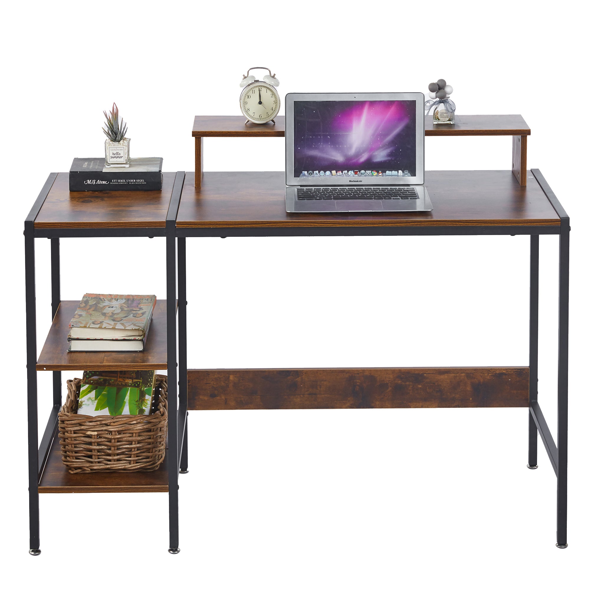 - Reversible Storage Shelves: This computer table with a monitor stand has two spacious and adjustable open shelves for storage. This desk with shelves is reversible that can be installed on either left or right. The adjustable shelf of computer desk allows you to store different sizes of stuff, such as computer hosts, books, office stationery, and small devices. The reversible open shelf design of the office desk keeps everything easy to reach and organize.