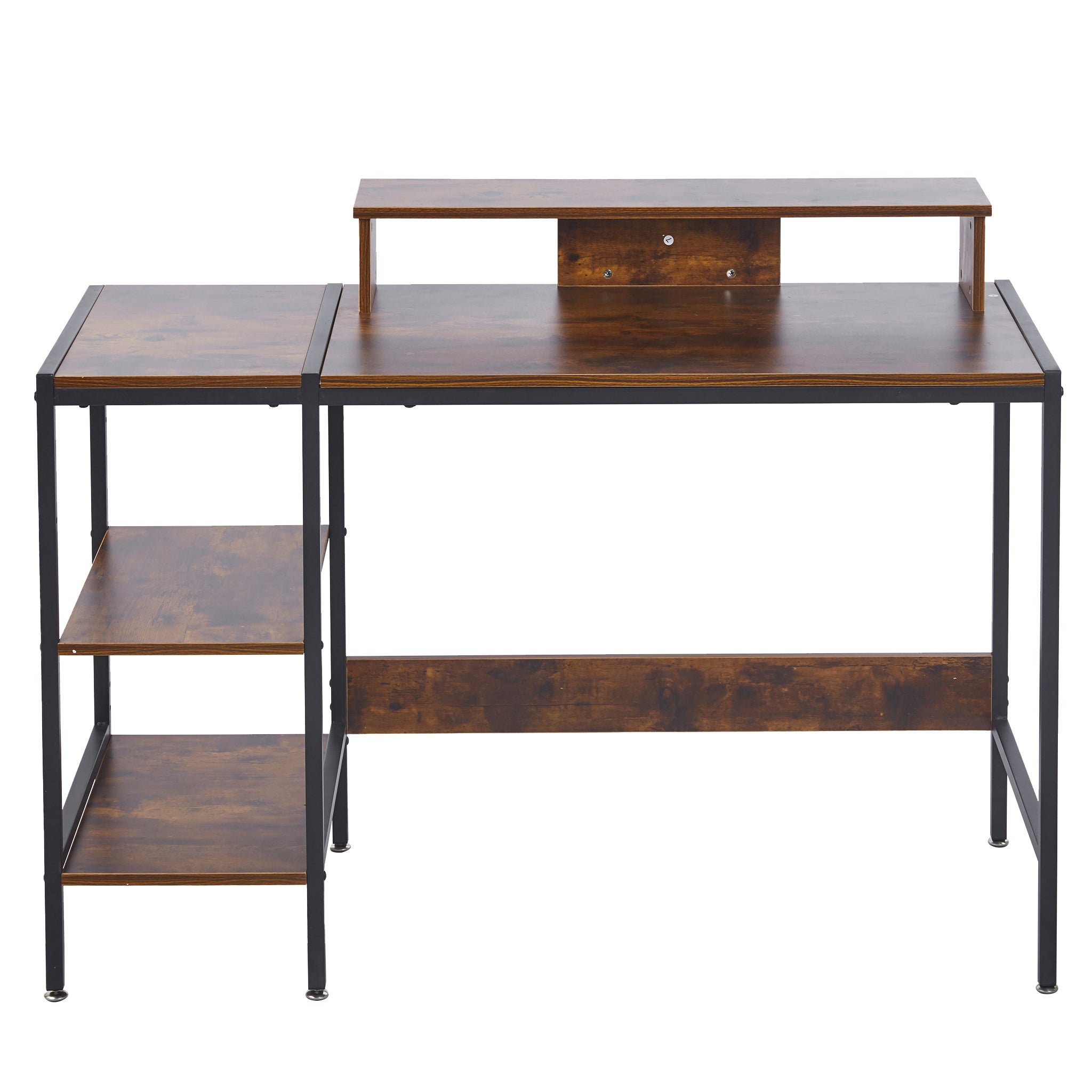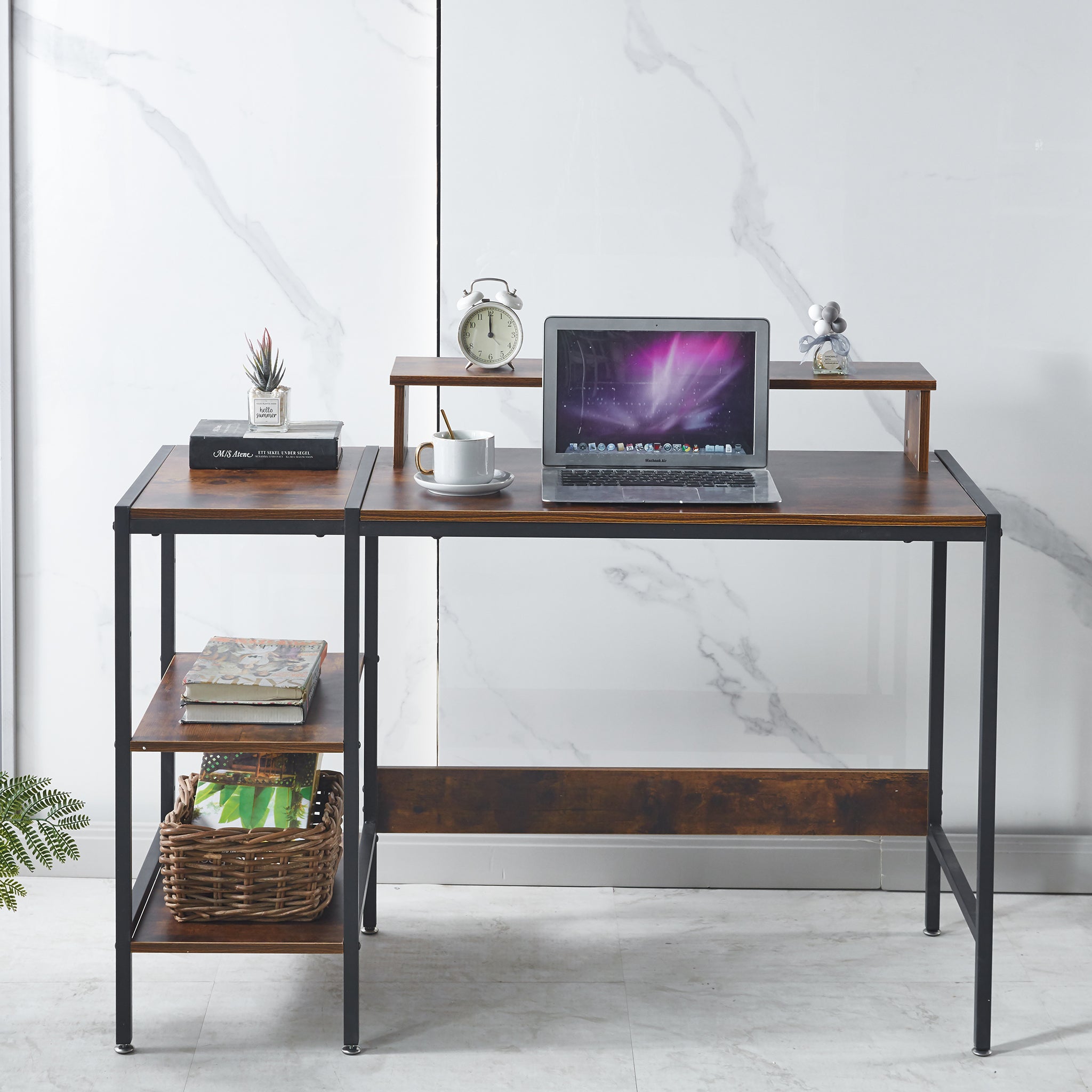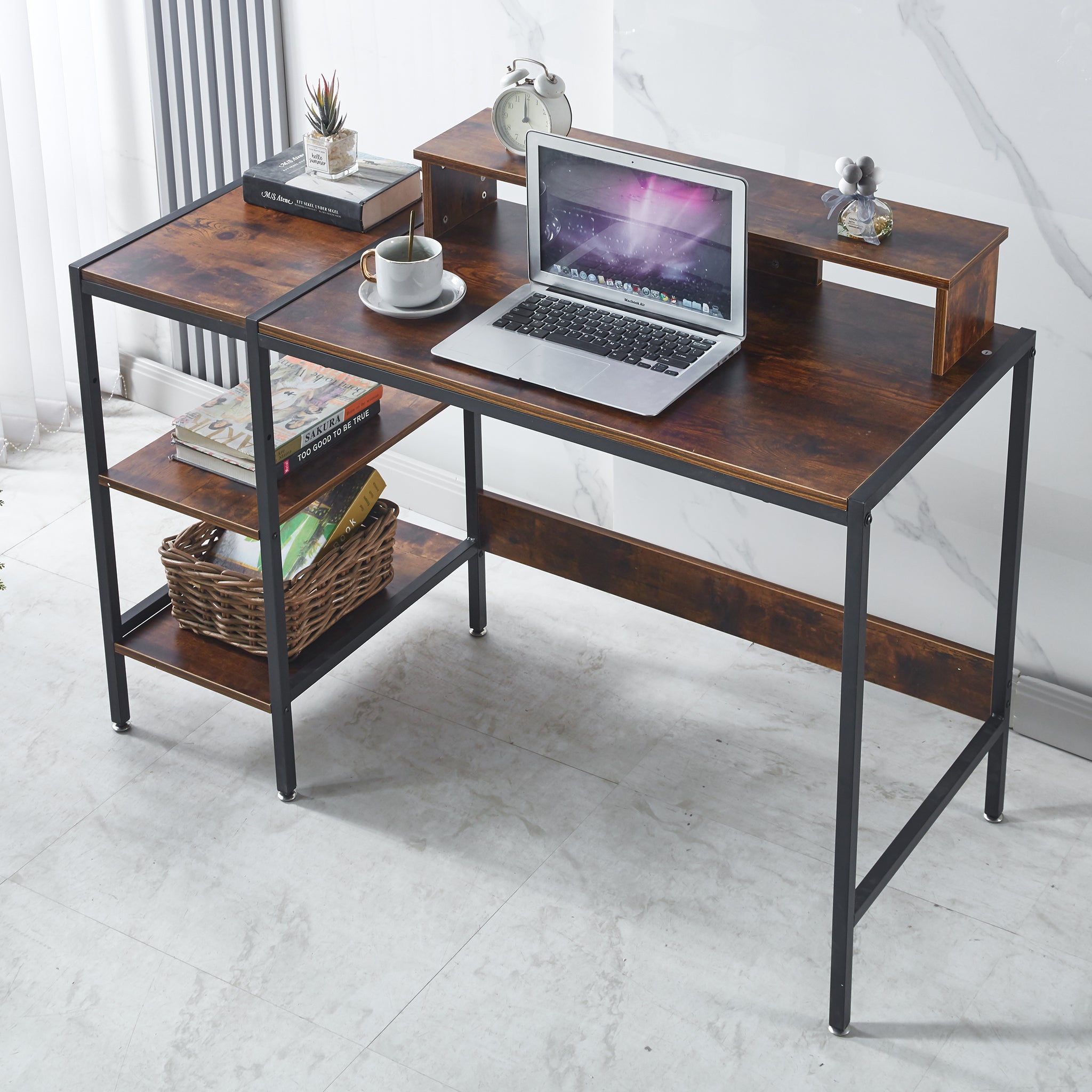 - Reversible Storage Shelves: This computer table with a monitor stand has two spacious and adjustable open shelves for storage. This desk with shelves is reversible that can be installed on either left or right. The adjustable shelf of computer desk allows you to store different sizes of stuff, such as computer hosts, books, office stationery, and small devices. The reversible open shelf design of the office desk keeps everything easy to reach and organize.