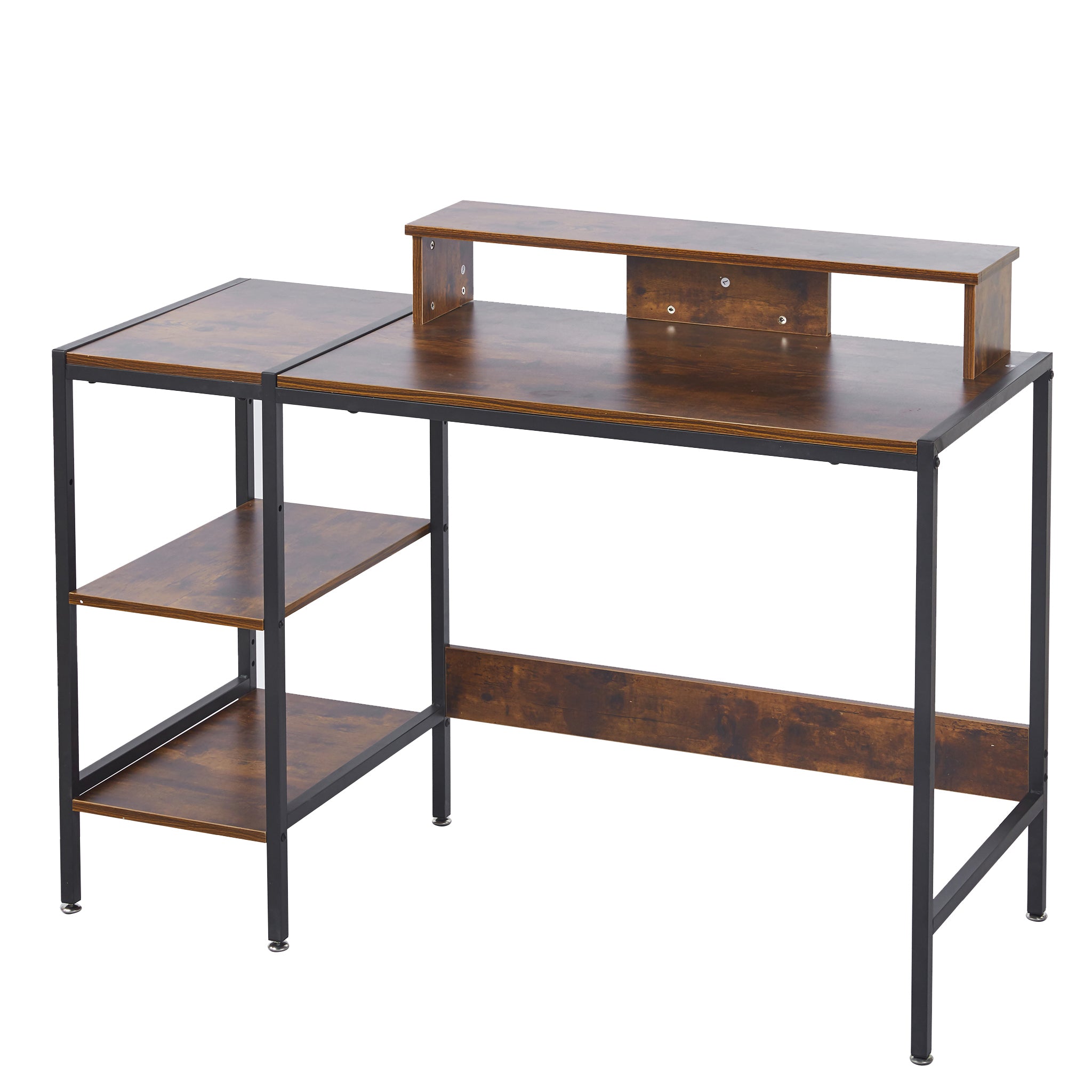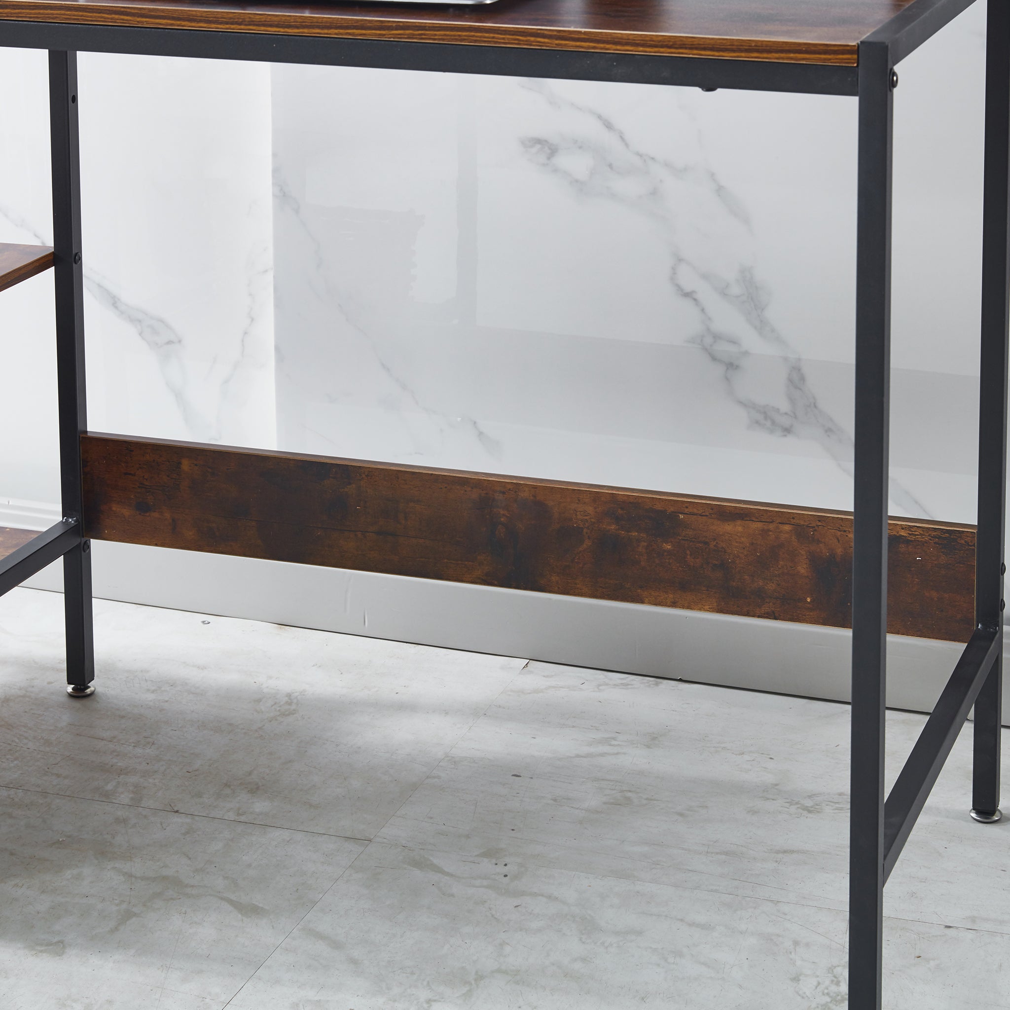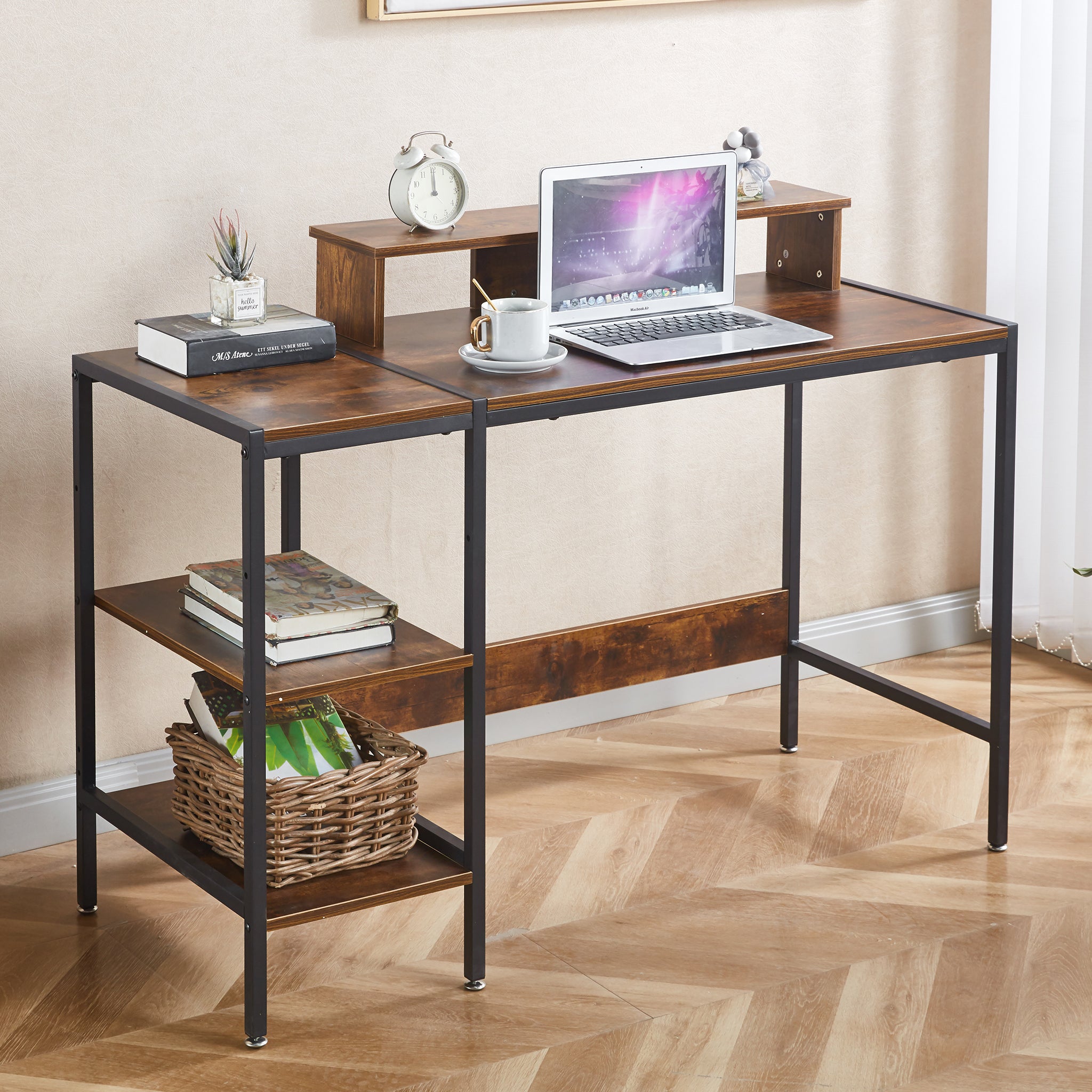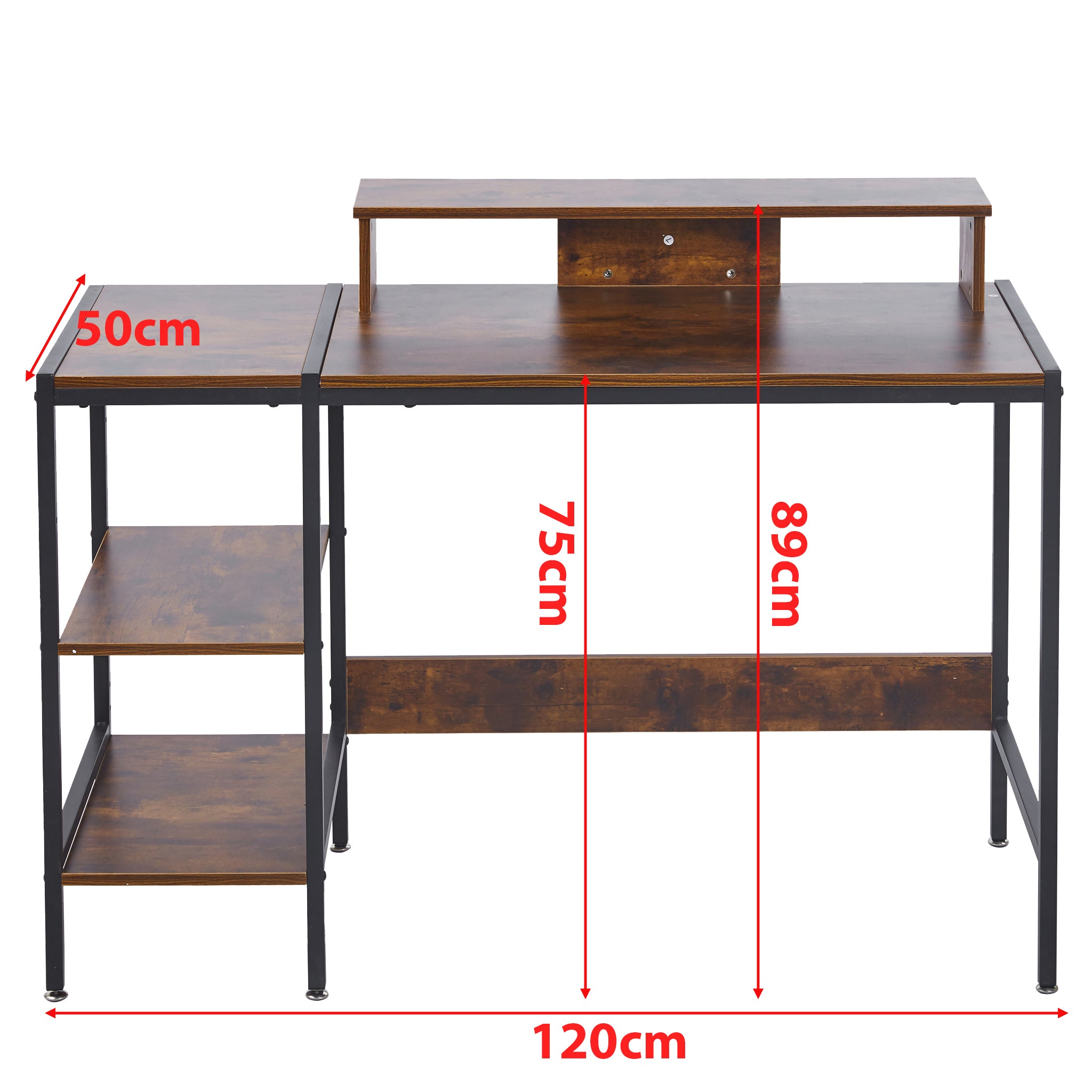 - Reversible Storage Shelves: This computer table with a monitor stand has two spacious and adjustable open shelves for storage. This desk with shelves is reversible that can be installed on either left or right. The adjustable shelf of computer desk allows you to store different sizes of stuff, such as computer hosts, books, office stationery, and small devices. The reversible open shelf design of the office desk keeps everything easy to reach and organize.