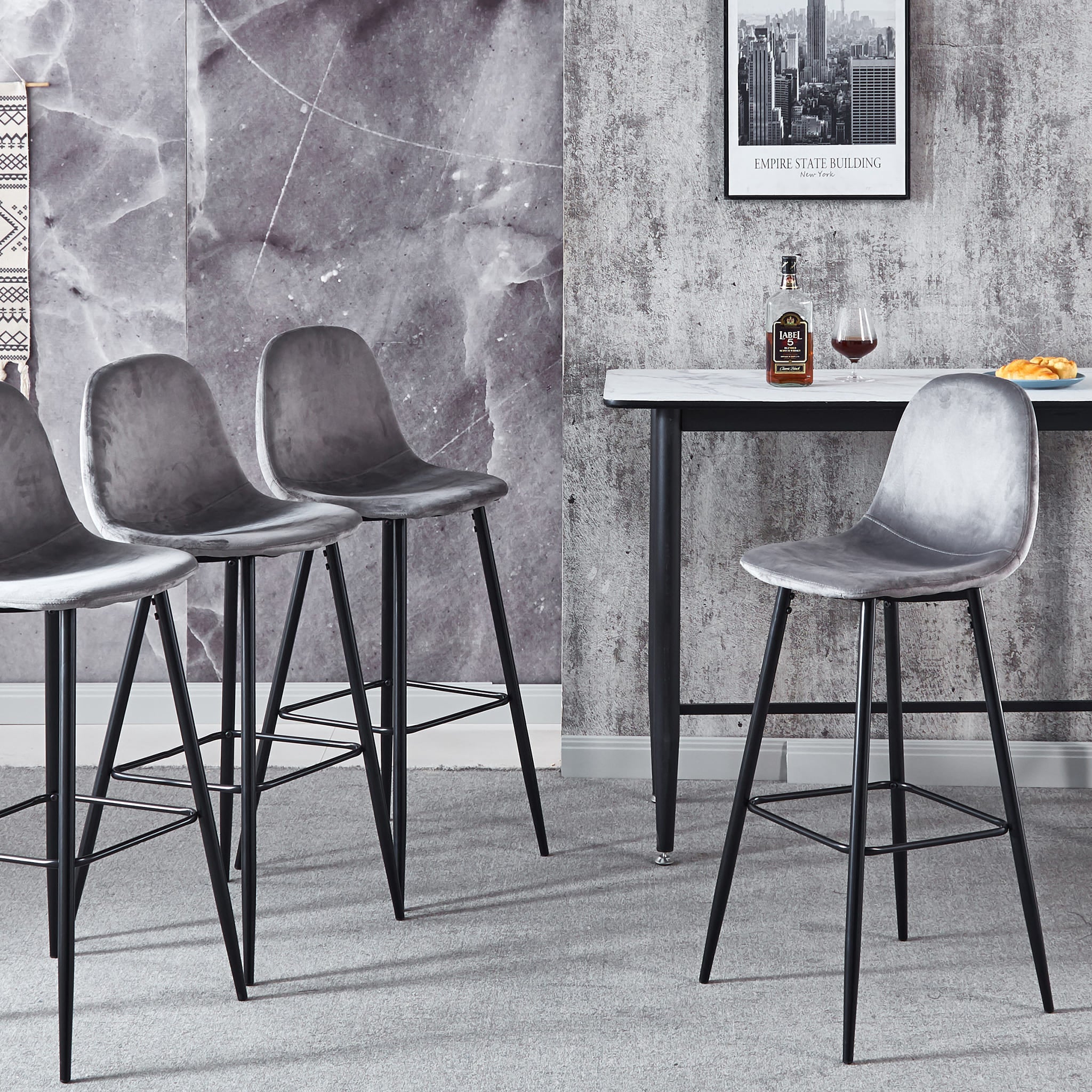 Elevate your home bar with the Della Velvet Bar Stool 4-in-1 box - CR-BC028, blending retro flair and modern elegance. Featuring plush velvet seating atop sleek black steel legs, this set offers both comfort and durability. Ideal for chic entertaining, each stool supports up to 90kg and comes with easy DIY assembly instructions.