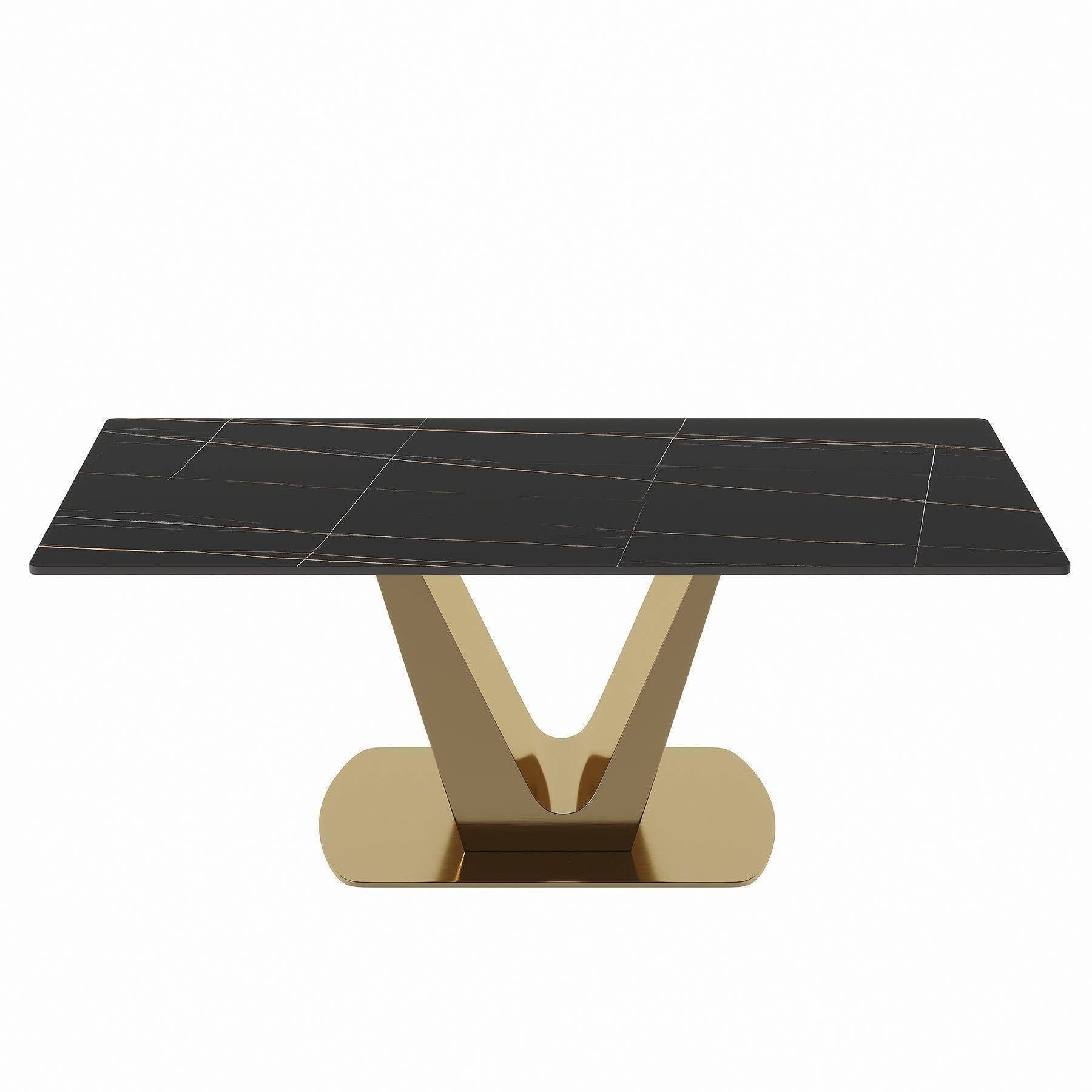 - Chic and Spacious: Elevate your dining atmosphere with our dining table featuring a modern design in black and gold. This sleek and rectangular dining room table complements any home decor perfectly. With an surface area of 155cm length and 87cm width, this stylish table seats at least 6 people.