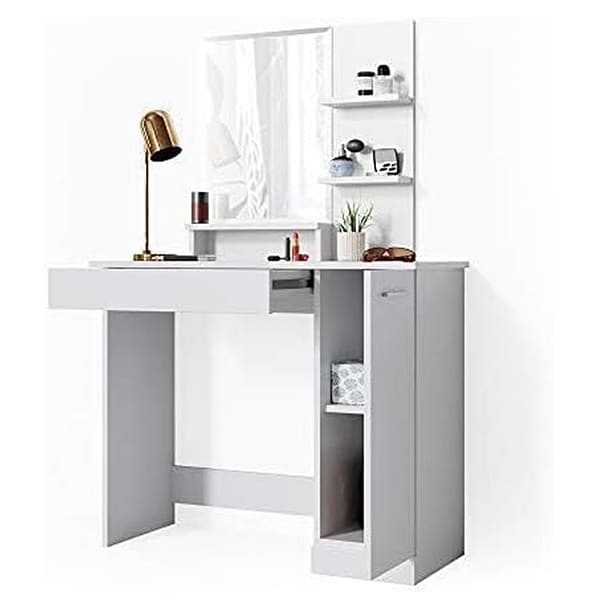 - Easy Installation: According to the detailed manual, this makeup table can be easily integrated. The smooth surface of the wood board is easier to clean.