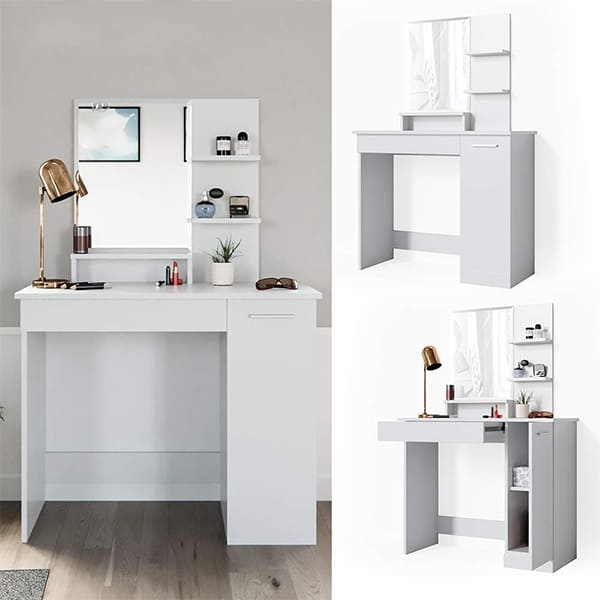 - High Quality Material: The dressing table is made of grade environment-friendly MDF board, scratch-resistant and moisture-resistant. The mirror is high-definition mercury mirror.