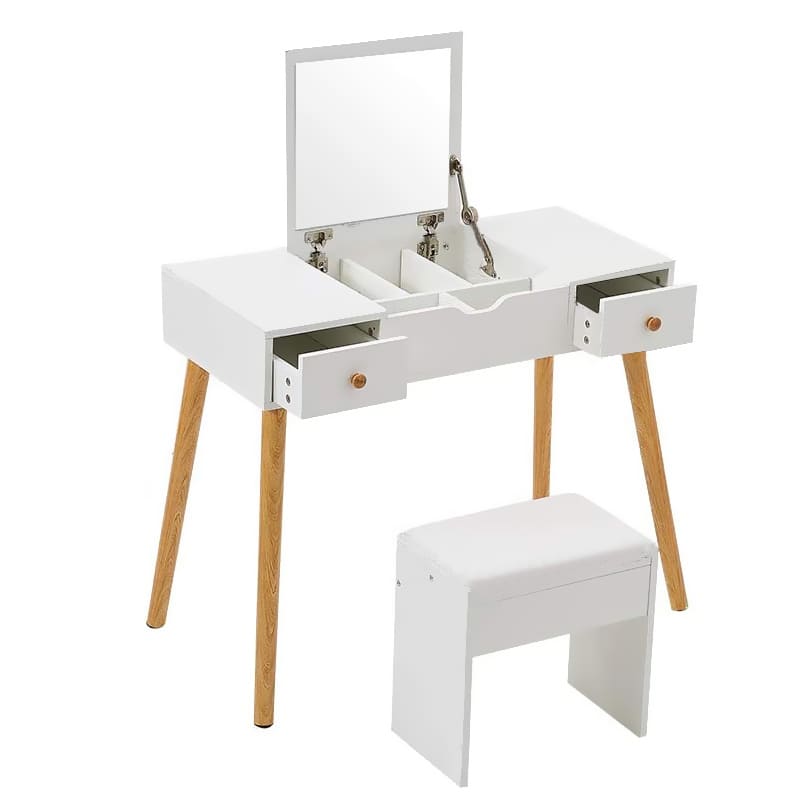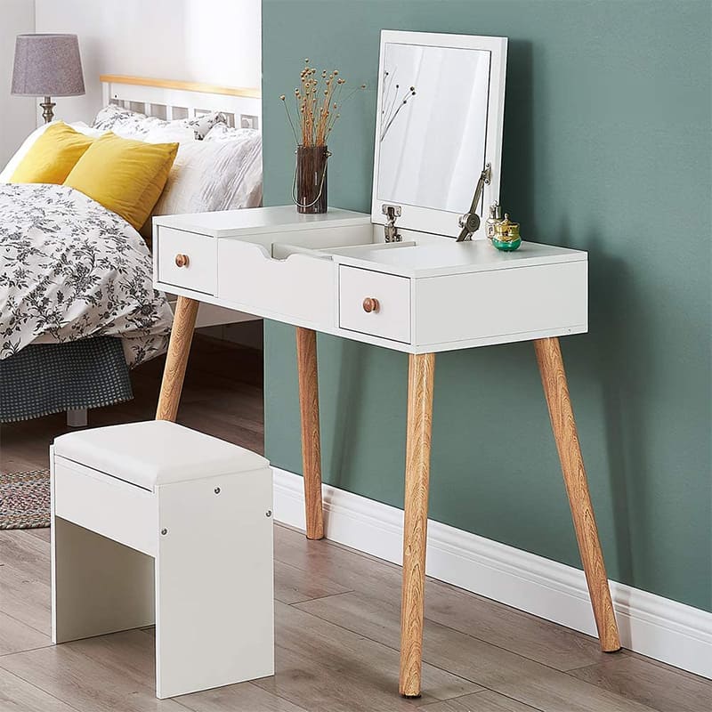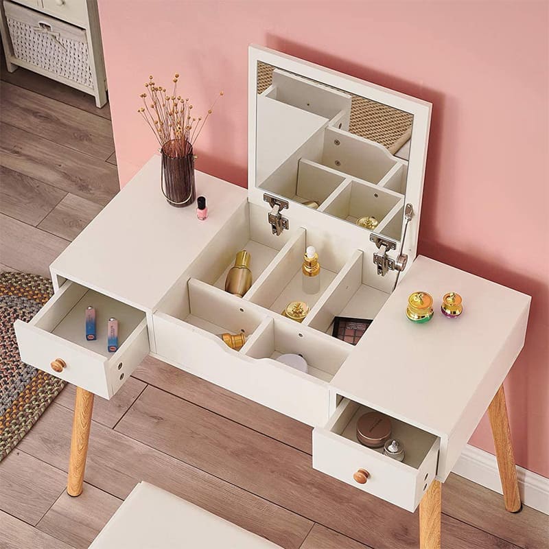 - Easy Installation: According to the detailed manual, this makeup table can be easily integrated. The smooth surface of the wood board is easier to clean.