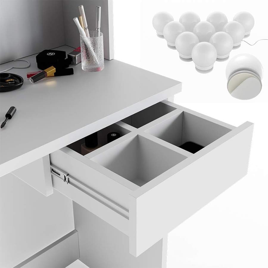 - Easy to Clean: A light wipe with a damp cloth will give the make up desk a fresh look. Easily on ball bearings, allowing you to effortlessly push and pull drawers to keep your items neat.