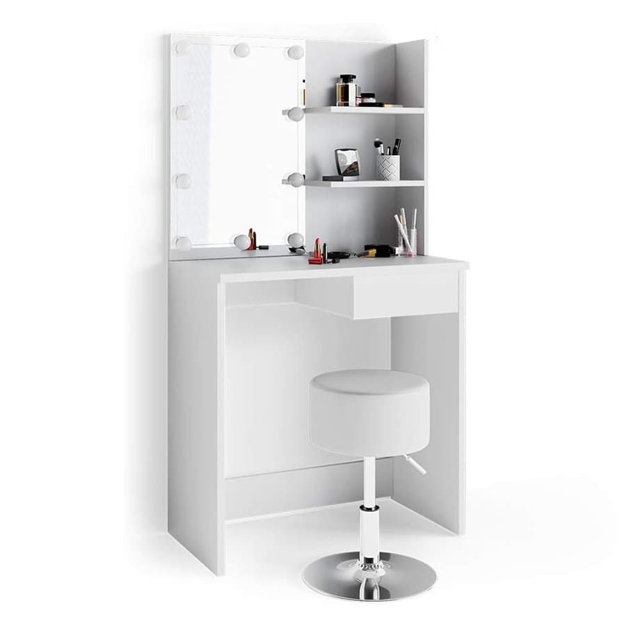 - High Quality Material: The dressing table is made of grade environment-friendly MDF board, scratch-resistant and moisture-resistant. The mirror is high-definition mercury mirror.