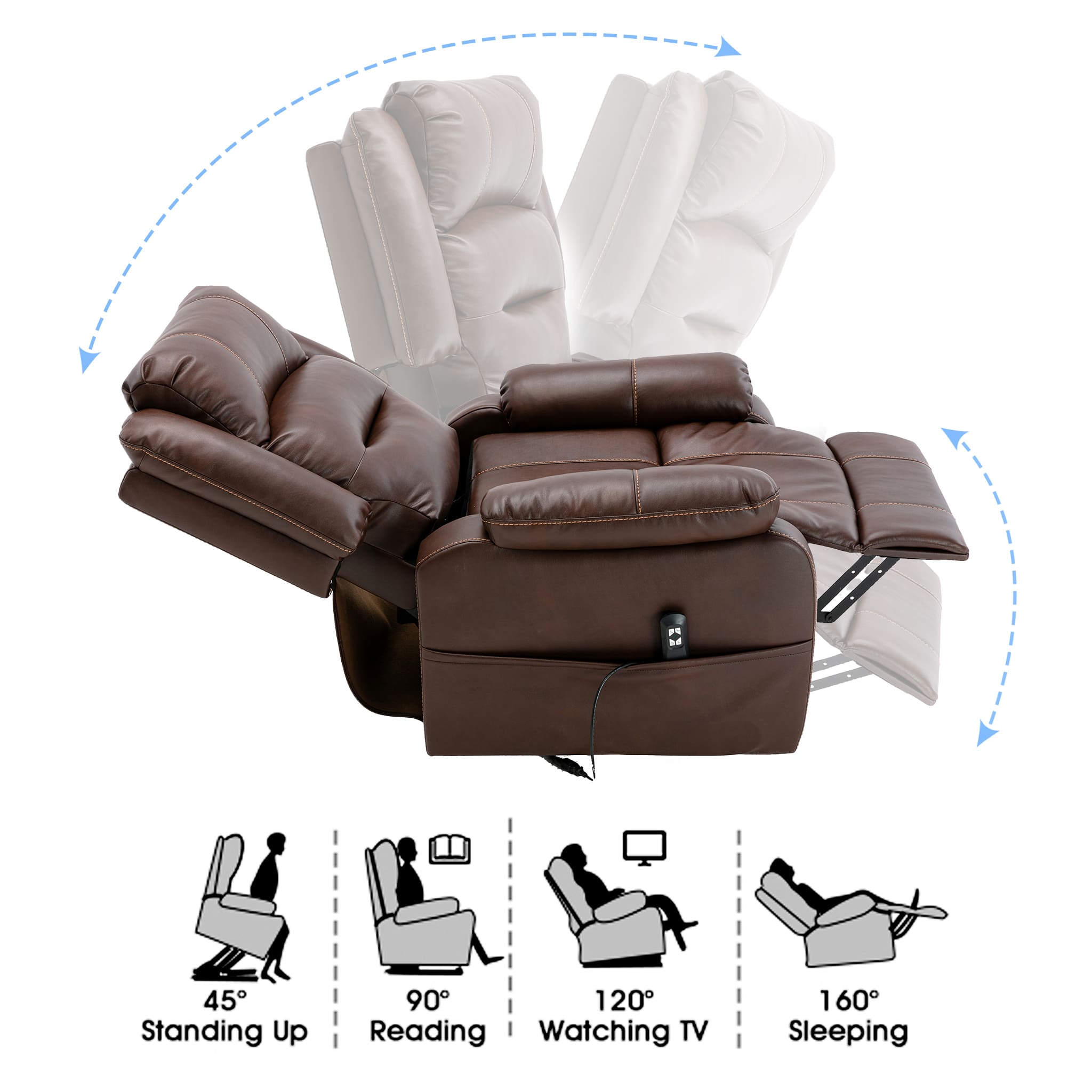 This is our Brand New Electric Lift Chair, which is perfect for great for watching TV, Sleeping, Reading or simply relaxing. made of high quality PU And filled with high-density sponge, It is odor-free and Soft enough. This Lift Recliner is easy to operate and feature a very quiet and smooth Lift And Recline. With the push of a button, It will smoothly and safely lift you up. It is helpful to those who may not be easy to Sit On the power lift chair, it is designed to help the elderly safely to stand up from the power recliner due to pain or lack of strength. Don't Hesitate To Bring It Home!