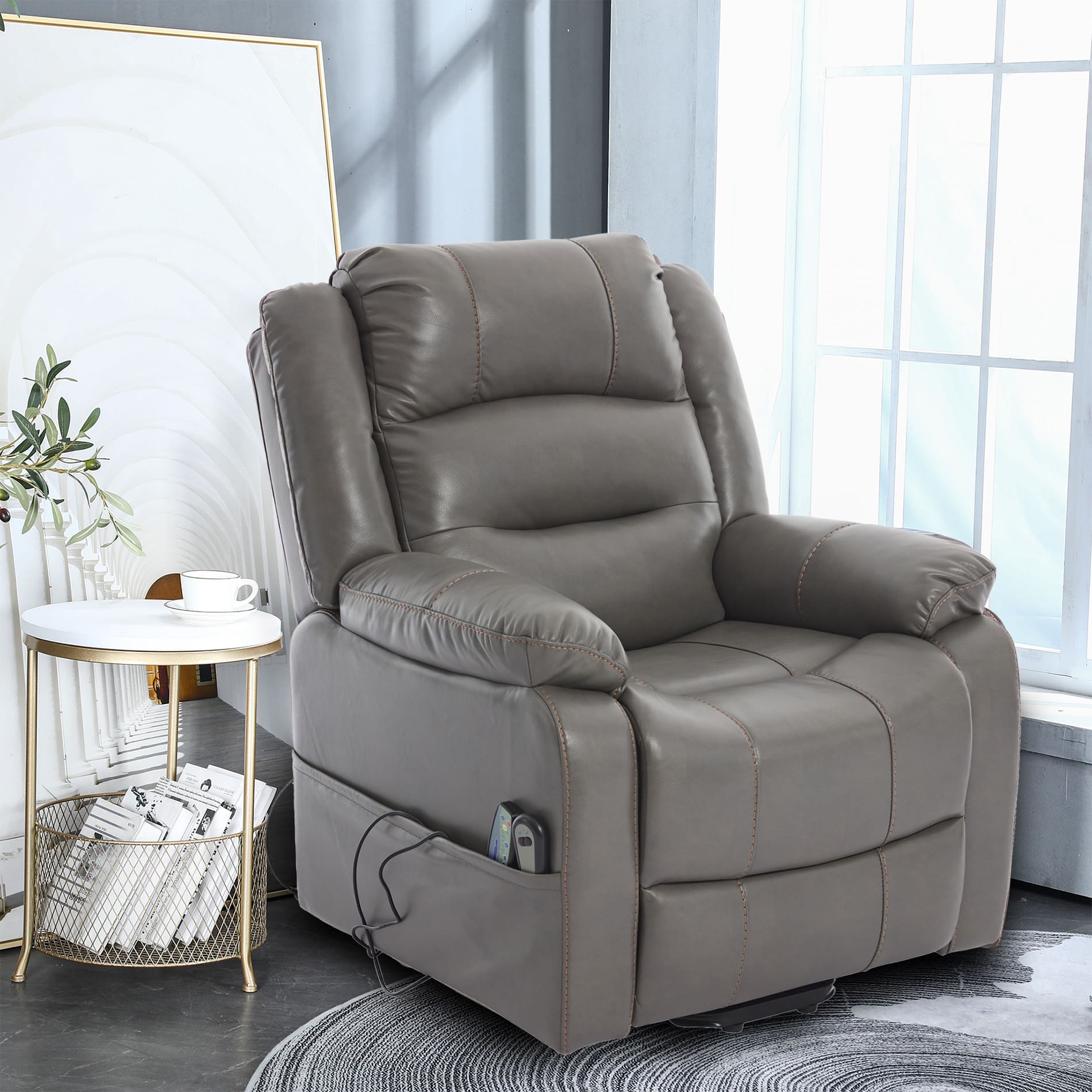 Easily standing upright -The Power Lift Recliner lifts up to assist the user into standing upright without putting stress on back or knees.
