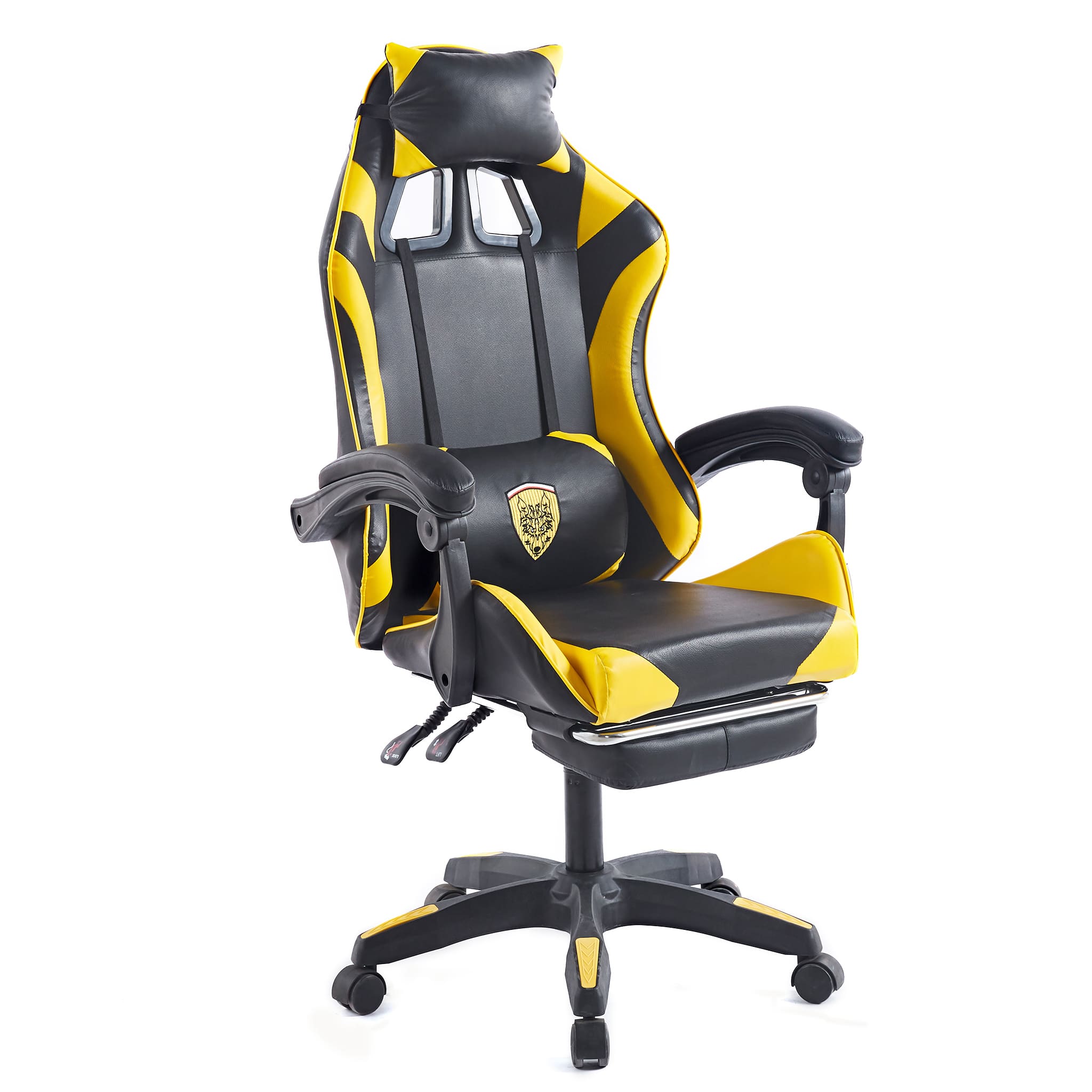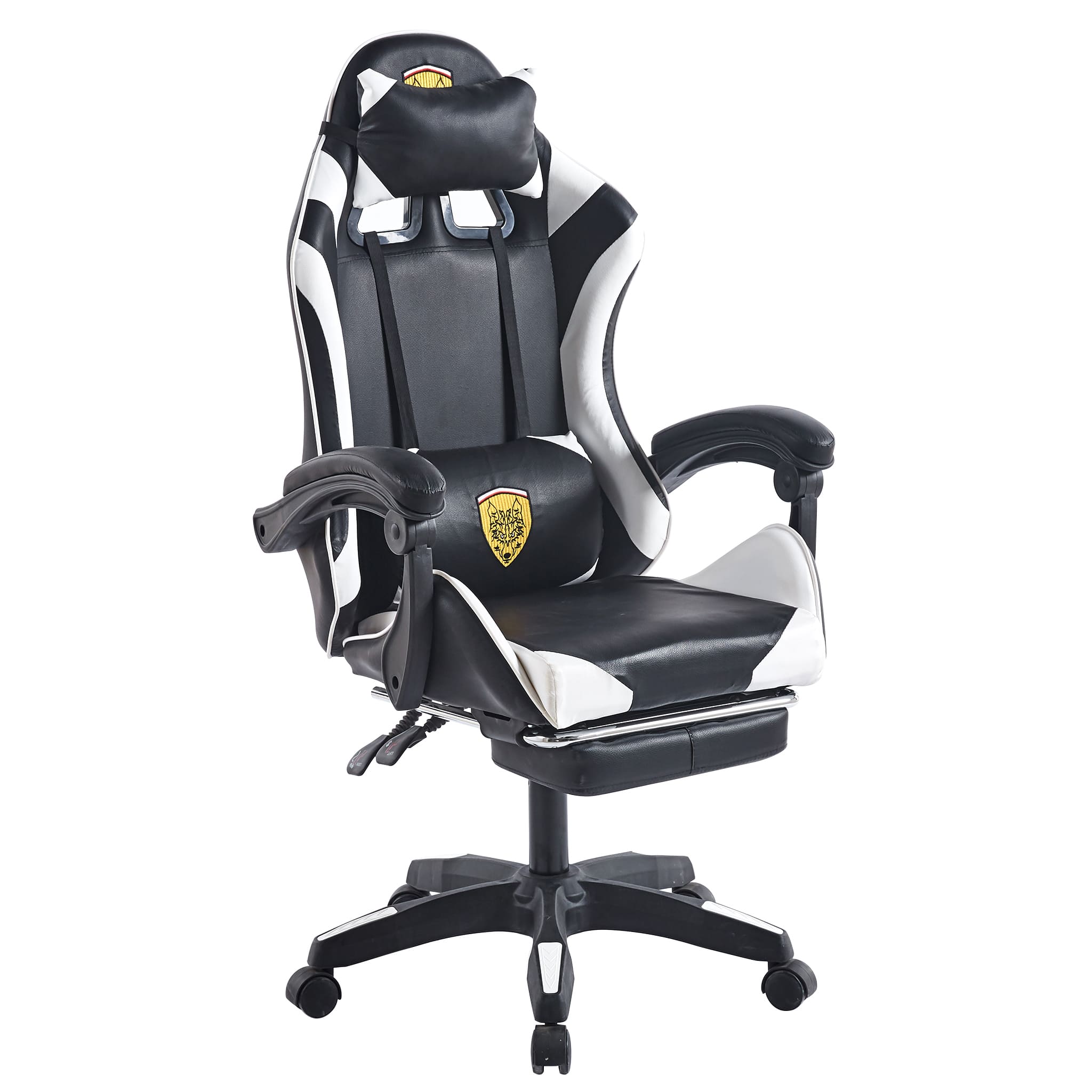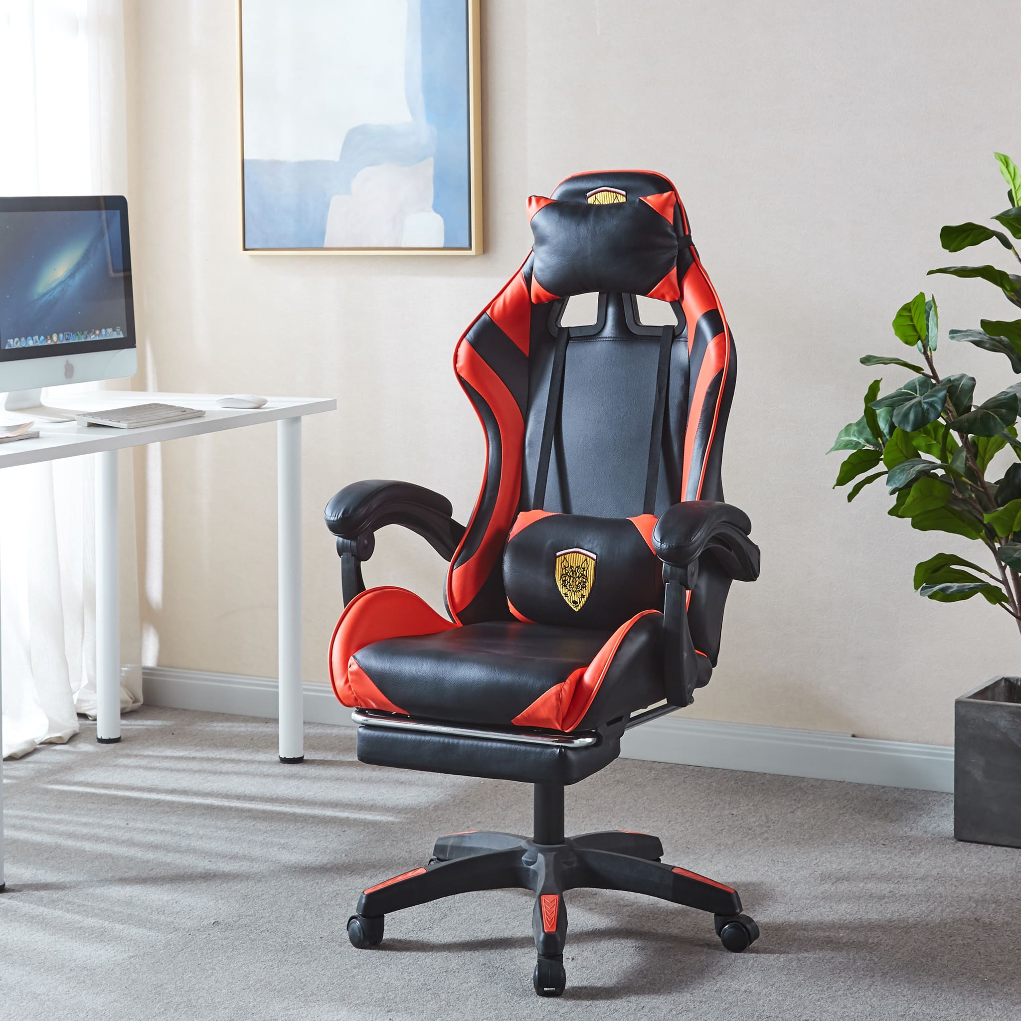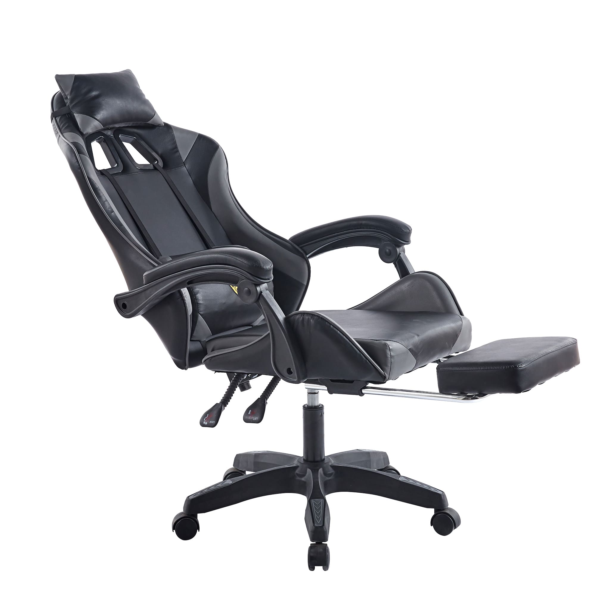 Make sure you're comfortable as you battle it out to be the best. This Gaming Chair /computer chair is made of high-quality PU leather and is designed for durability and comfort with a adjustable backrest and footrest, removable support cushions help to maintain body posture allowing for unlimited hours of gaming .The Full 360-degree swivel and a 180-degree backward tilt gives the user freedom to find optimal positioning. So, get ready to game in comfort and style.