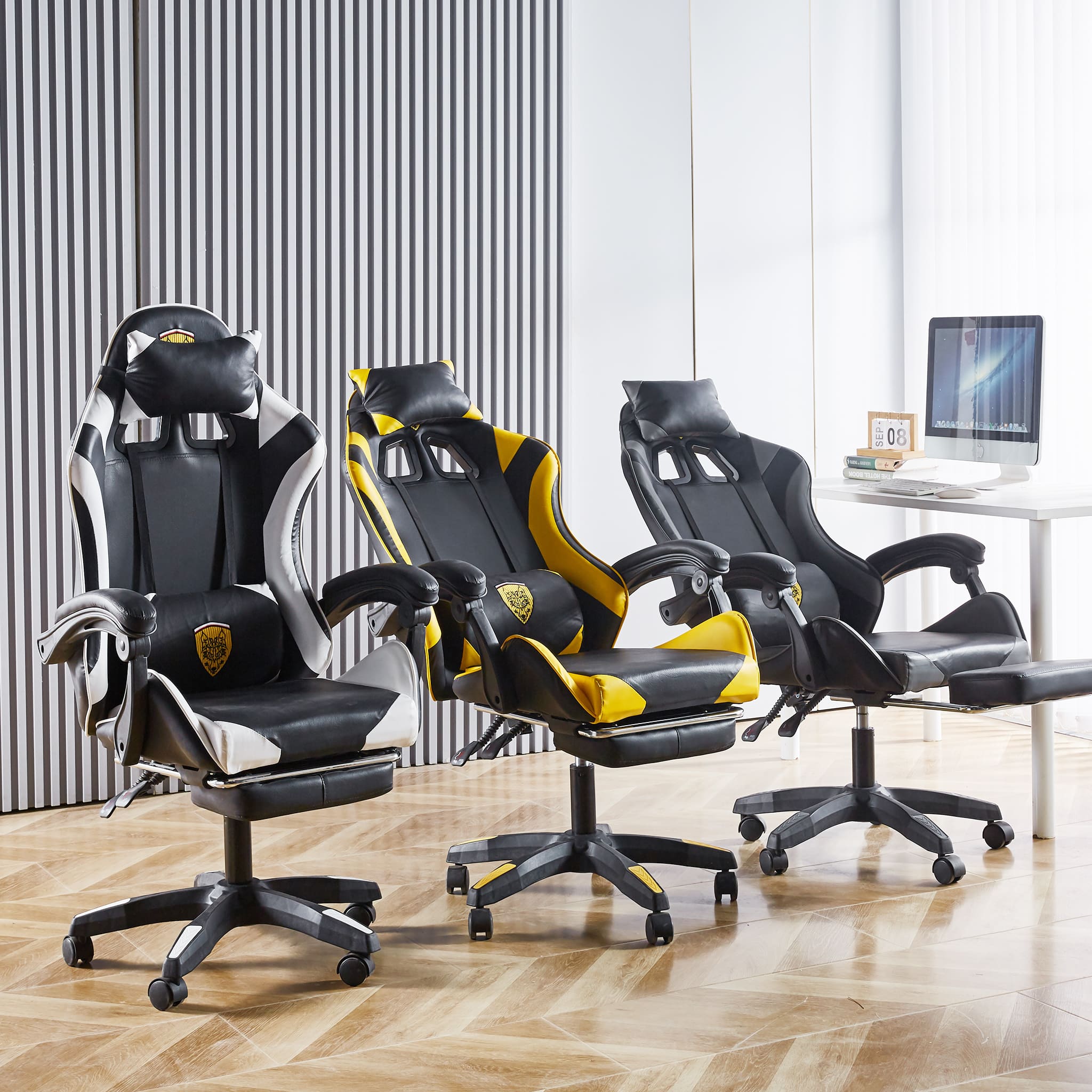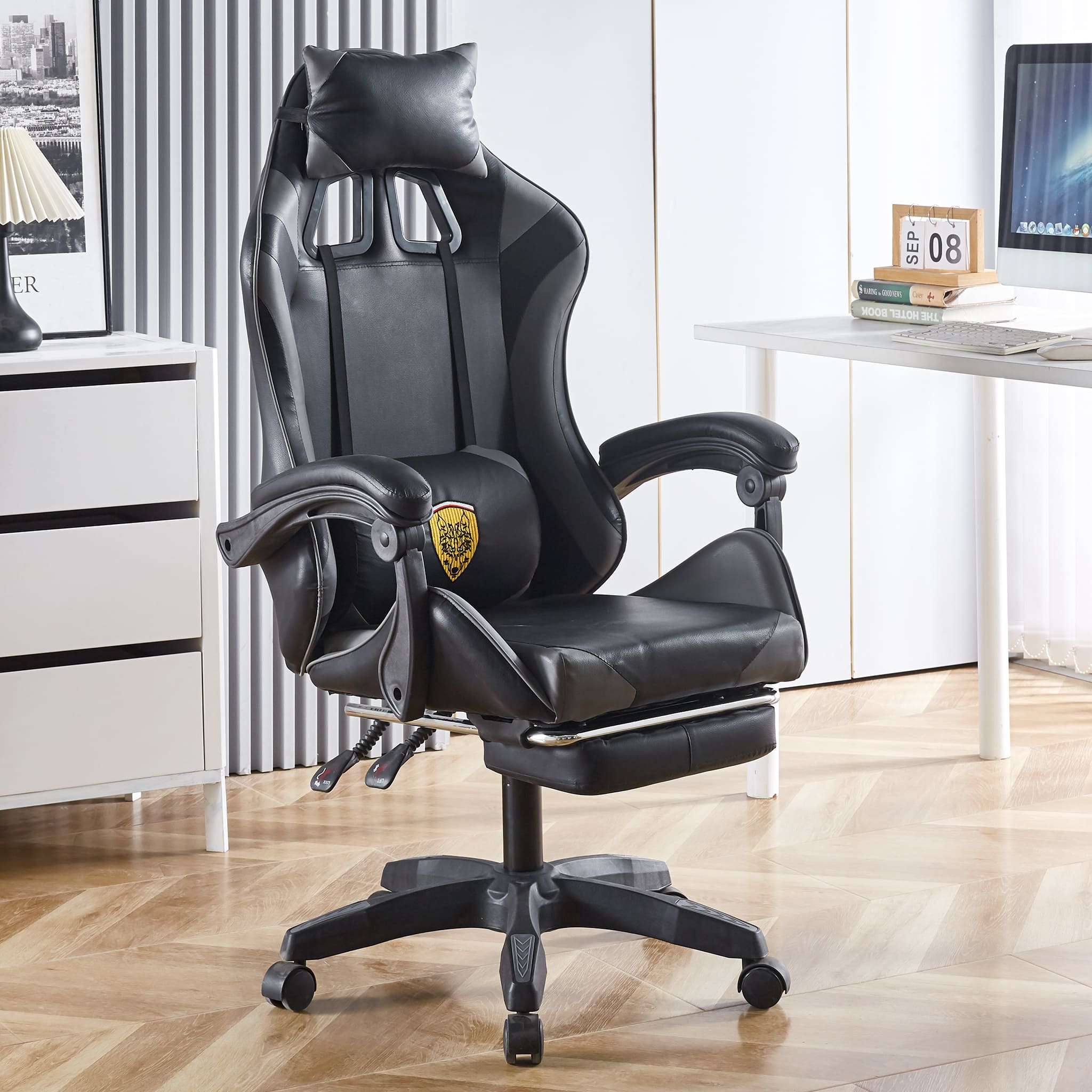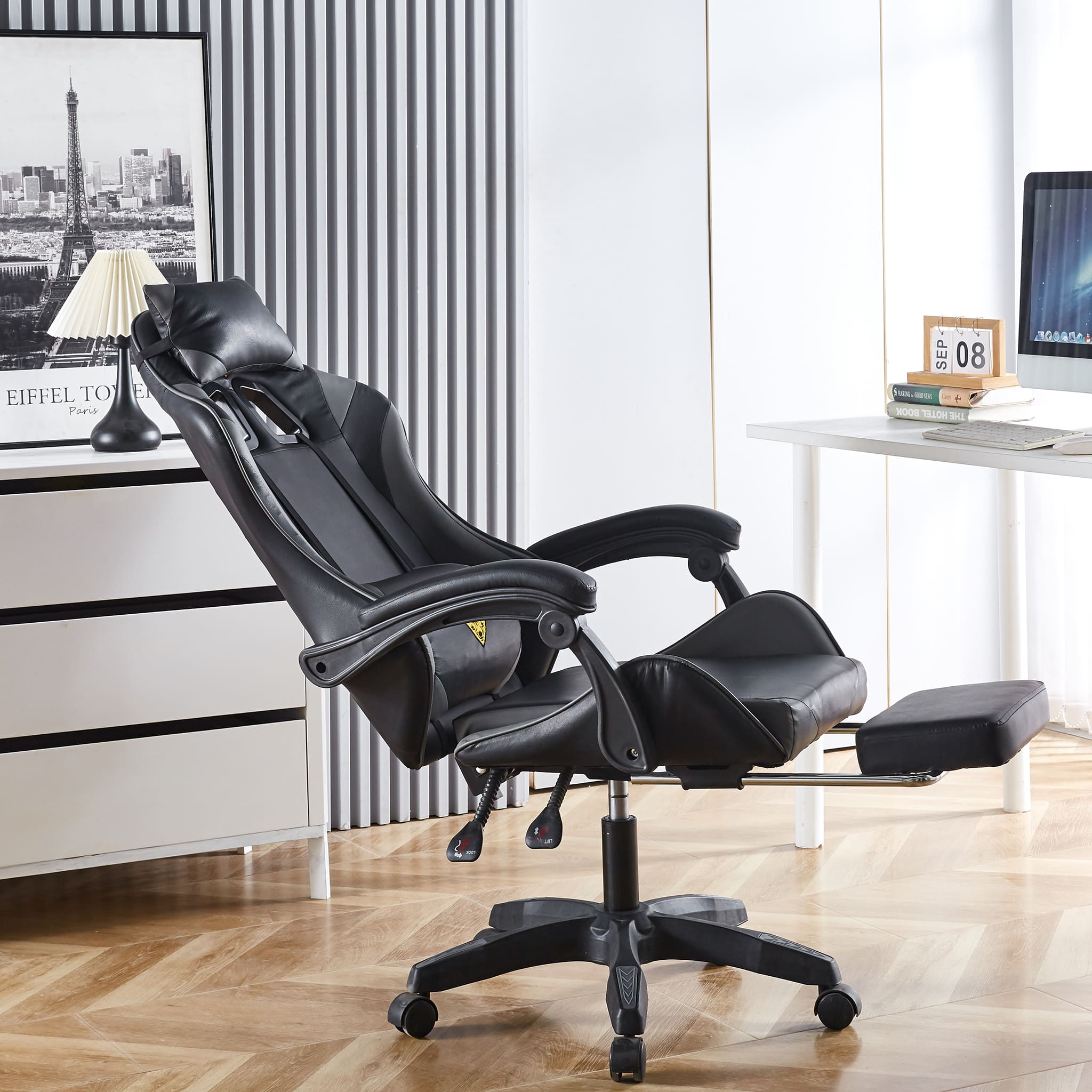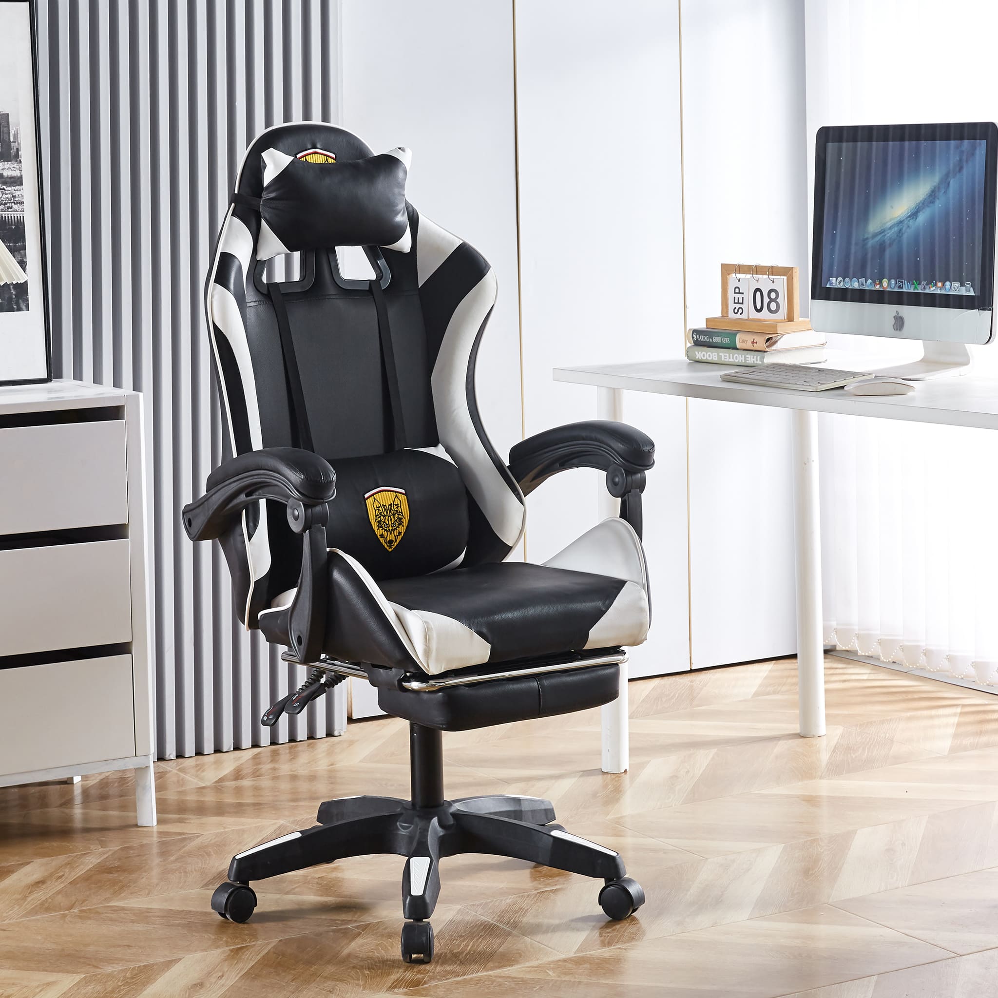 Make sure you're comfortable as you battle it out to be the best. This Gaming Chair /computer chair is made of high-quality PU leather and is designed for durability and comfort with a adjustable backrest and footrest, removable support cushions help to maintain body posture allowing for unlimited hours of gaming .The Full 360-degree swivel and a 180-degree backward tilt gives the user freedom to find optimal positioning. So, get ready to game in comfort and style.