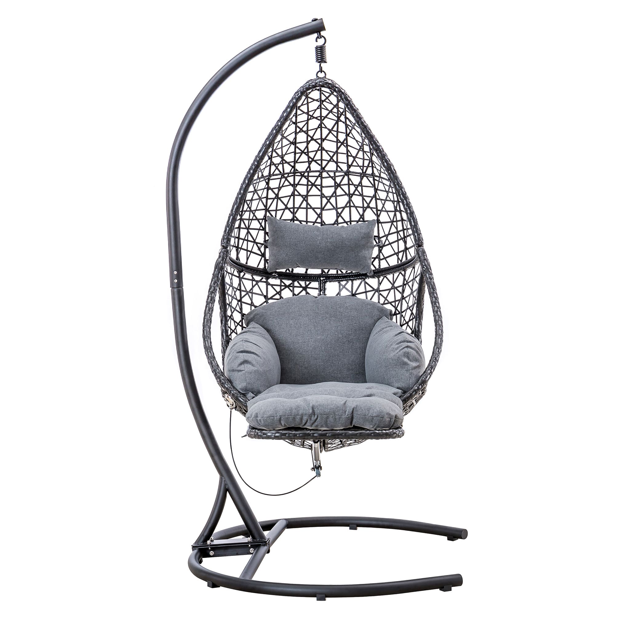 Elevate your relaxation with the Swing Chair XXXL , a luxurious hanging chair designed for both outdoor and indoor spaces. Crafted from durable iron, this grey swing chair features an adjustable foot/leg rest, ensuring maximum comfort. Complete with a pillow set and easy assembly, it's the perfect addition to any poolside or patio.