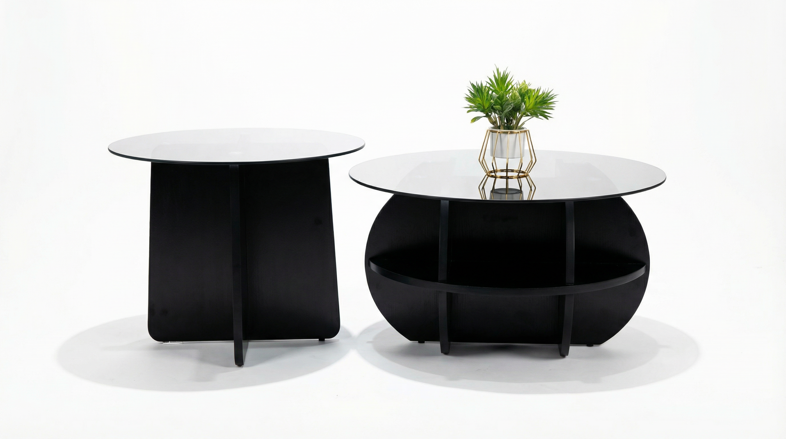 Elevate your living space with the sleek and modern Eclipse Nest Coffee Table Set, featuring a contemporary black glass top and a sculptural, minimalist base. Designed to make a statement, this set blends effortlessly into modern interiors and styled outdoor settings.