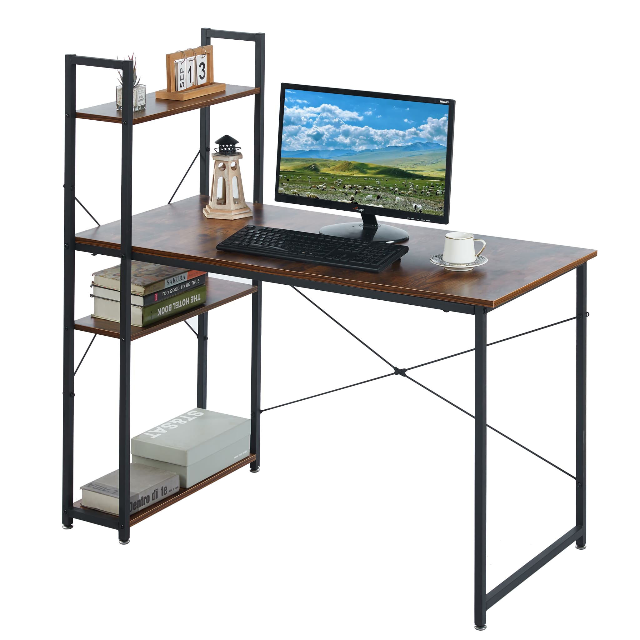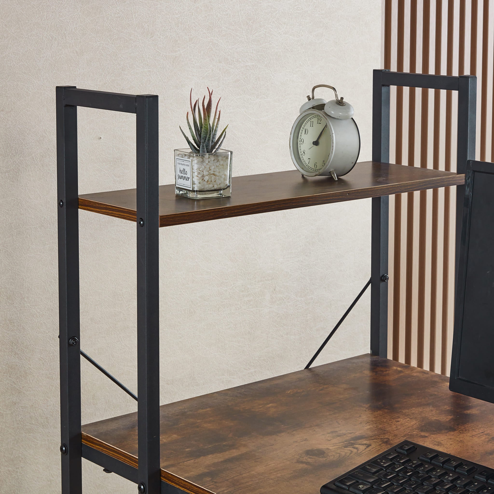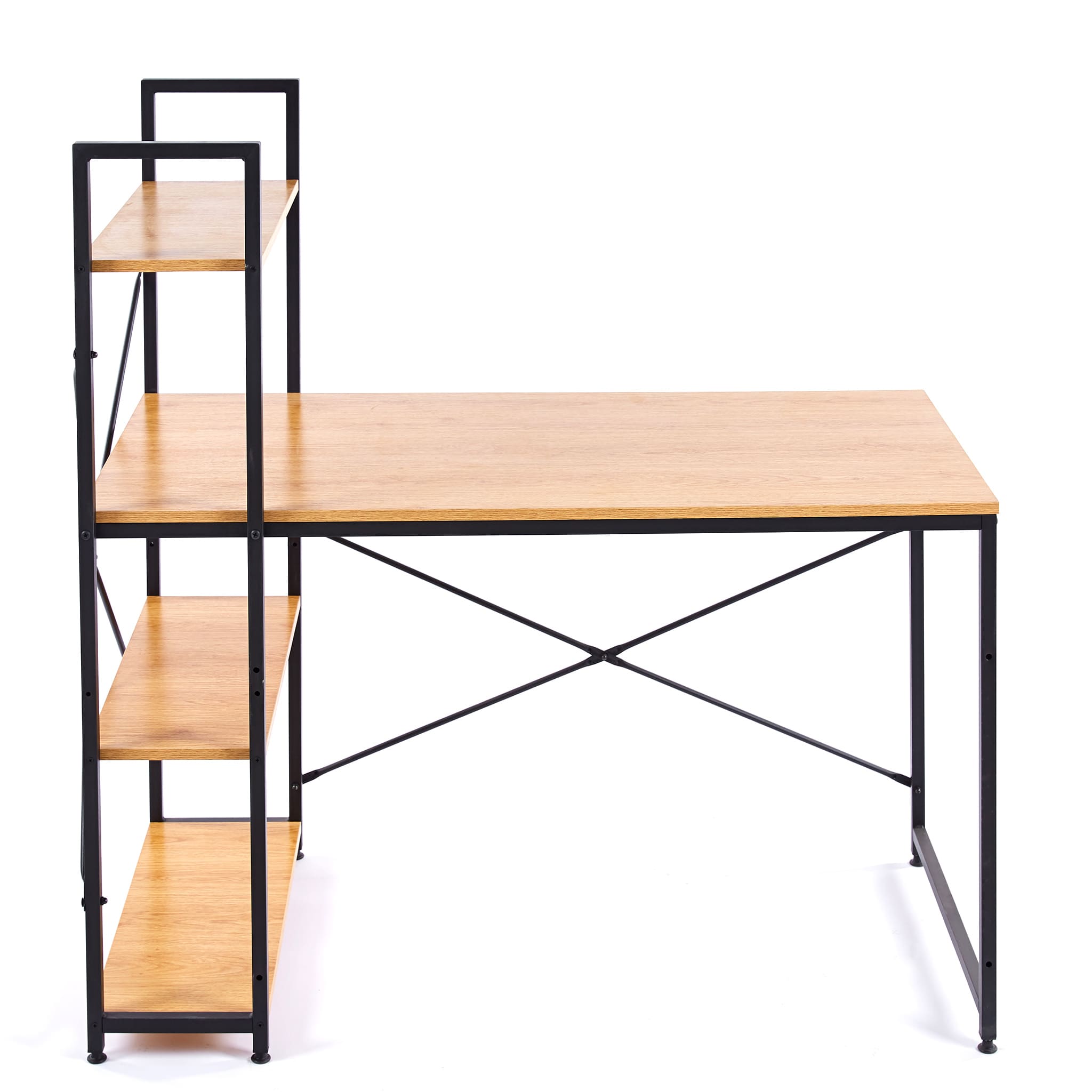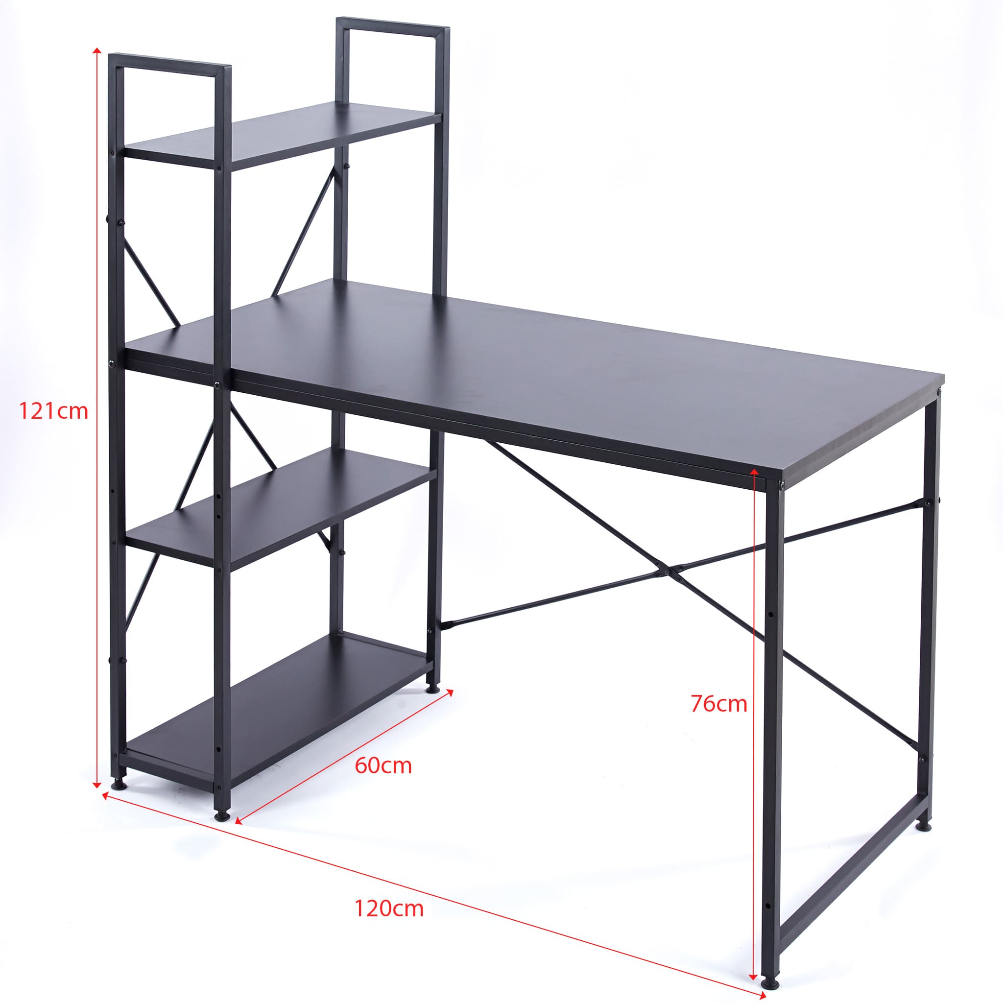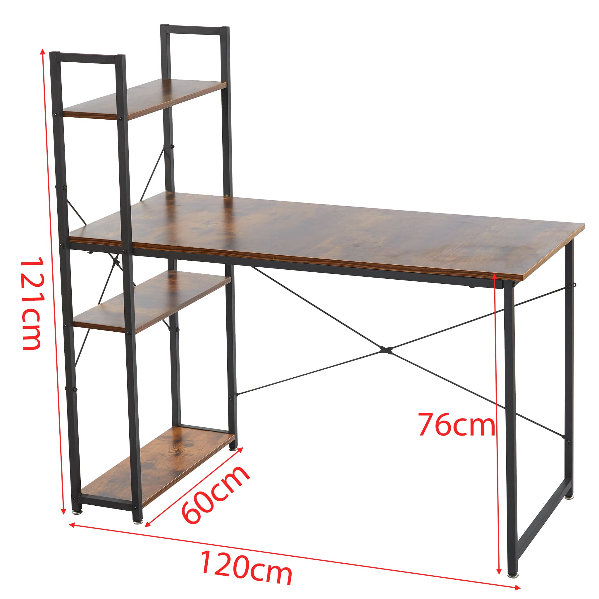 A rustic style spacious computer desk with ample leg room, top and bottom storage shelves to keep all your work or study material within arms reach. Work or study with confidence on an exceptionally strong and durable teak wood table top that can withstand a variety of climates without the need for maintanence. Say goodbye to shakey, unstable work desks, and say hello to thicker steel frames for more stable work or study sessions.