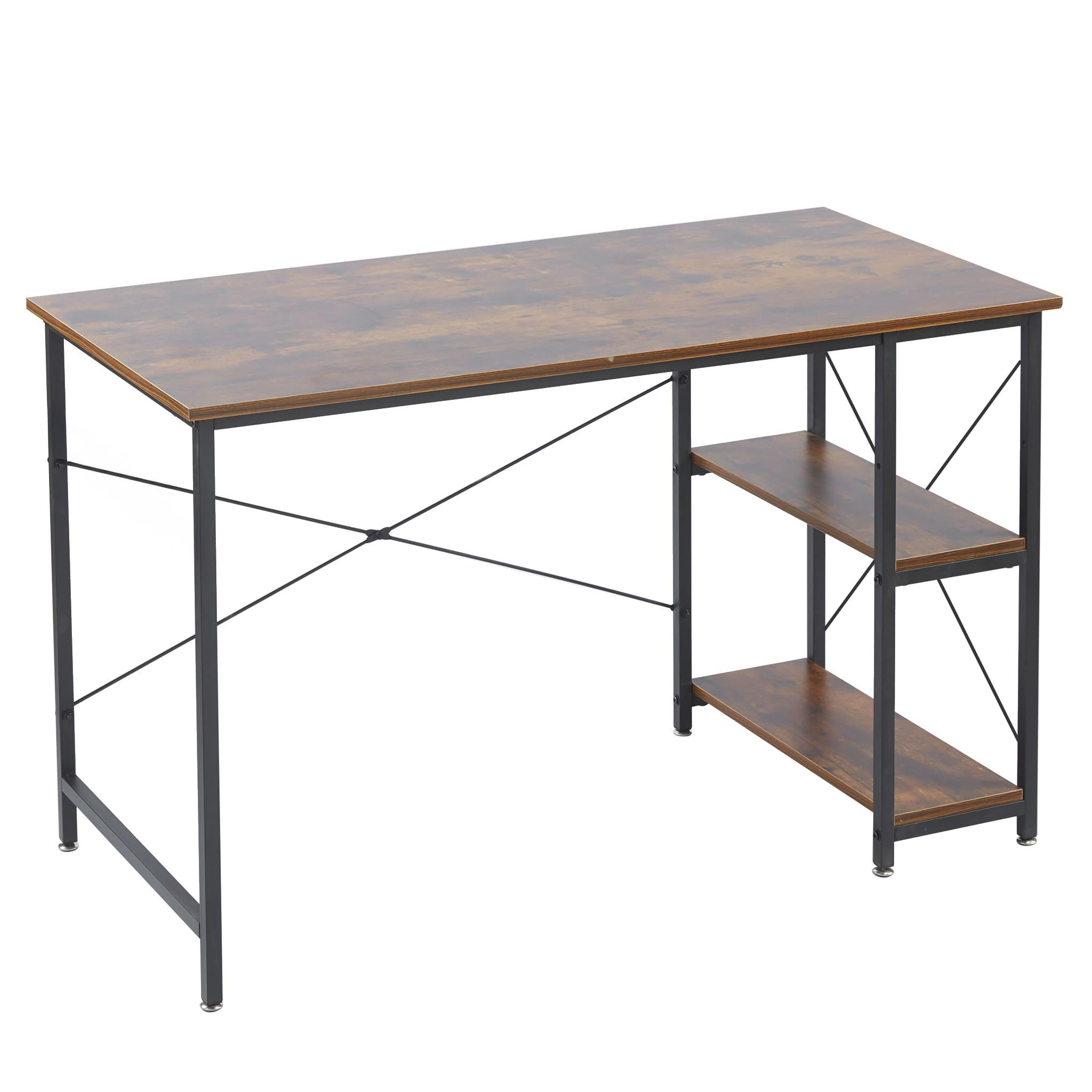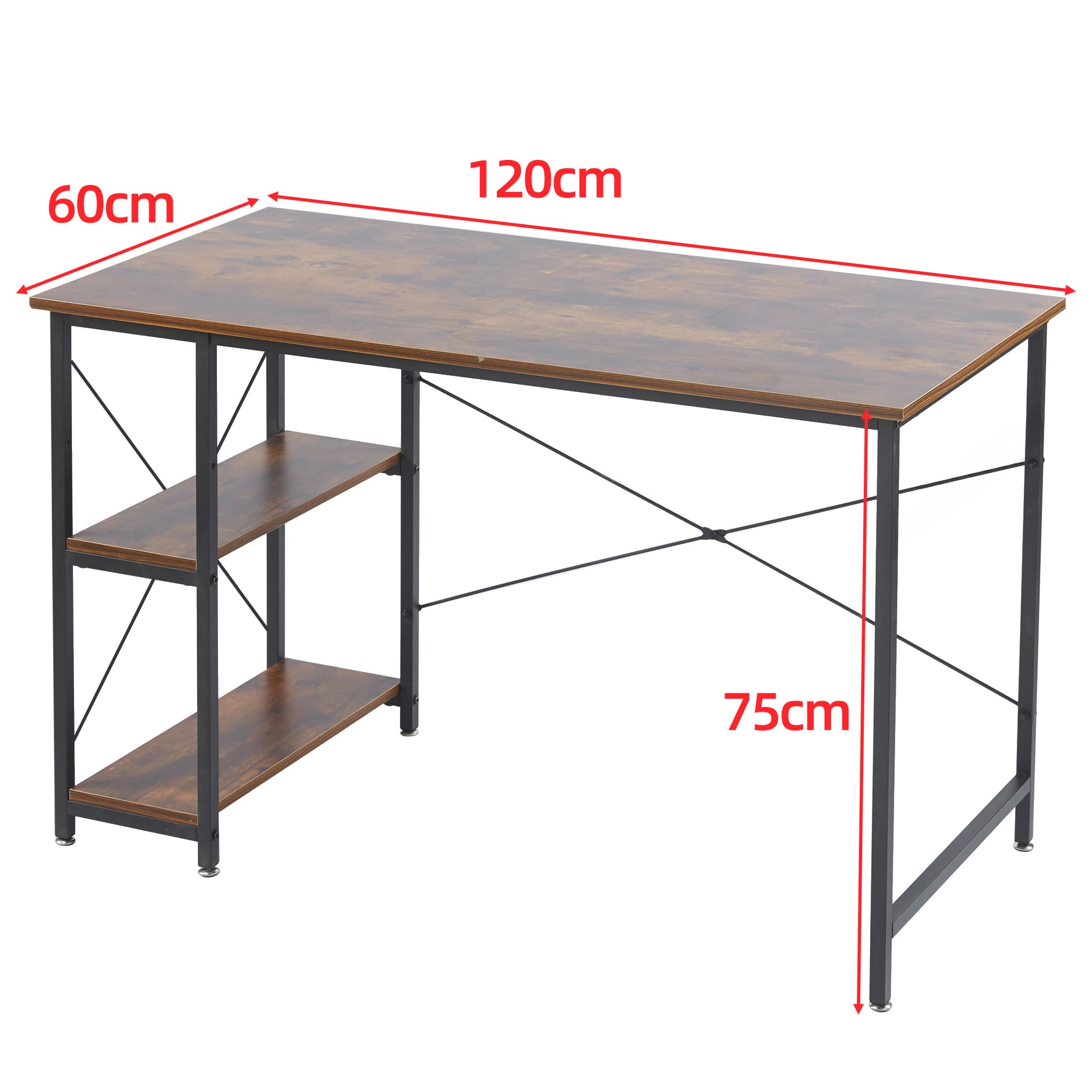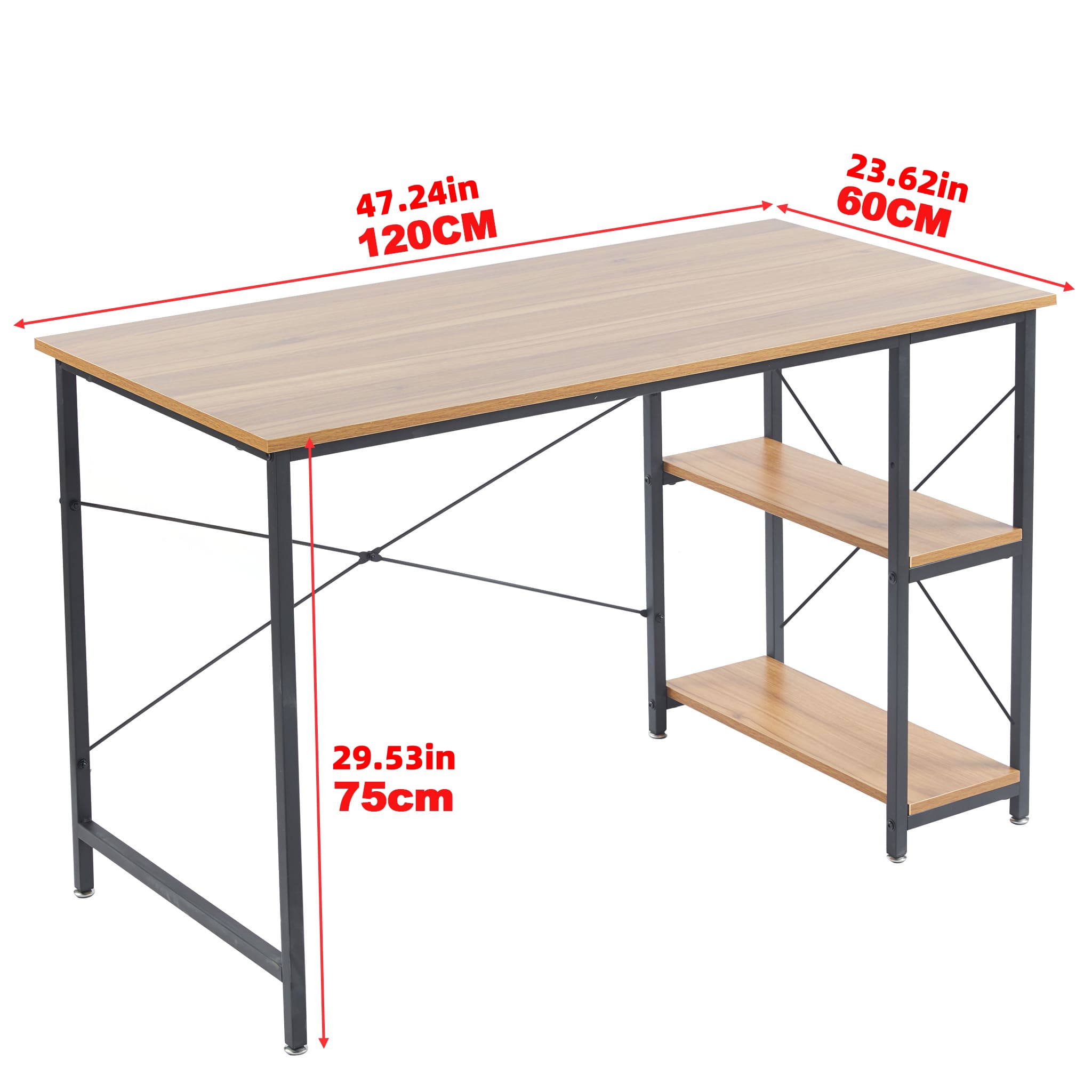 A rustic style spacious computer desk with ample leg room and storage shelves to keep all your work or study material within arms reach. Work or study with confidence on an exceptionally strong and durable teak wood table top that can withstand a variety of climates without the need for maintanence. Say goodbye to shakey, unstable work desks, and say hello to thicker steel frames for more stable work or study sessions.