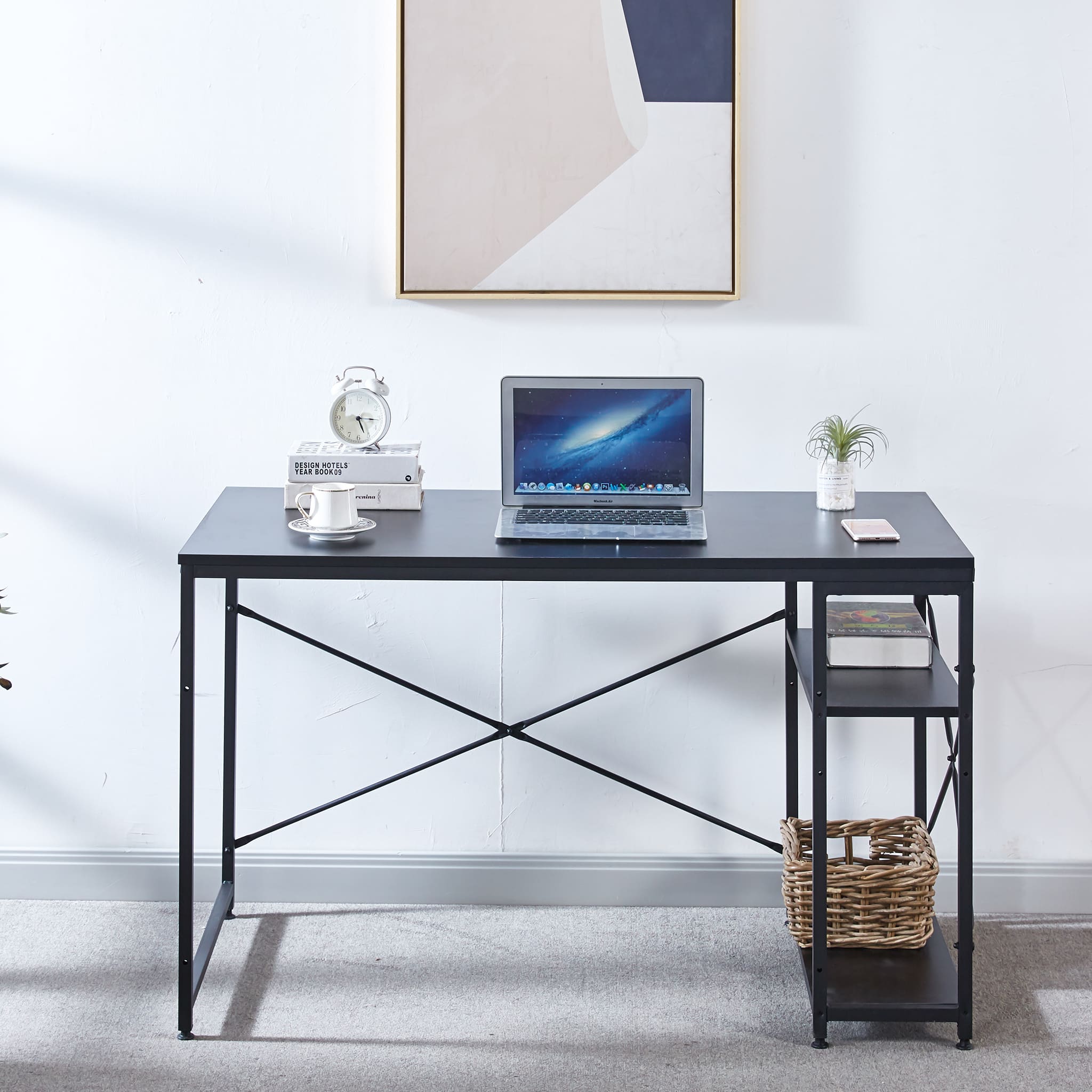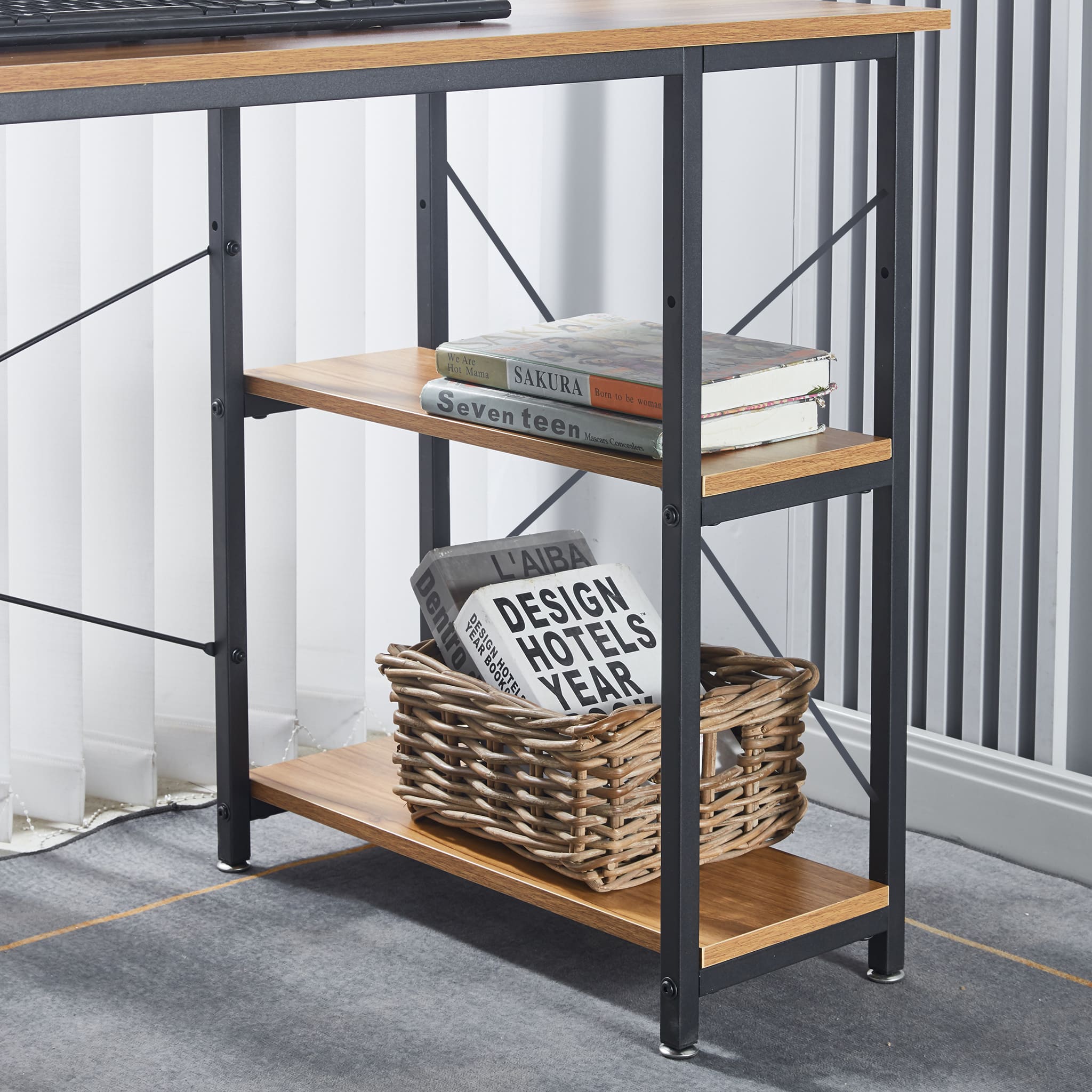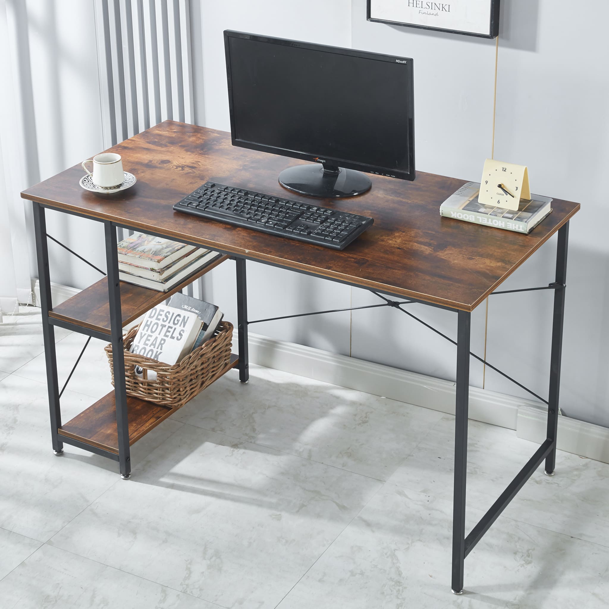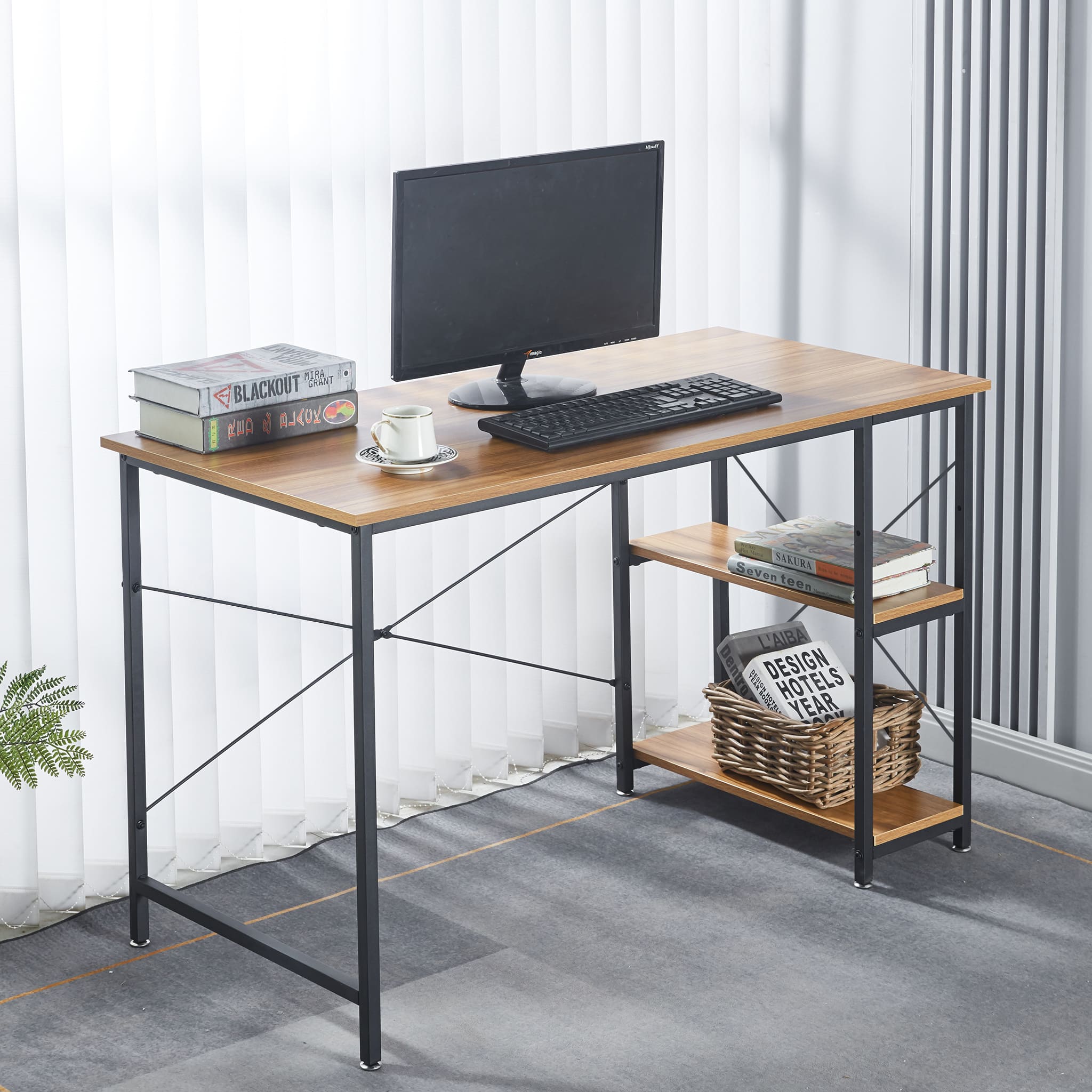 A rustic style spacious computer desk with ample leg room and storage shelves to keep all your work or study material within arms reach. Work or study with confidence on an exceptionally strong and durable teak wood table top that can withstand a variety of climates without the need for maintanence. Say goodbye to shakey, unstable work desks, and say hello to thicker steel frames for more stable work or study sessions.