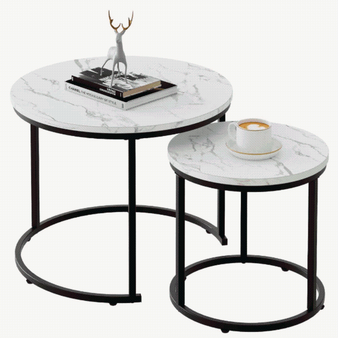 The round side table is made of Melamine and durable metal frame, board with smooth and eco-friendly coating, which is easy to clean and waterproof. It is light-weight and space-saving. The round edge can create a safe environment for your family.