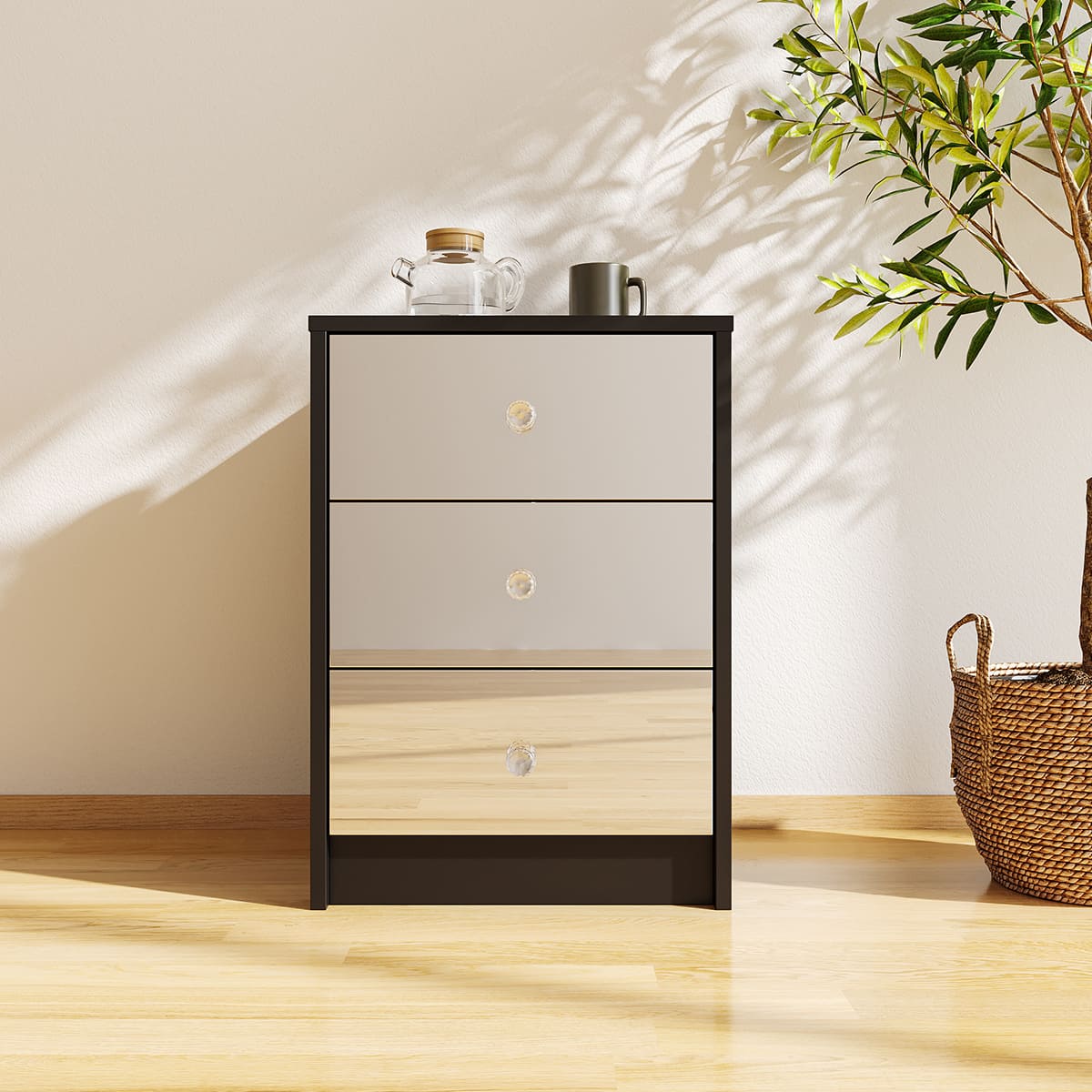 Discover the chic SHI5CO3D Nightstand Drawer, a modern furniture piece blending elegance and functionality. Its mirrored finish adds a touch of sophistication to any bedroom, while the three foldable drawers provide practical storage solutions. Crafted with a sturdy wood top, this nightstand is perfect for keeping your essentials within reach.