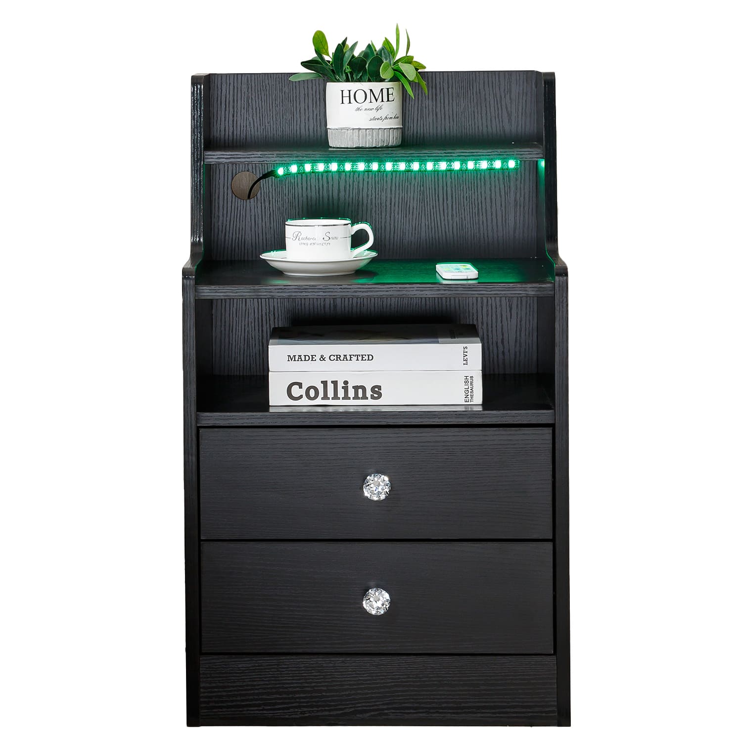 - Colors Changing LED Light Strip: This modern nightstand comes with USB Port color changing LED light strip, which creates a more romantic ambiance in your room for a fantastic night. Equipped with remote control, can download a mobile APP according to the manual to control LED strip. Through this mobile APP , you can not only control the color, brightness and color temperature of the LED strips but also set up all kinds of fancy flash mode ; Also this APP can change the light of the LED strip according to the rhythm of the music.