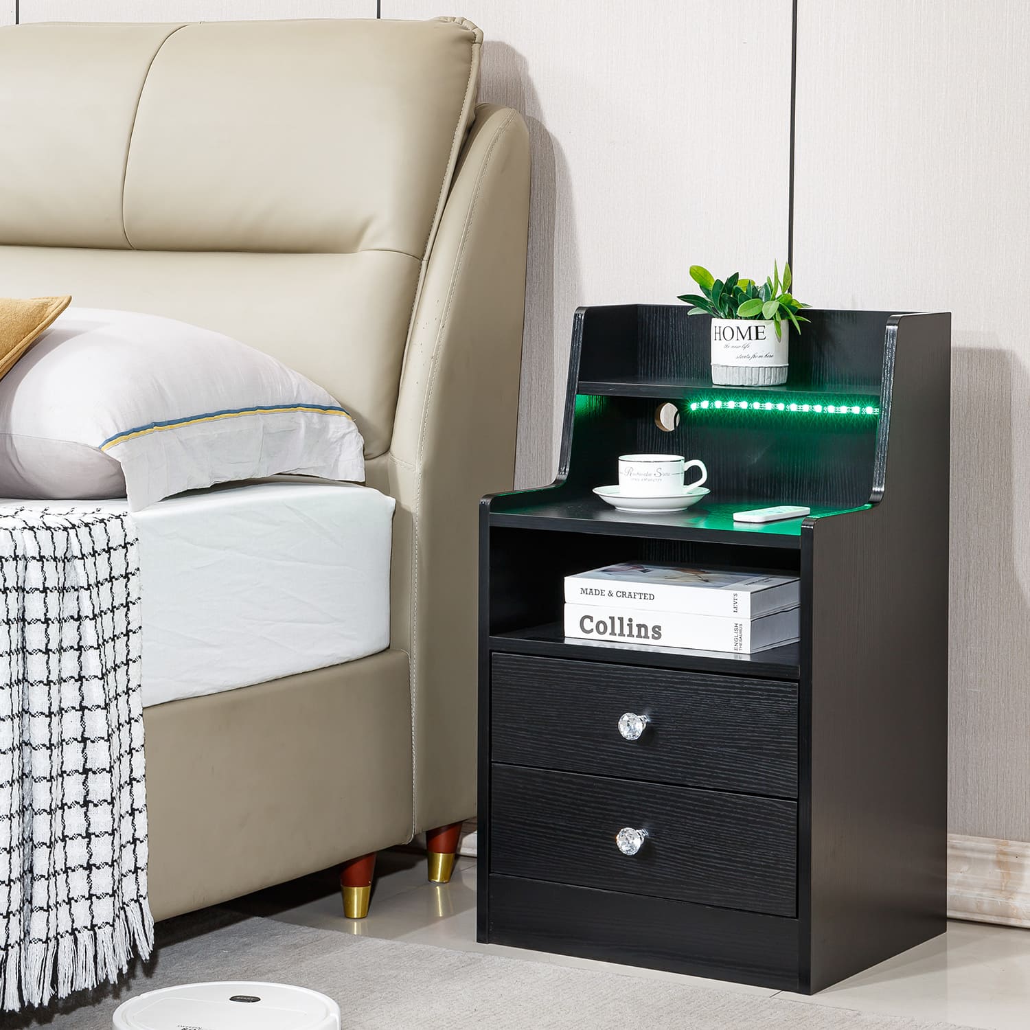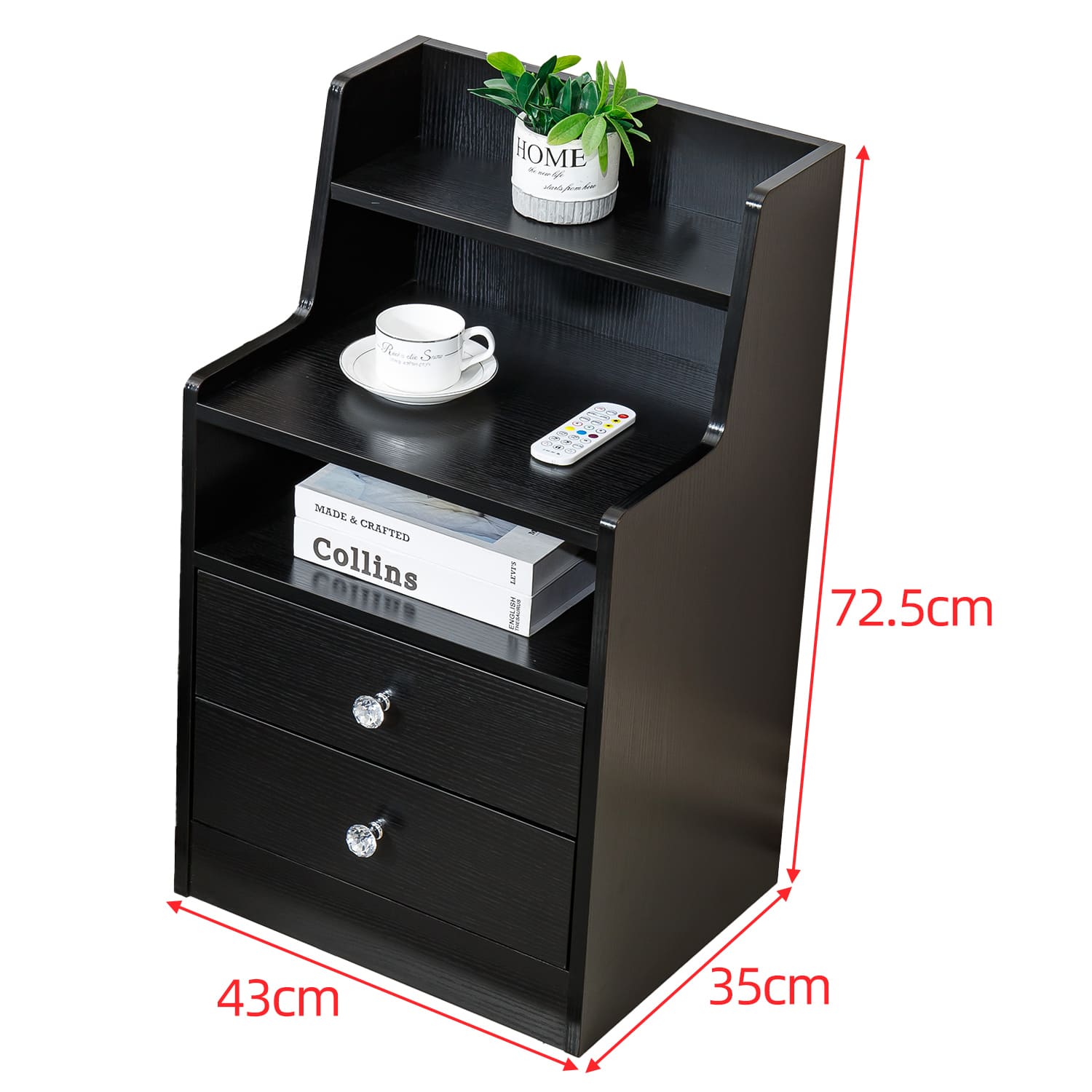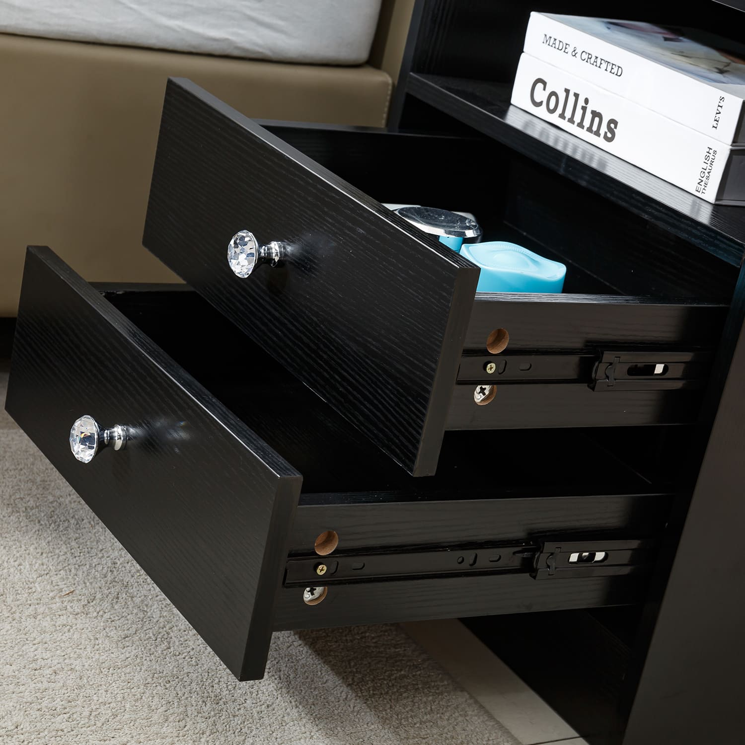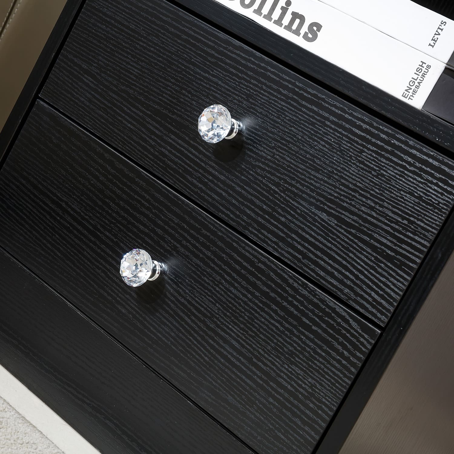 - Multi-Function Storage Space: Well-designed with 2 drawers and open shelves of this bedside table. The large capacity is performed well in your room. All the clutters in the room could be organized on this bedside table. Suitable for bedroom, living room, office room. It can be a end table, sofa side table, night stands, coffee table and so on. The practical product design and crystal handles of this modern nightstand can perfectly blend with any style of furniture. Fully reflects its flexibility and practicality.