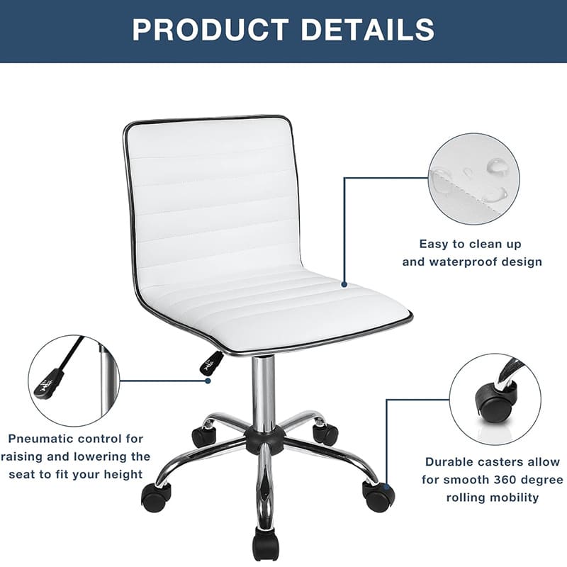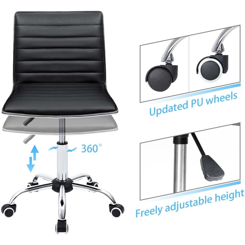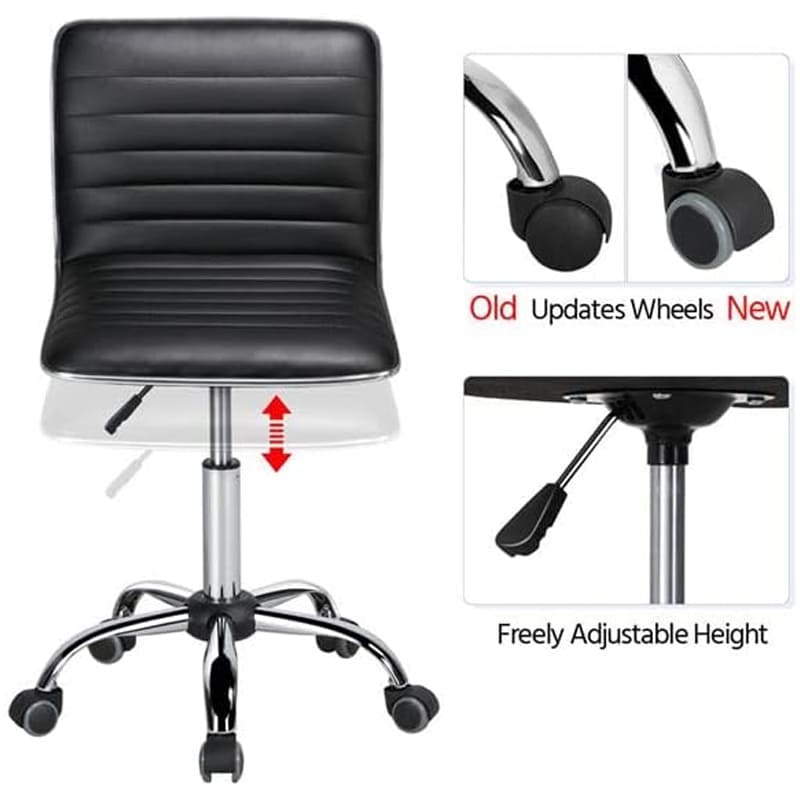 - Adjustable Height: Pneumatic seat height adjustment lever makes it easy to raise or lower the seat according to different heights of people or desks. 5 point base with universal wheels for great stability and mobility.
