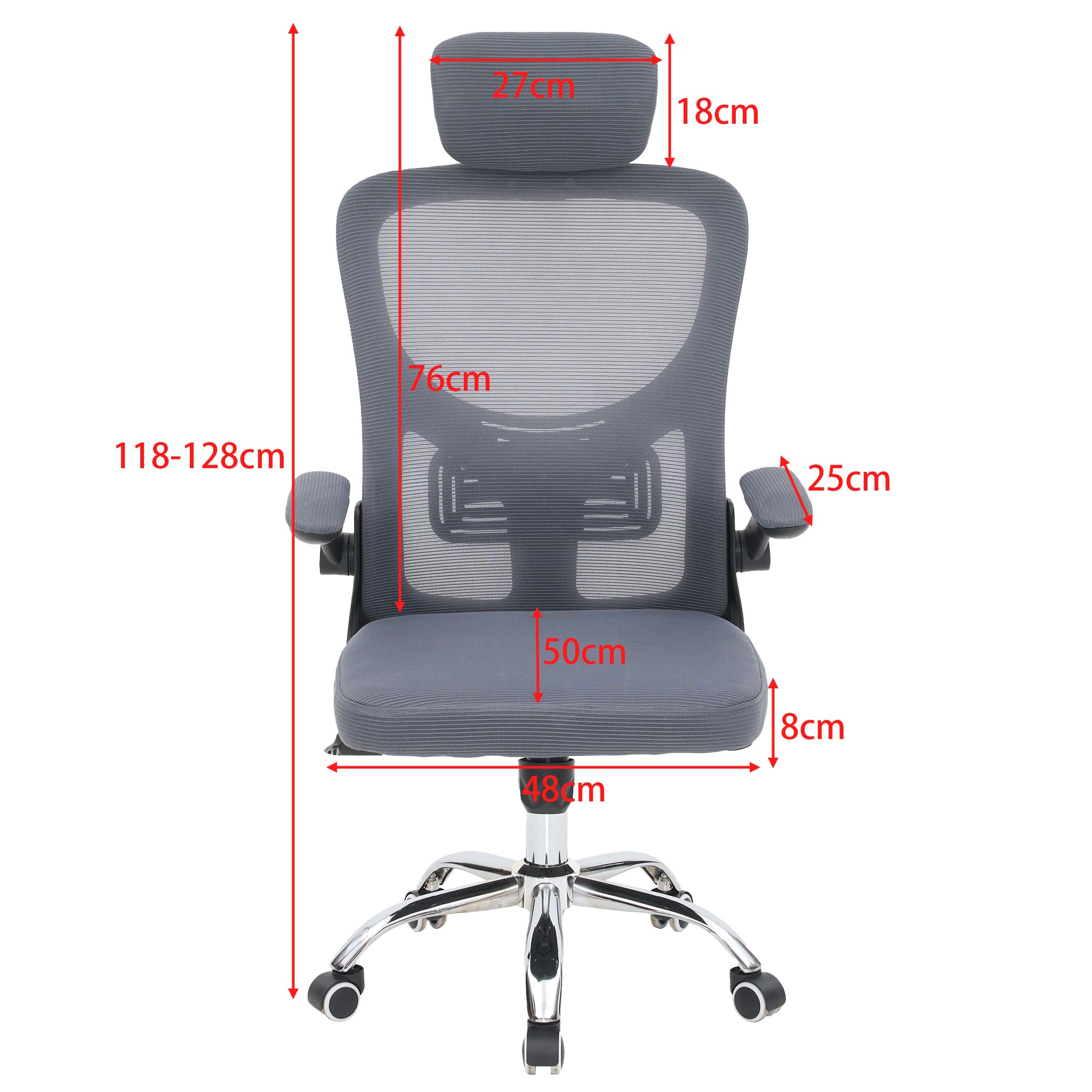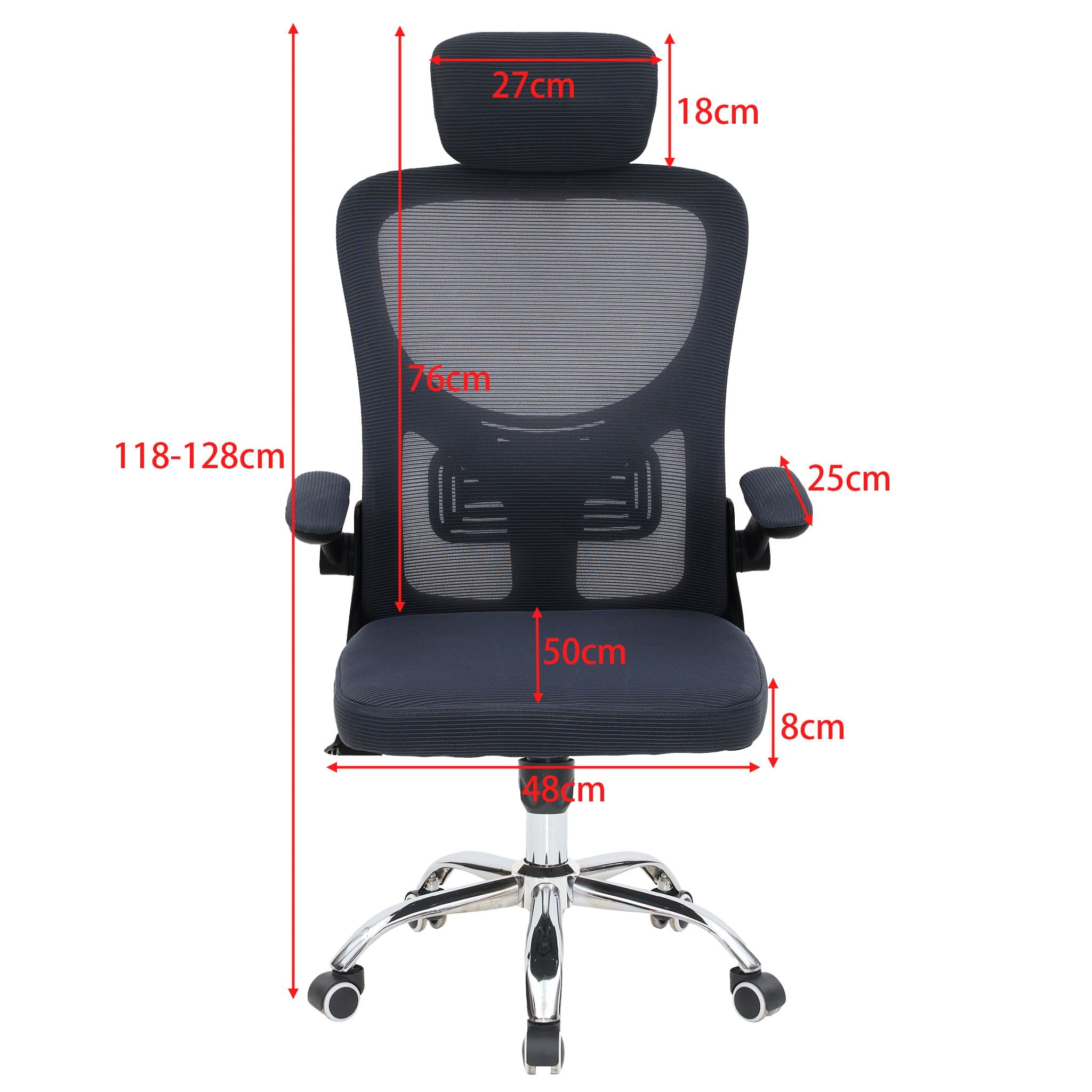 - Breathable Mesh Fabric: The mesh office chair allows the free flow of air, keeping you cool and comfortable at all times; Collapse-resistant, high-density foam soft cushion for comfort and breathability, it won't make you sweat after a long working day. Its recline function allows you to tilt the backrest (90 to 125 degrees) or sit upright freely, ensuring your comfort and relaxation. It can support up to 180kg. The office chair's height can be adjusted from 118 to 128 cm.