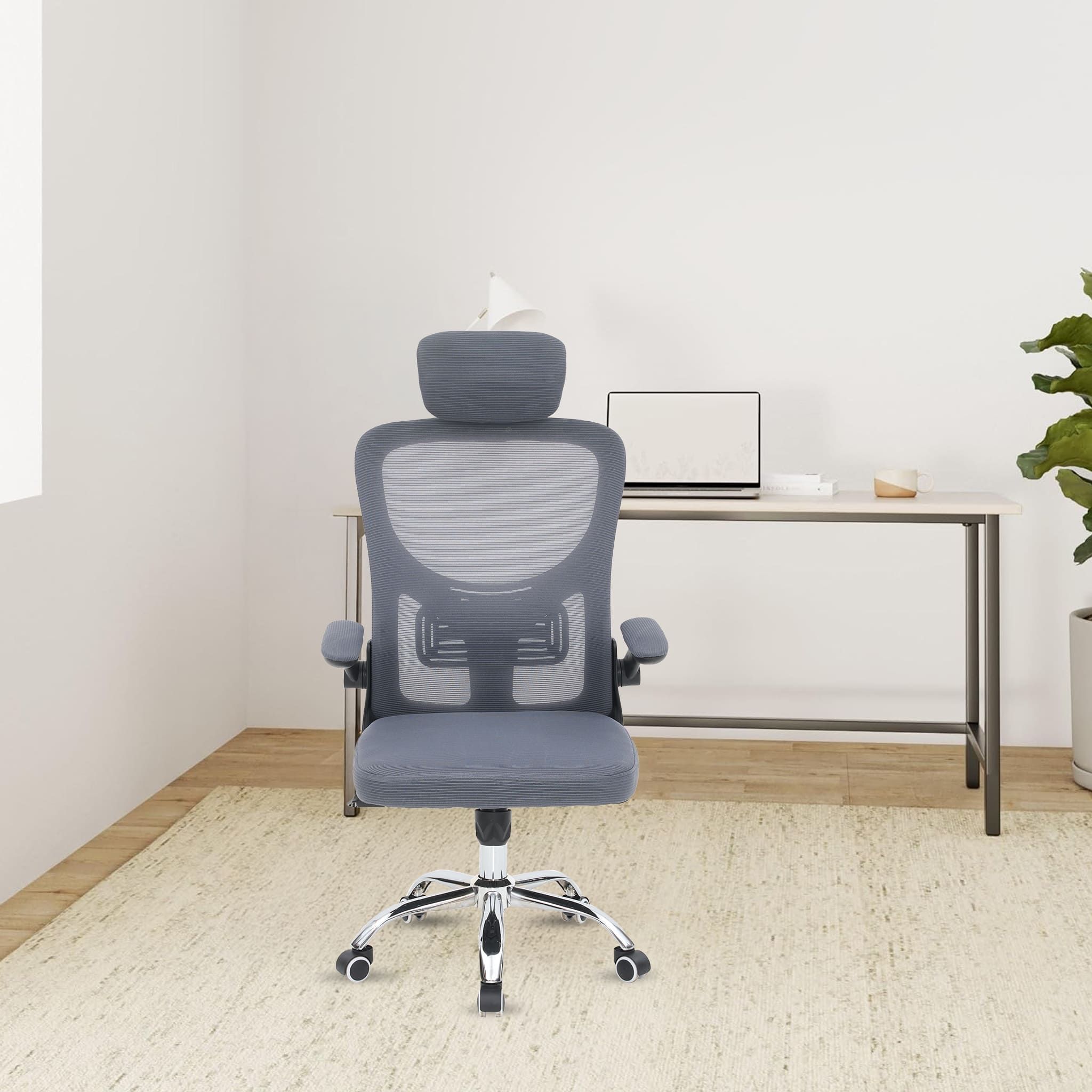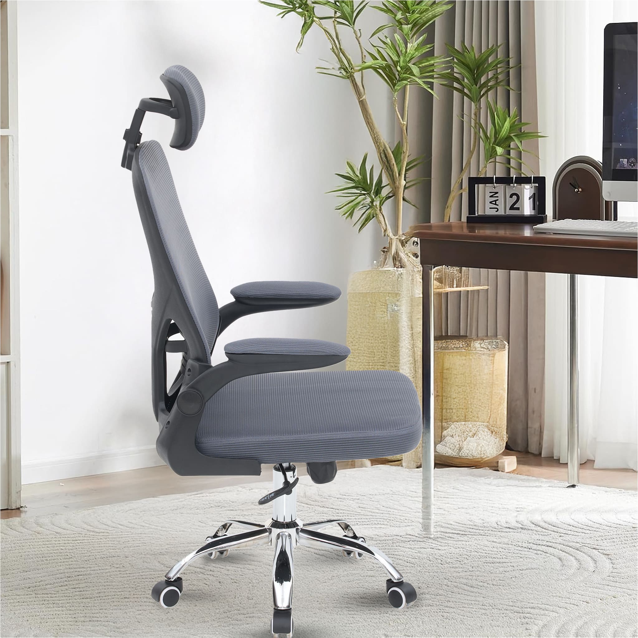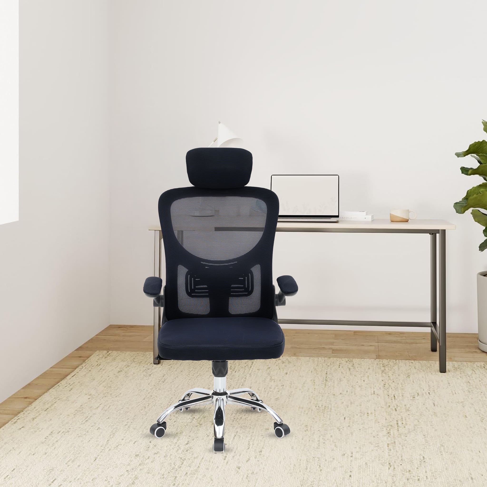 - Flip-up Armrest: Folding the armrests up 90 degrees, you can push the executive office chairs directly under the desk to save valuable space.