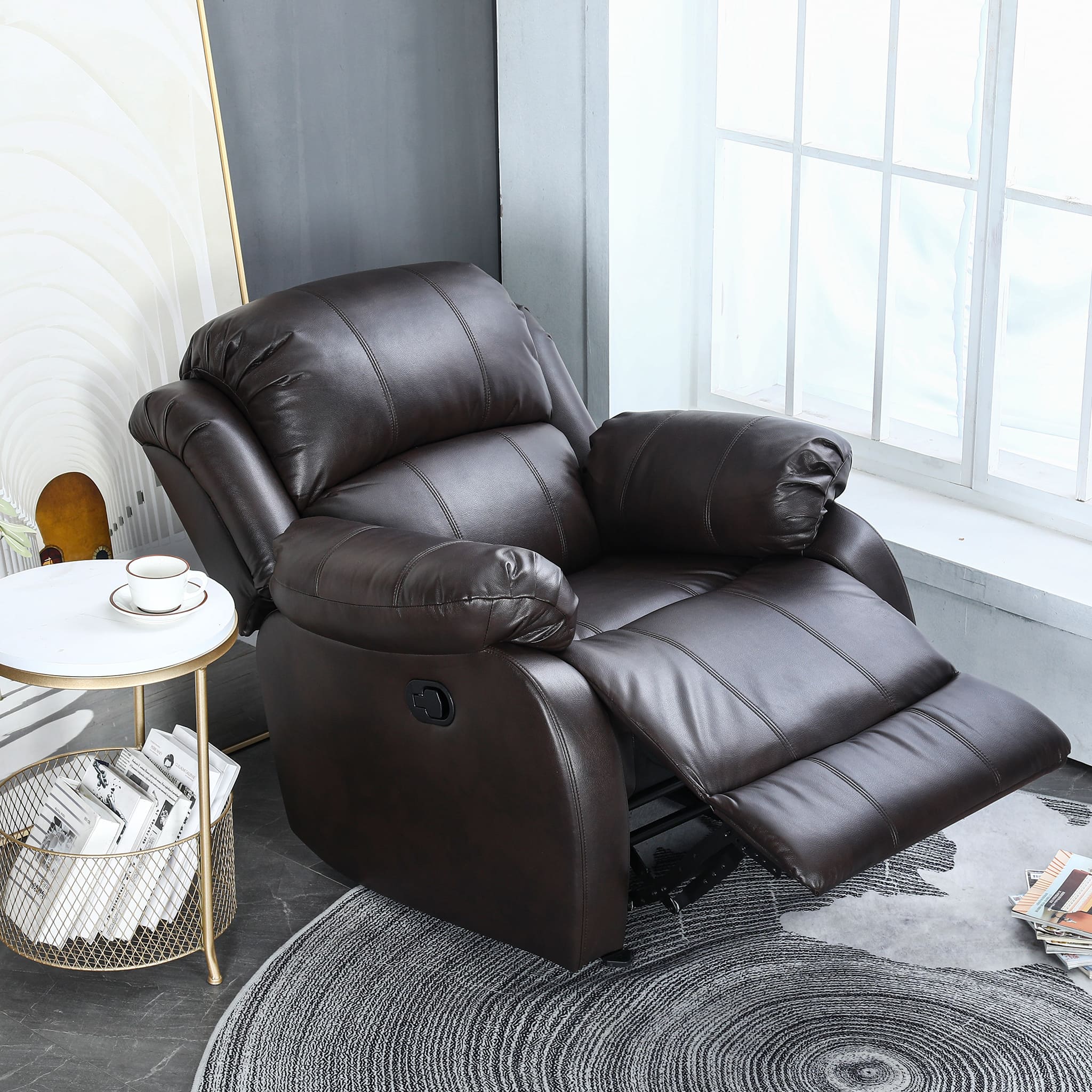 Discover the ultimate relaxation with our Rocking Recliner Chair, featuring a smooth rocking motion and plush air leather upholstery. Ideal for any modern interior, this recliner offers a deep bucket seat, high-density foam, and a simple recline mechanism for unparalleled comfort.