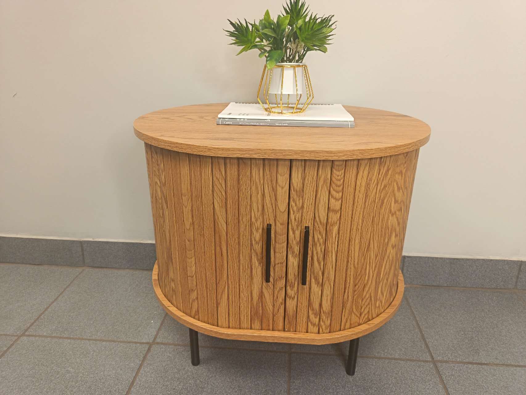 Modern round drum-style cabinet