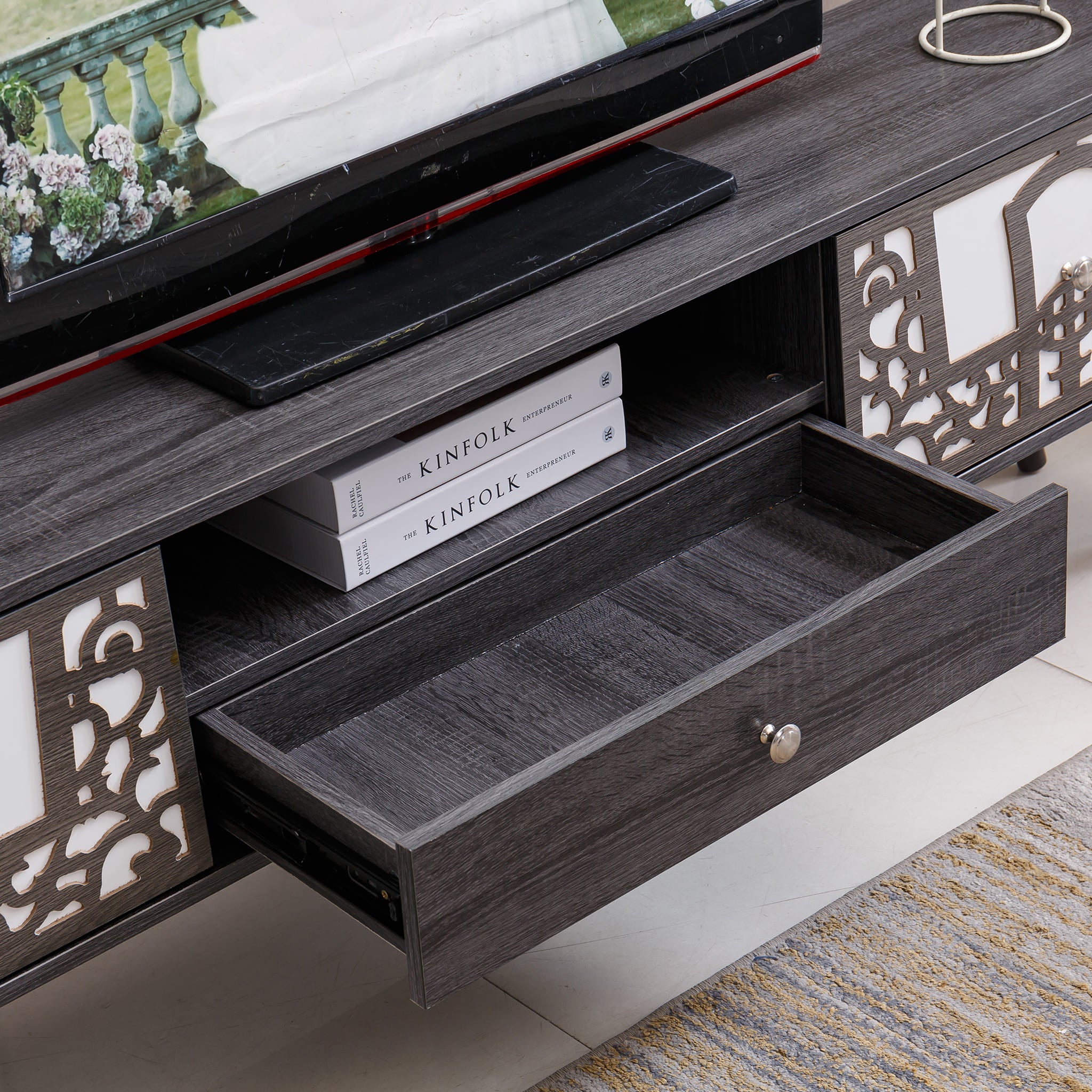 Elevate your entertainment space with the Rustic Modern TV Stand in Grey Wood, TV-103. Crafted from durable MDF and metal with a chic rustic design, this stand features 3 drawers for ample storage. Its compact 160x30x28 cm size ensures a perfect fit for any room, while the robust construction promises longevity. Ideal for organizing essentials, it blends functionality with elegance.