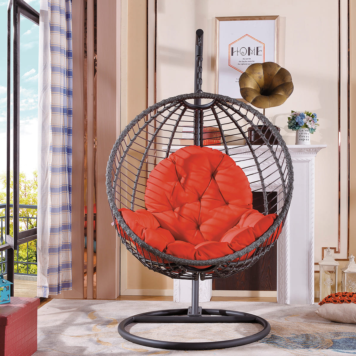 这款精美的现代秋千椅是您室内外生活空间的完美点缀。它舒适无比,您可以坐在泳池边或露台上,一边品着饮品,一边阅读书籍,尽享惬意时光。这款秋千椅品质卓越,采用铁质材料打造。