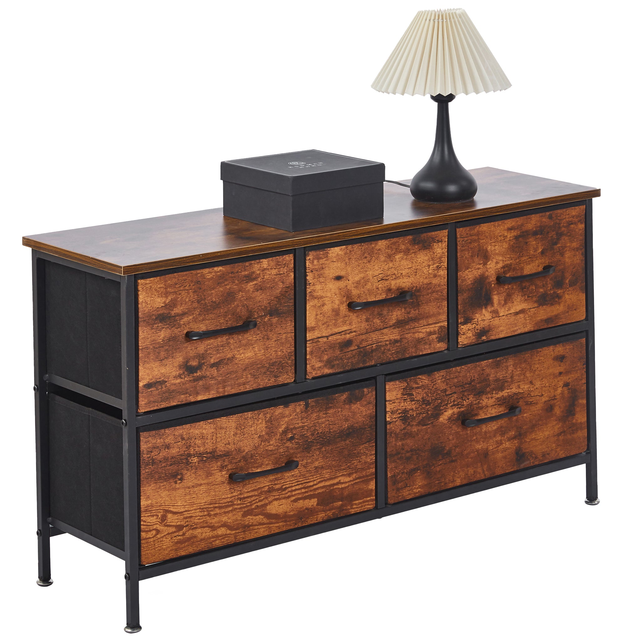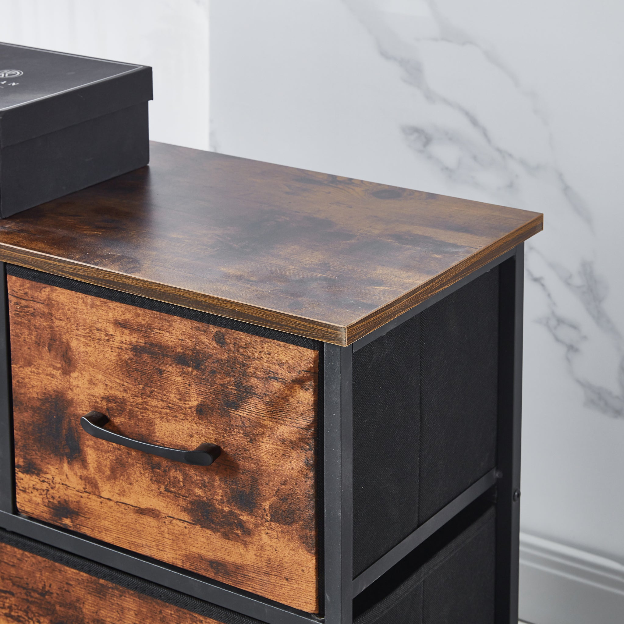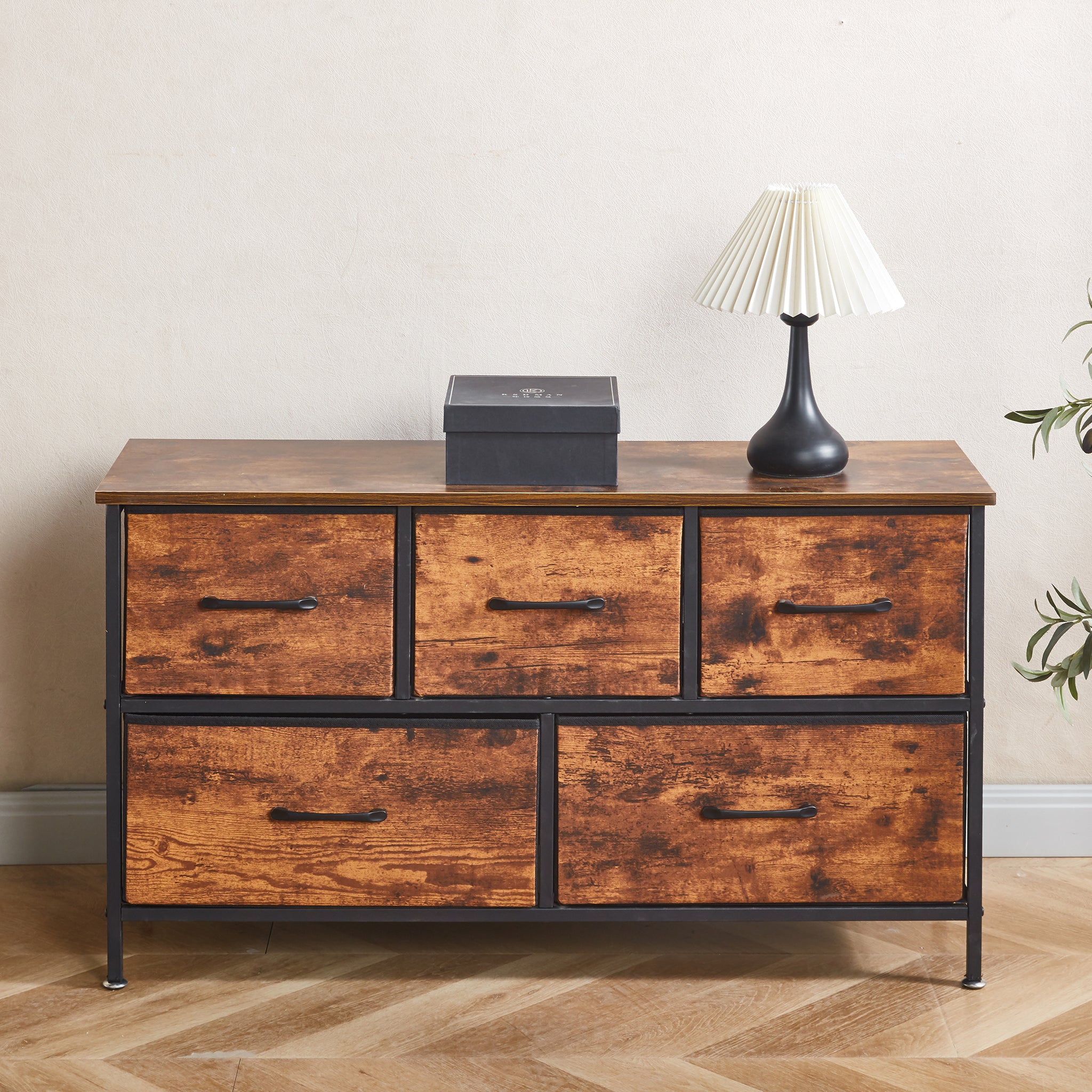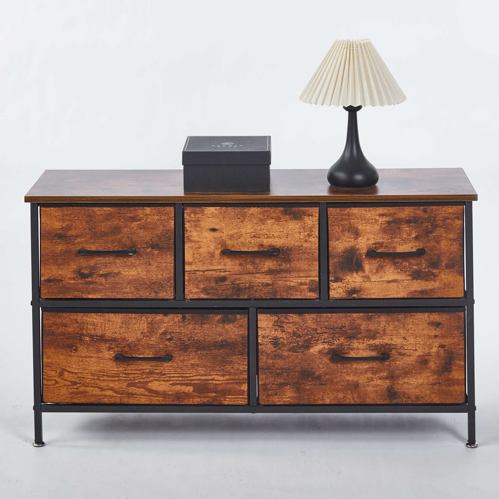 - Ample Storage Space: The 5 foldable drawers are so spacious that they provide endless organizational possibilities. Wooden top is great for lamps, clocks, glasses and other daily essentials, keeping them in your reach. Besides, you can put it under the TV as a small TV stand.