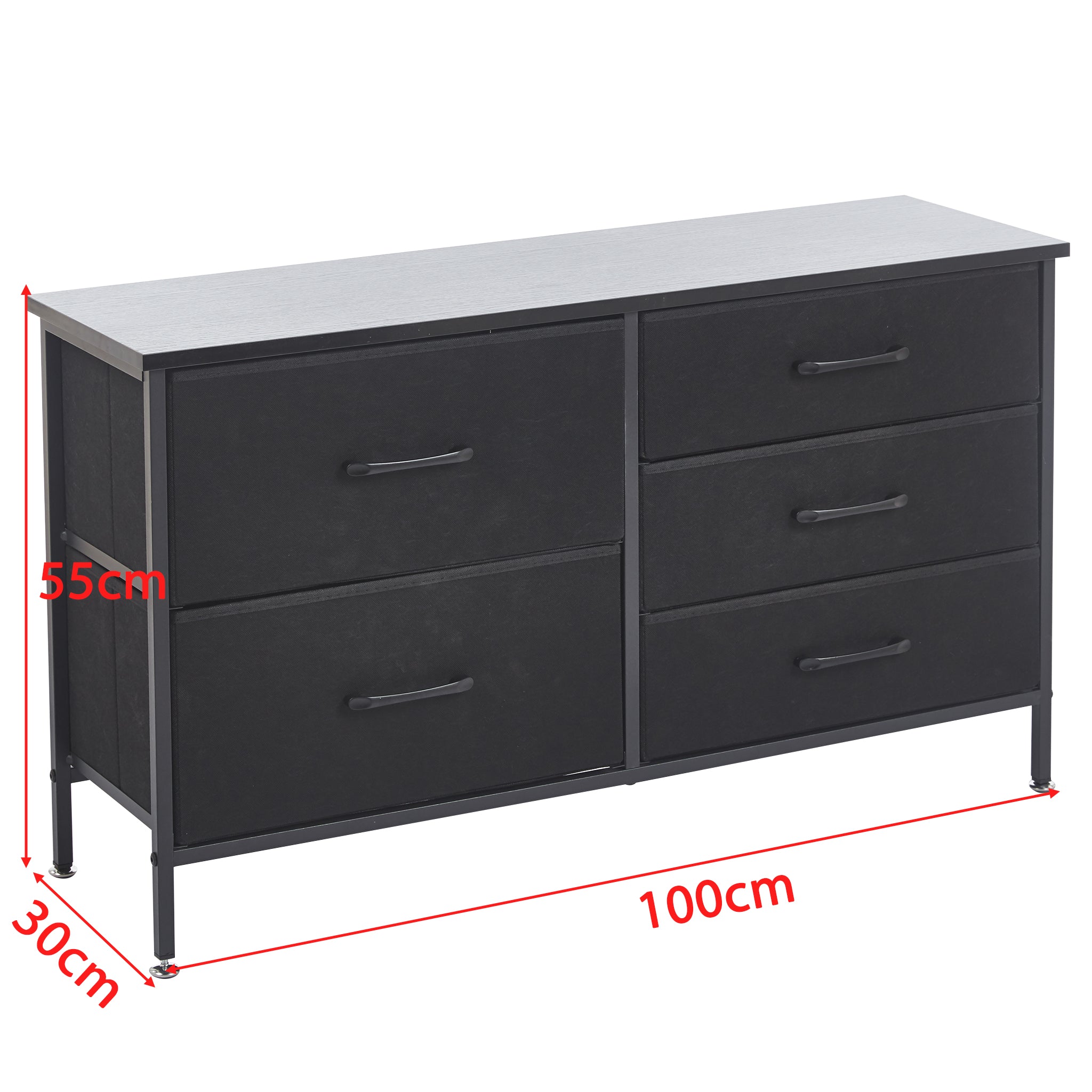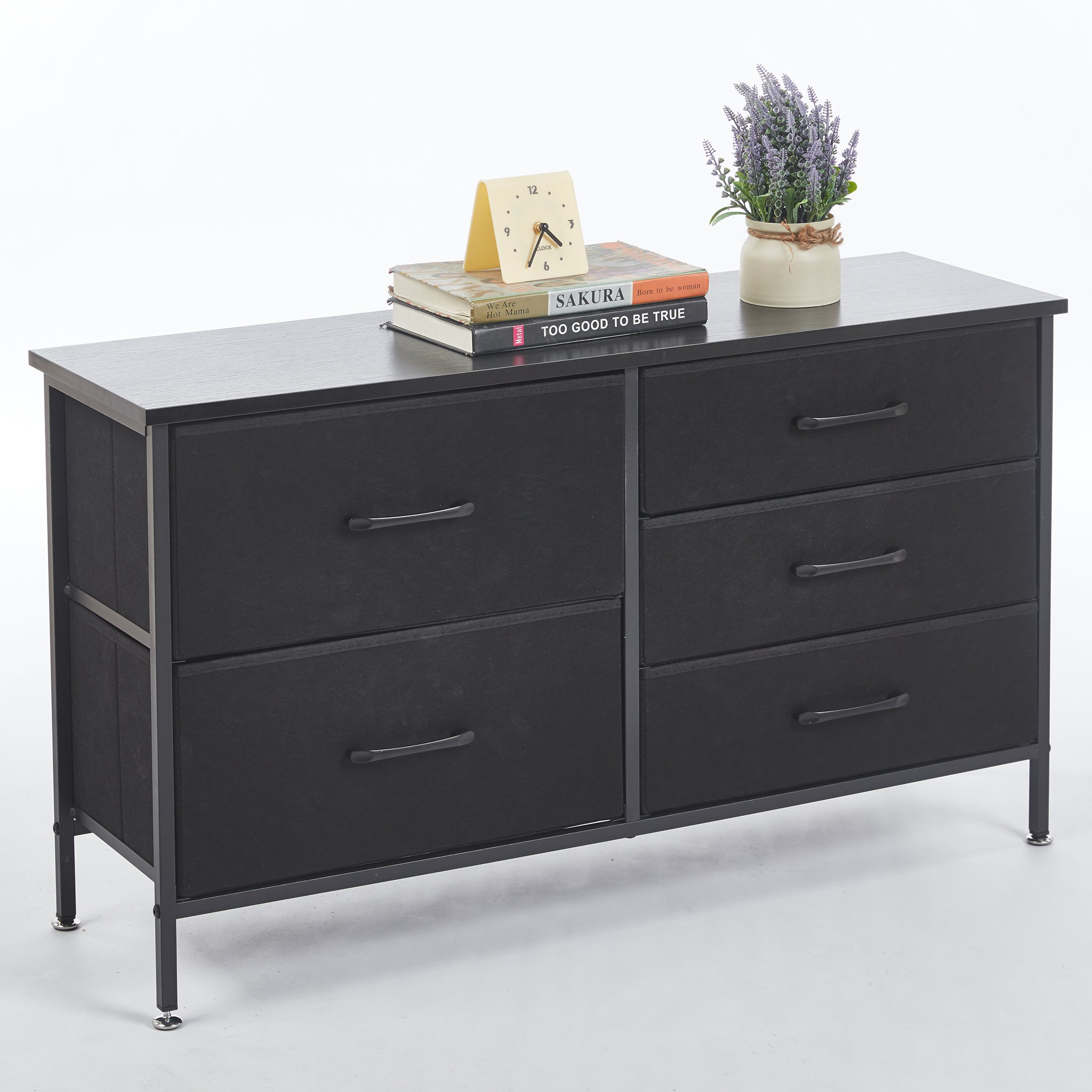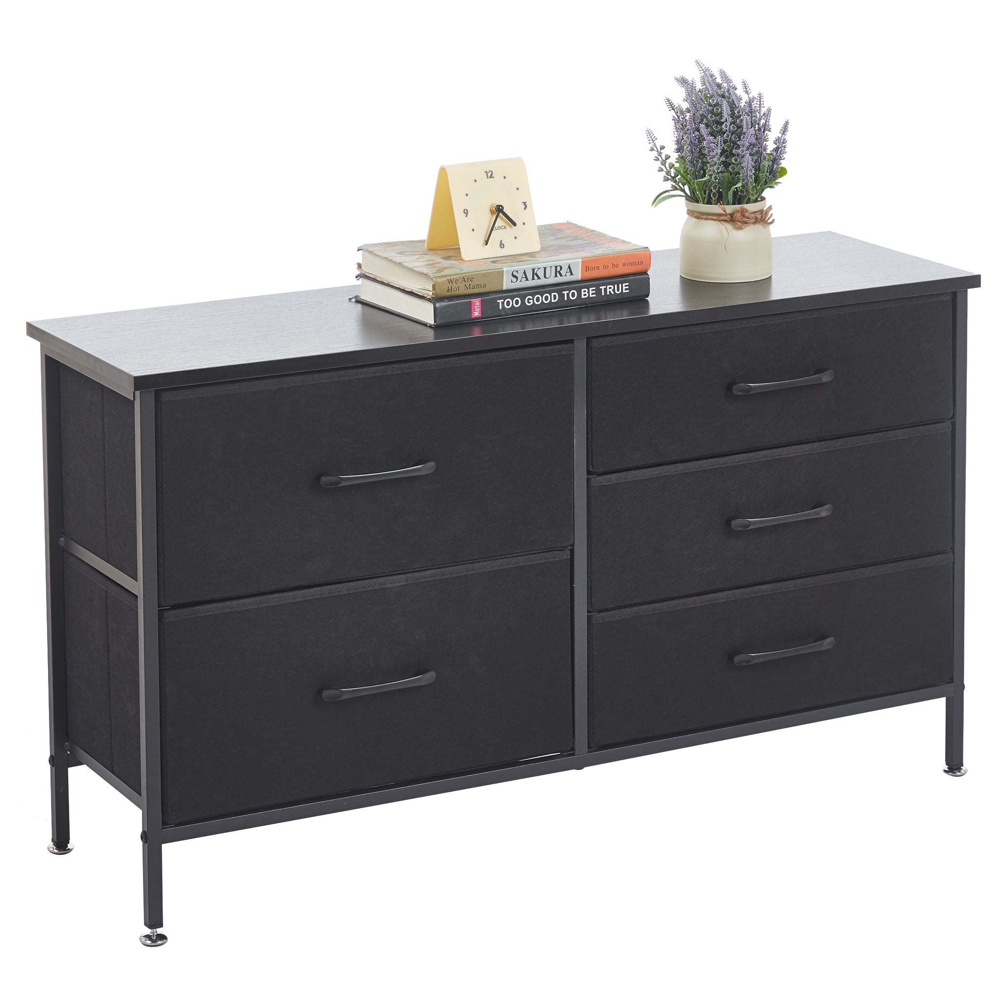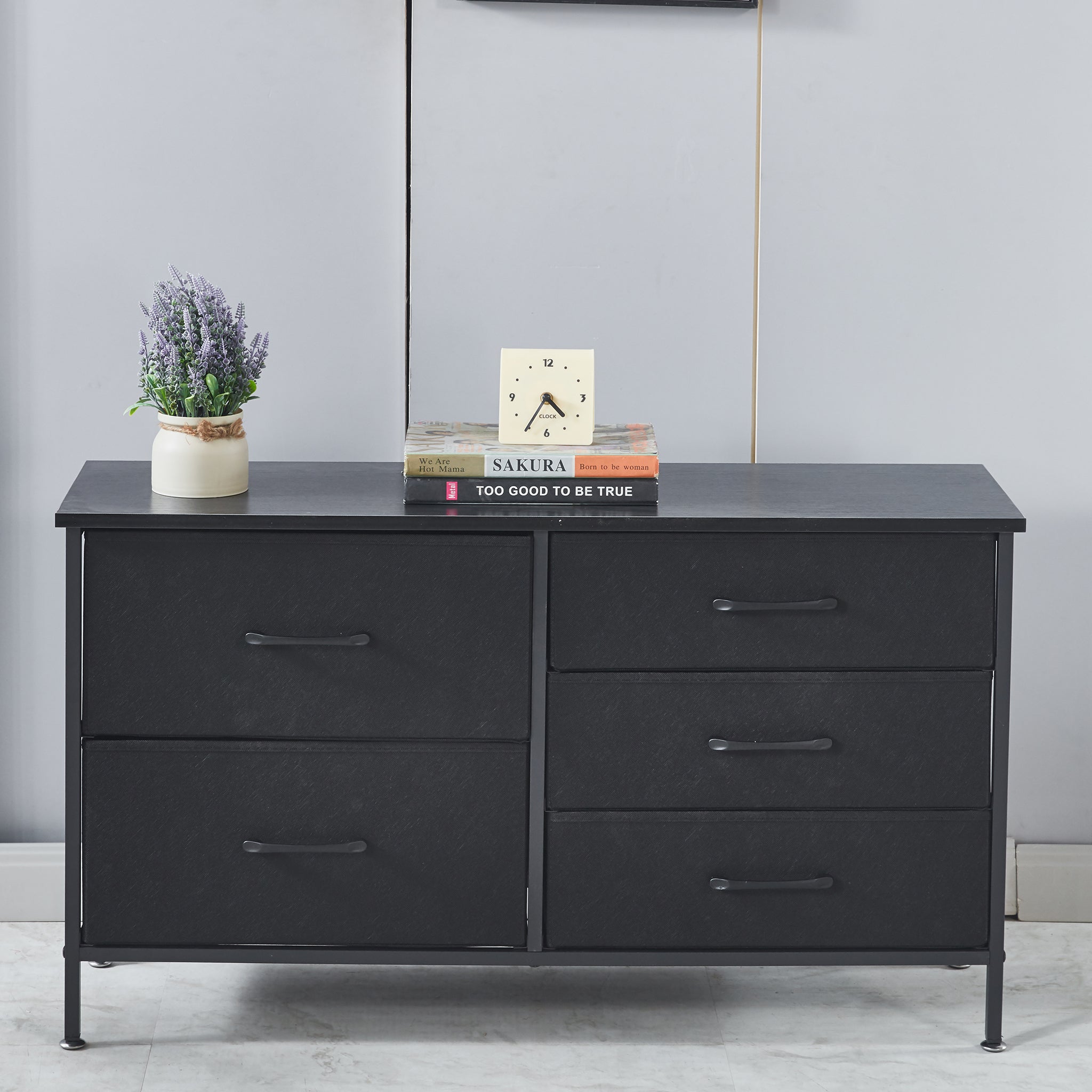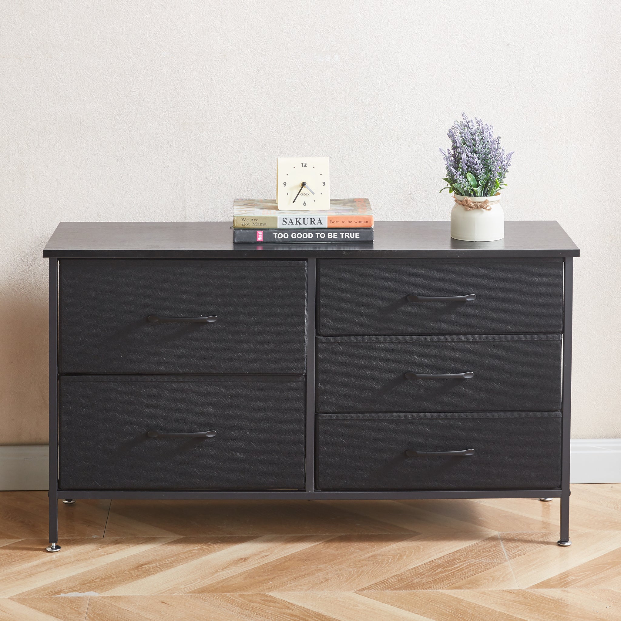 - Ample Storage Space: The 5 foldable drawers are so spacious that they provide endless organizational possibilities. Wooden top is great for lamps, clocks, glasses and other daily essentials, keeping them in your reach. Besides, you can put it under the TV as a small TV stand.