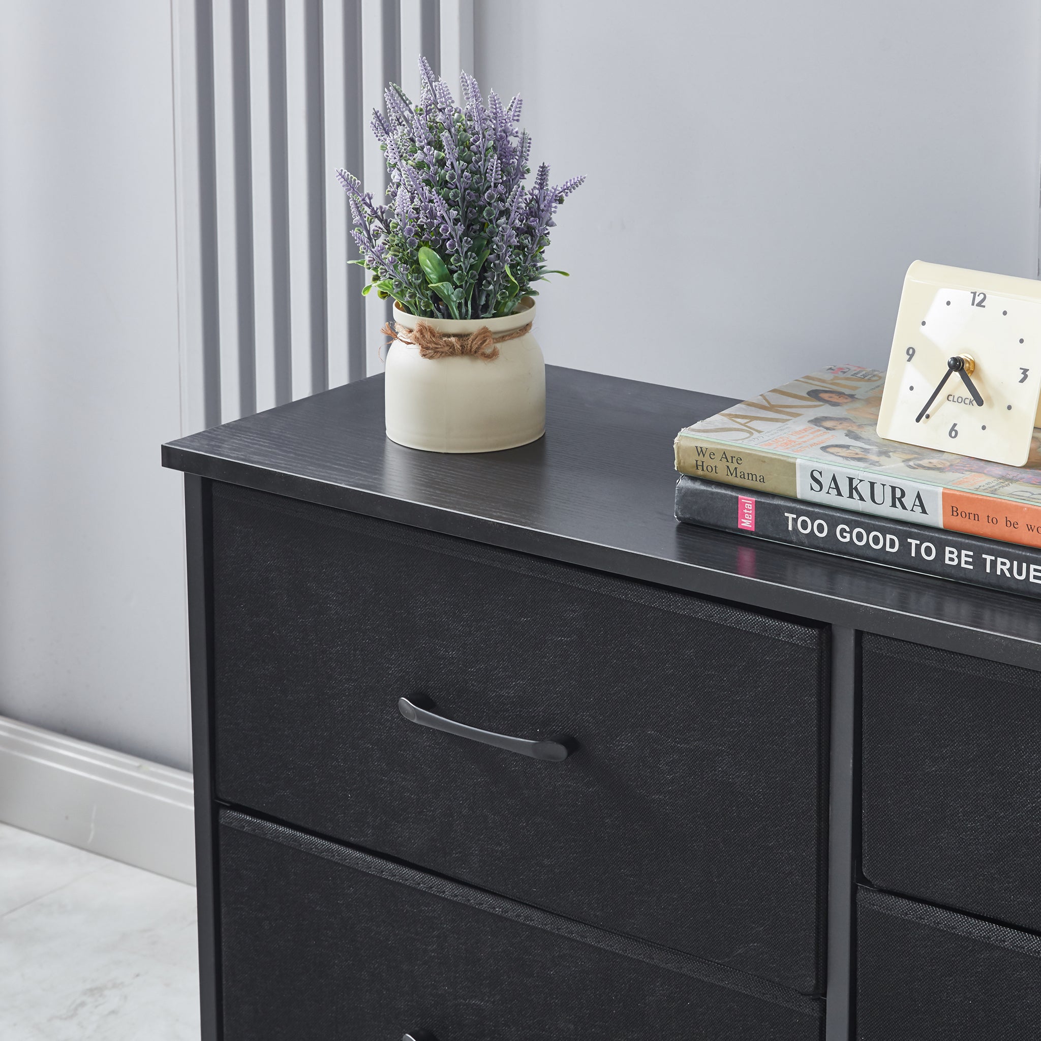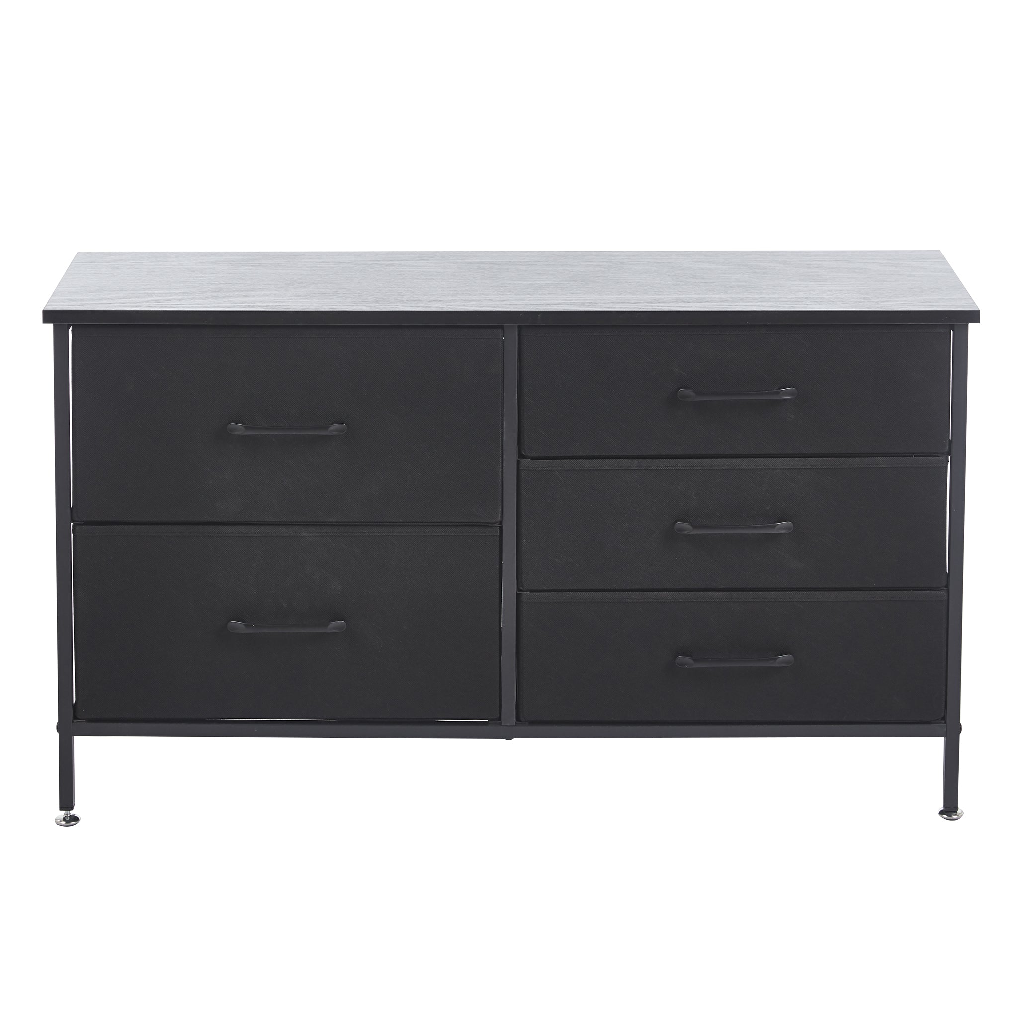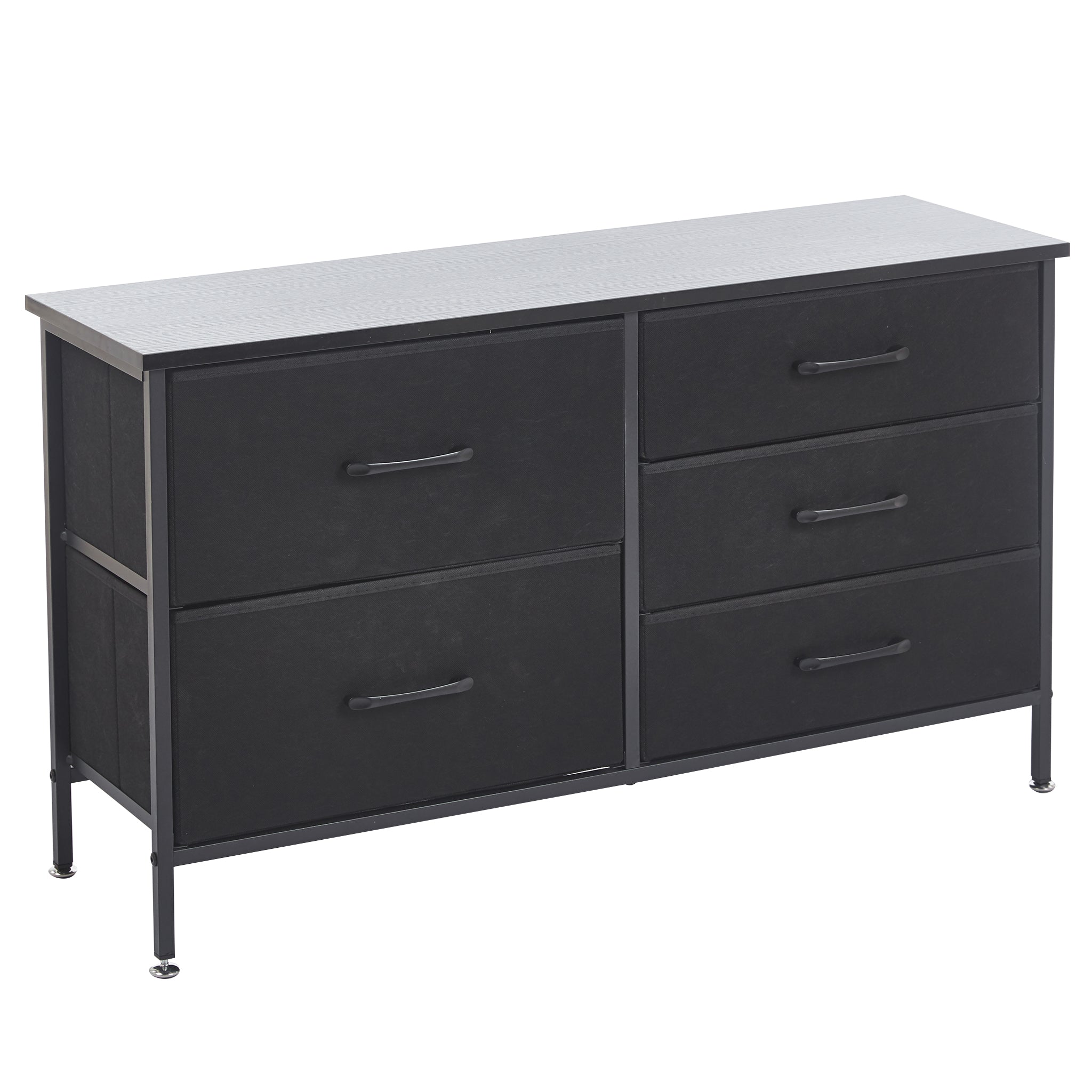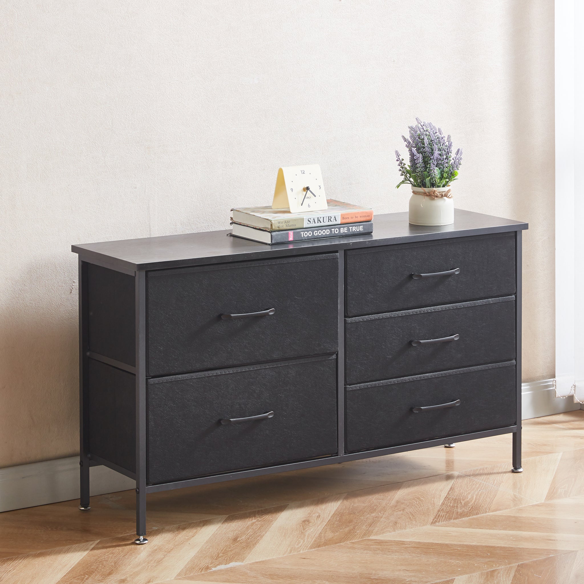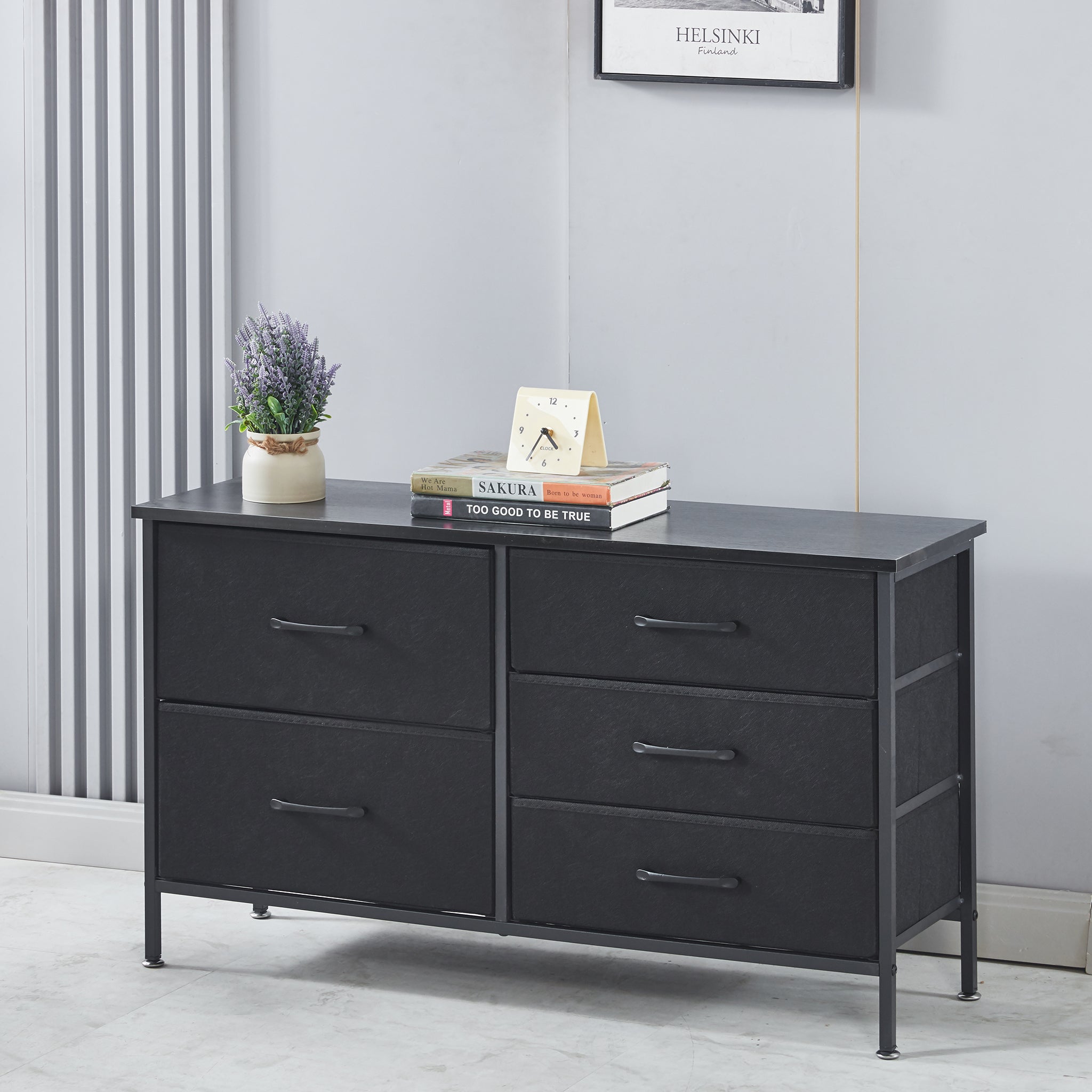 - Ample Storage Space: The 5 foldable drawers are so spacious that they provide endless organizational possibilities. Wooden top is great for lamps, clocks, glasses and other daily essentials, keeping them in your reach. Besides, you can put it under the TV as a small TV stand.