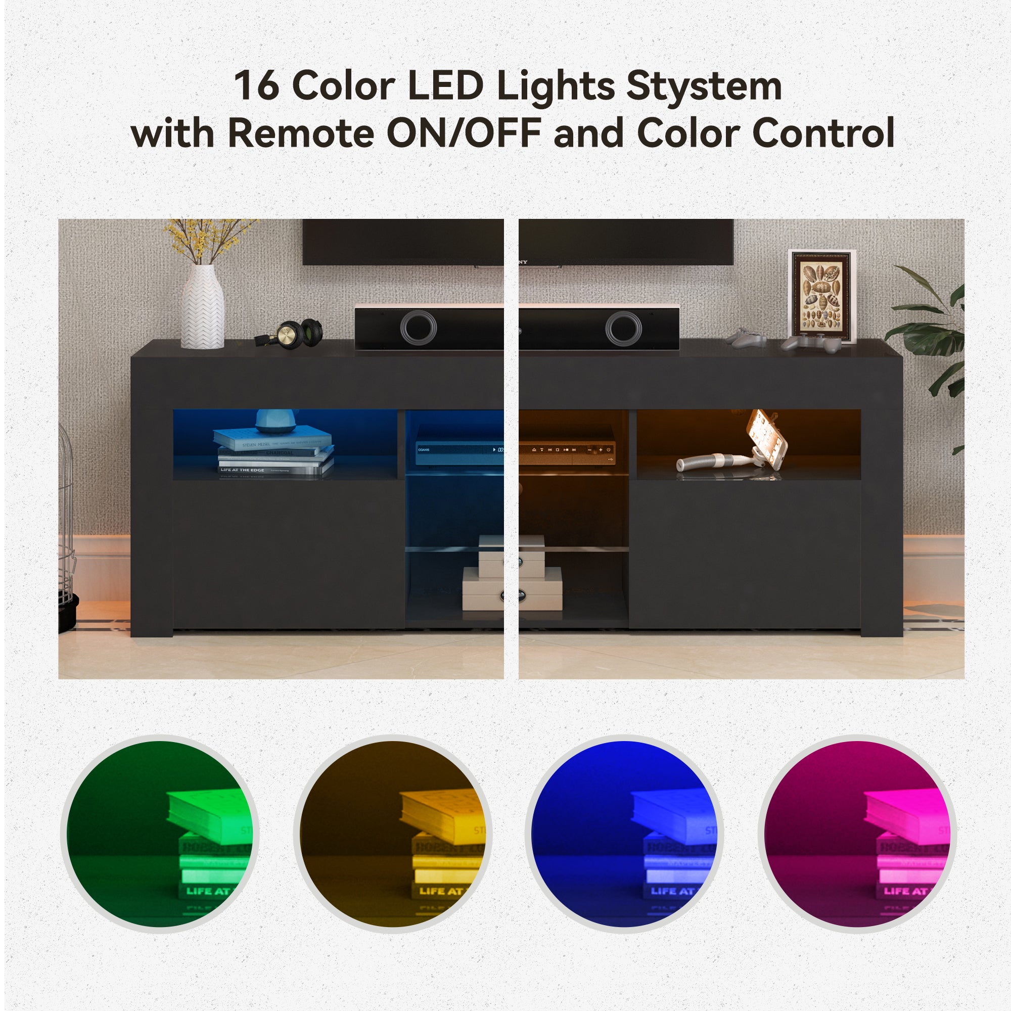 - LED TV Stand: High hardness particleboard and tempered glass, using a smooth paint process, while ensuring firmness and permeability, it is very beautiful and practical. It also can be
